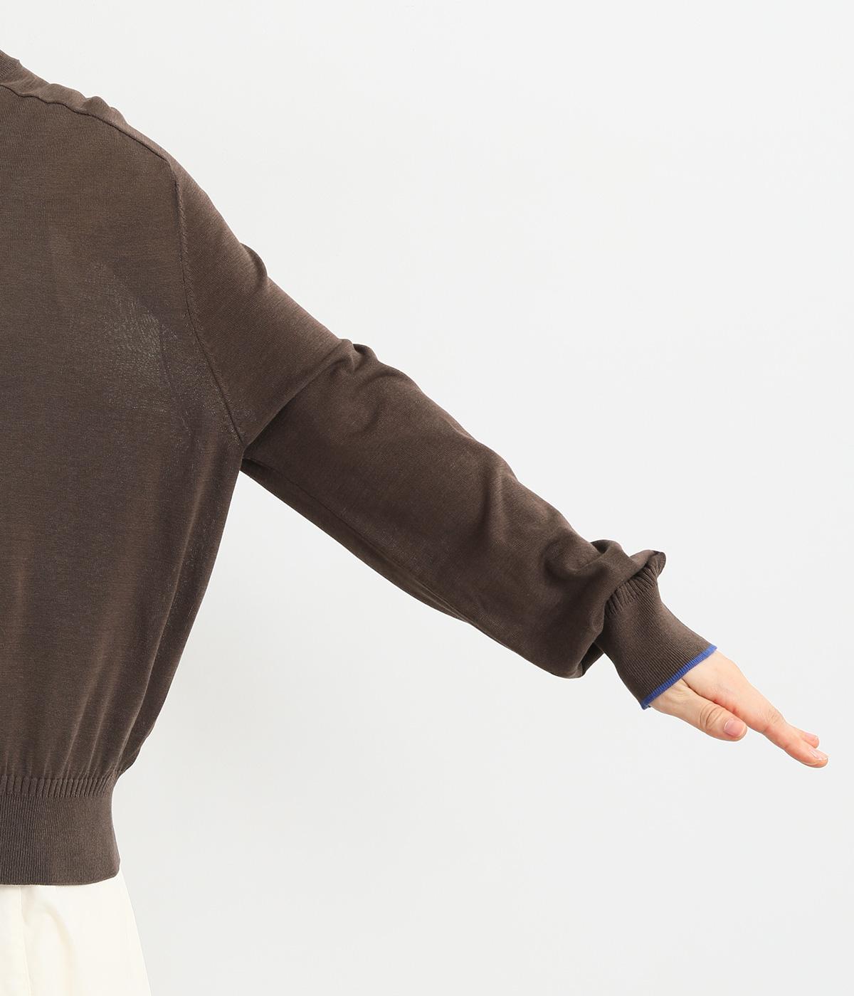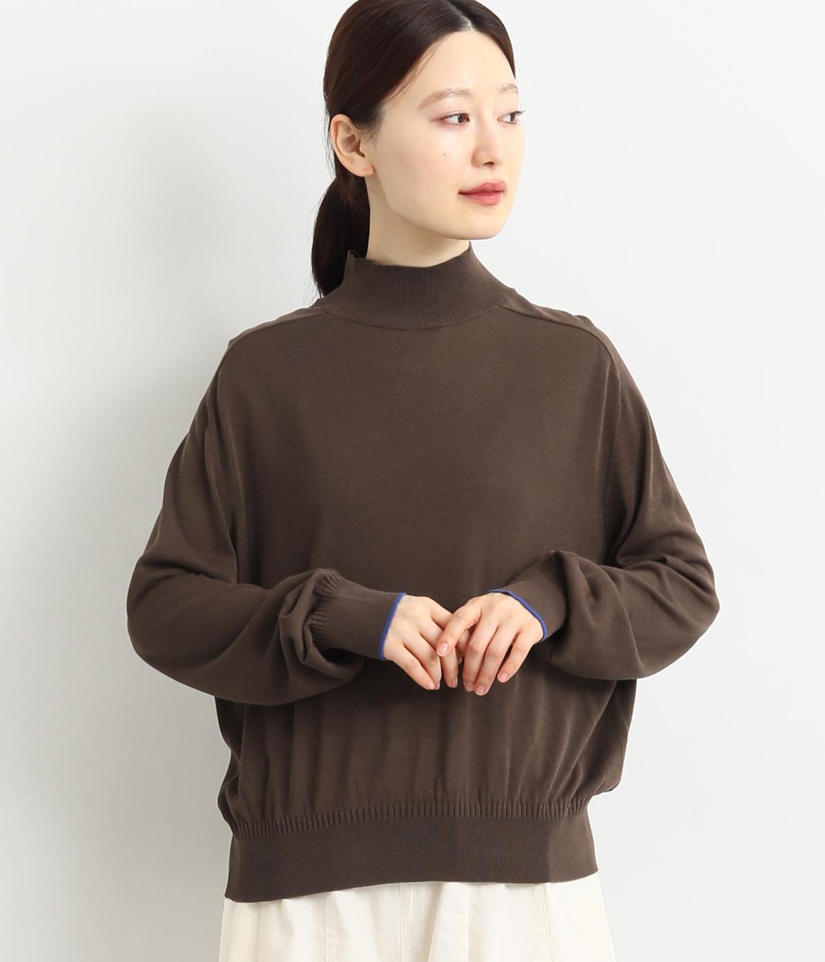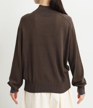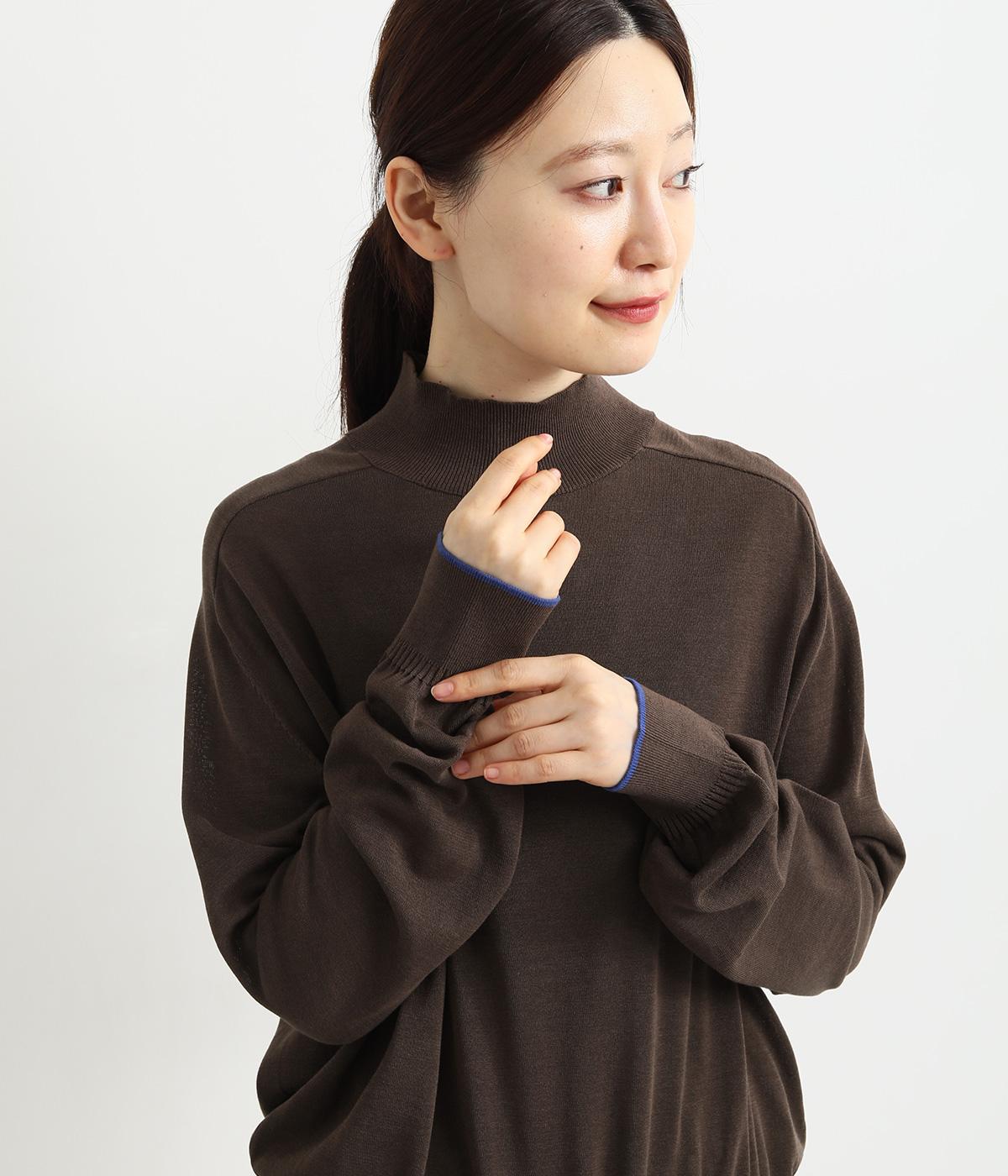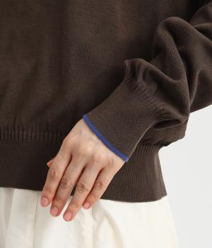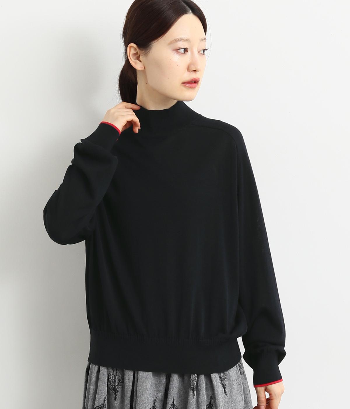 なめらかな肌ざわりのハイゲージで大人顔なニットプルオーバーを仕立てました。袖口に入れたポイントカラーがアクセントになっています。独特な形状のラグランスリーブで体をしめつけないシルエットです。