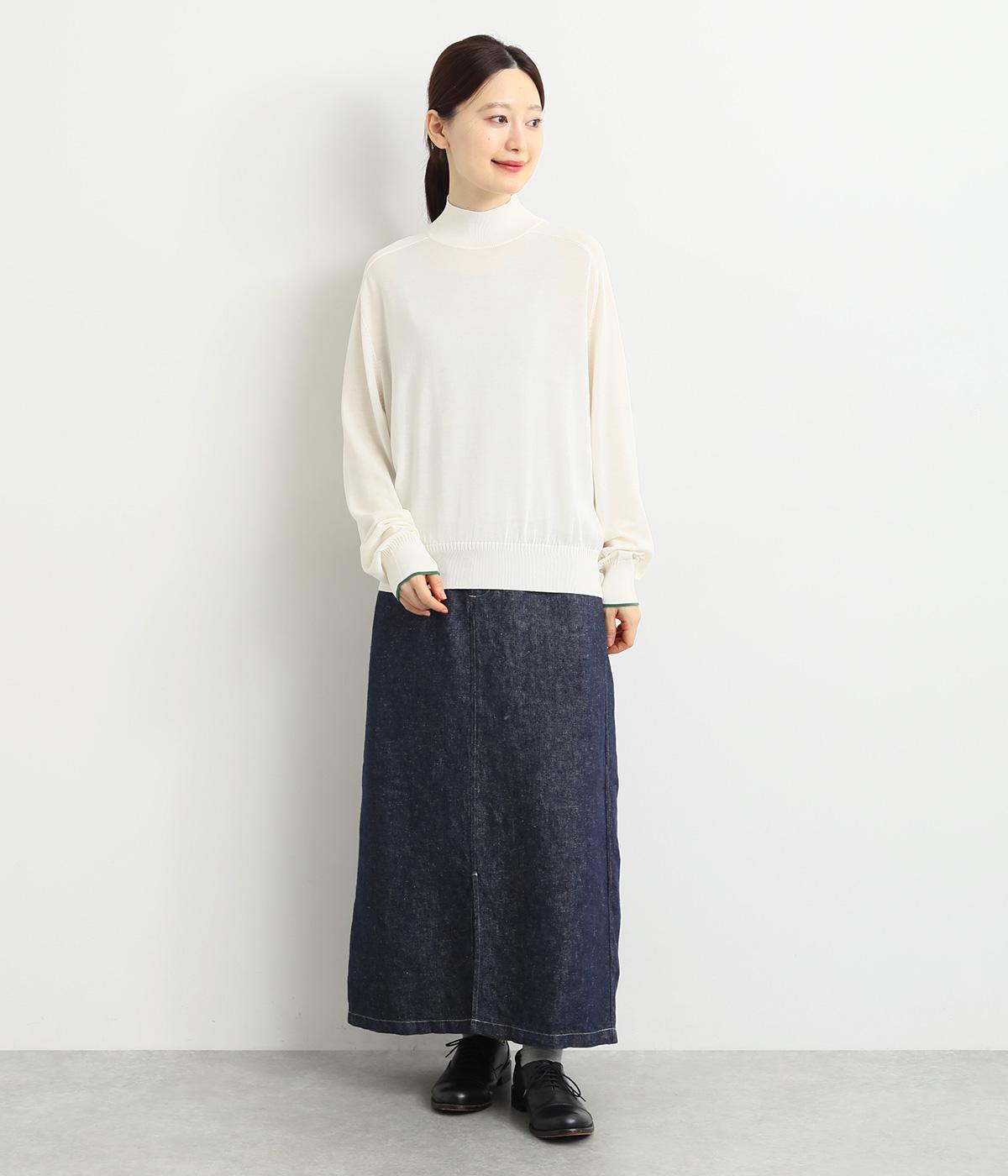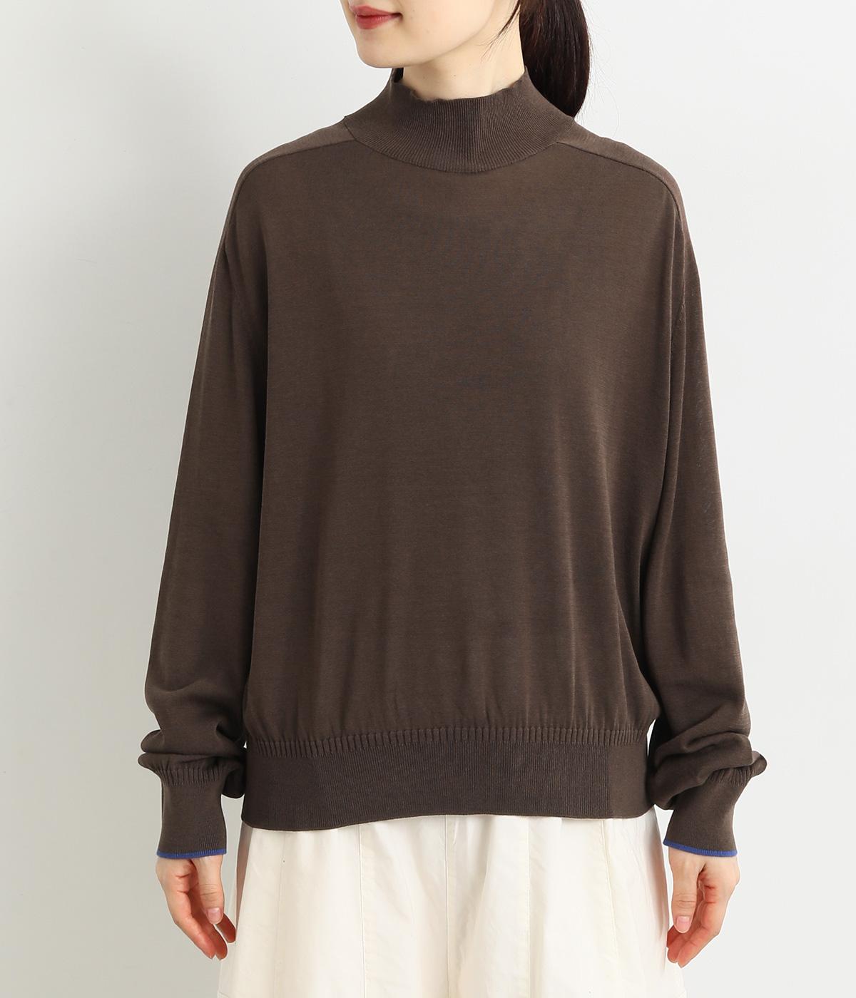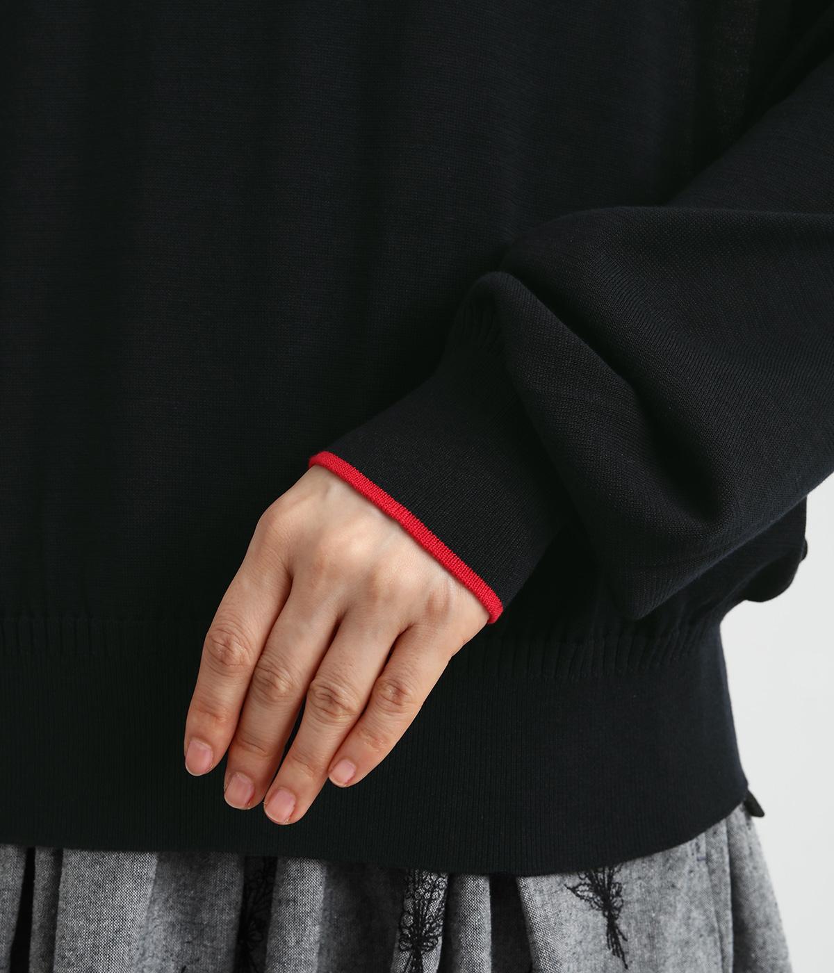 なめらかな肌ざわりのハイゲージで大人顔なニットプルオーバーを仕立てました。袖口に入れたポイントカラーがアクセントになっています。独特な形状のラグランスリーブで体をしめつけないシルエットです。