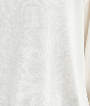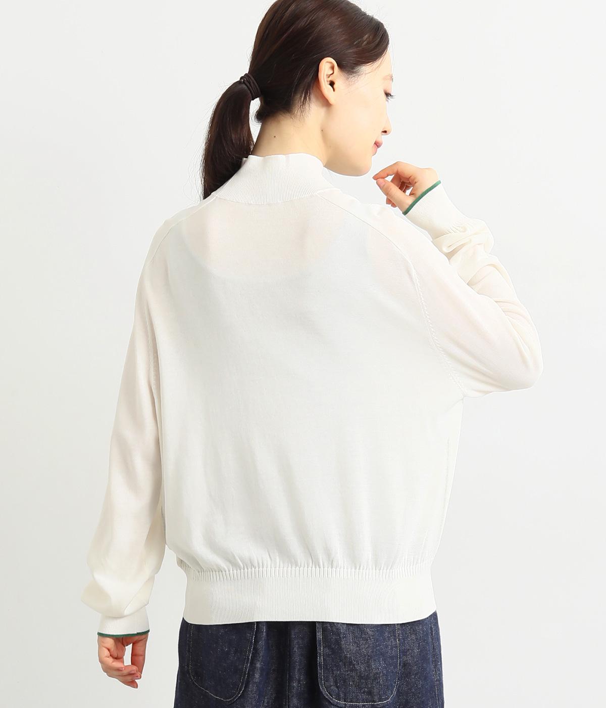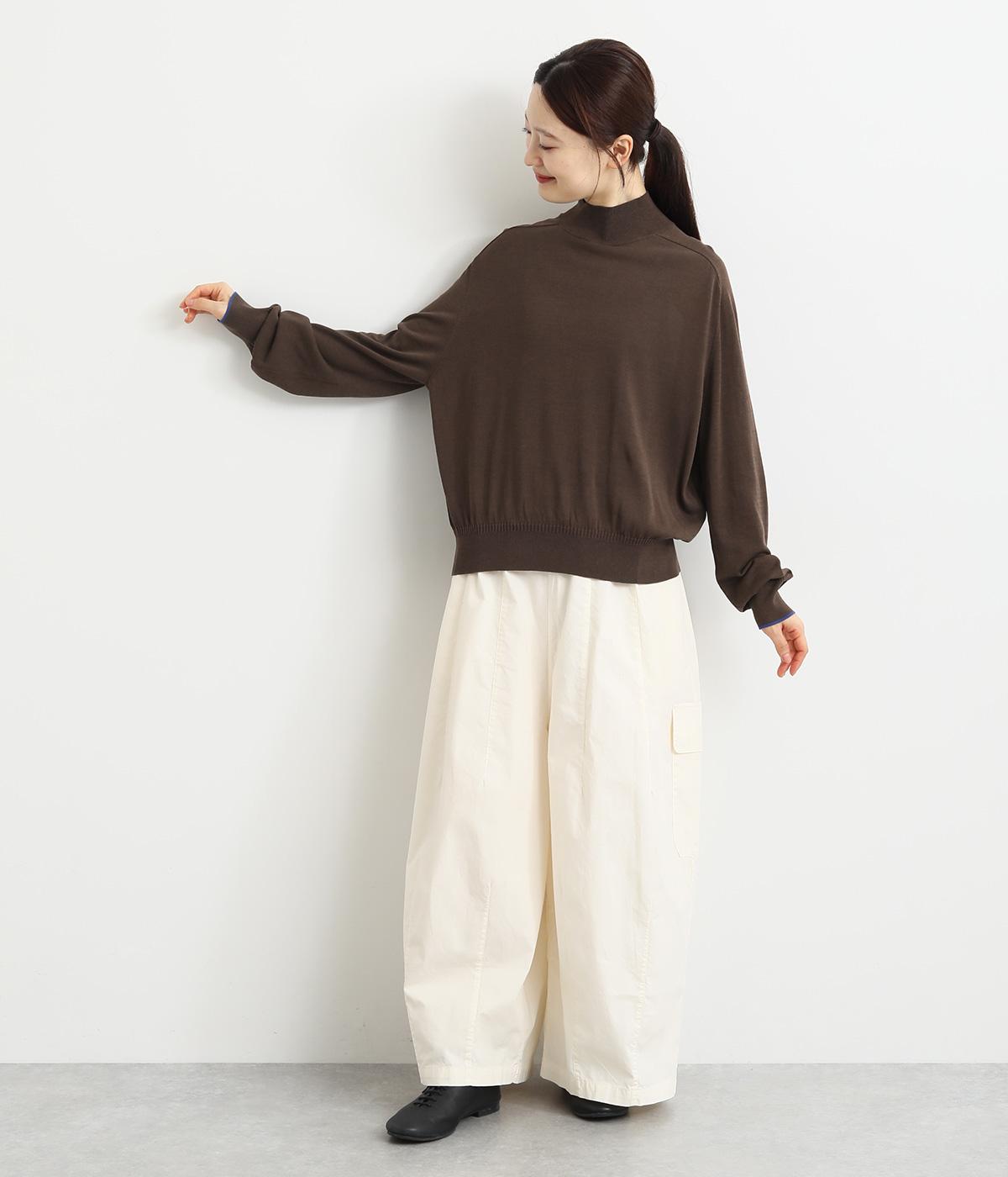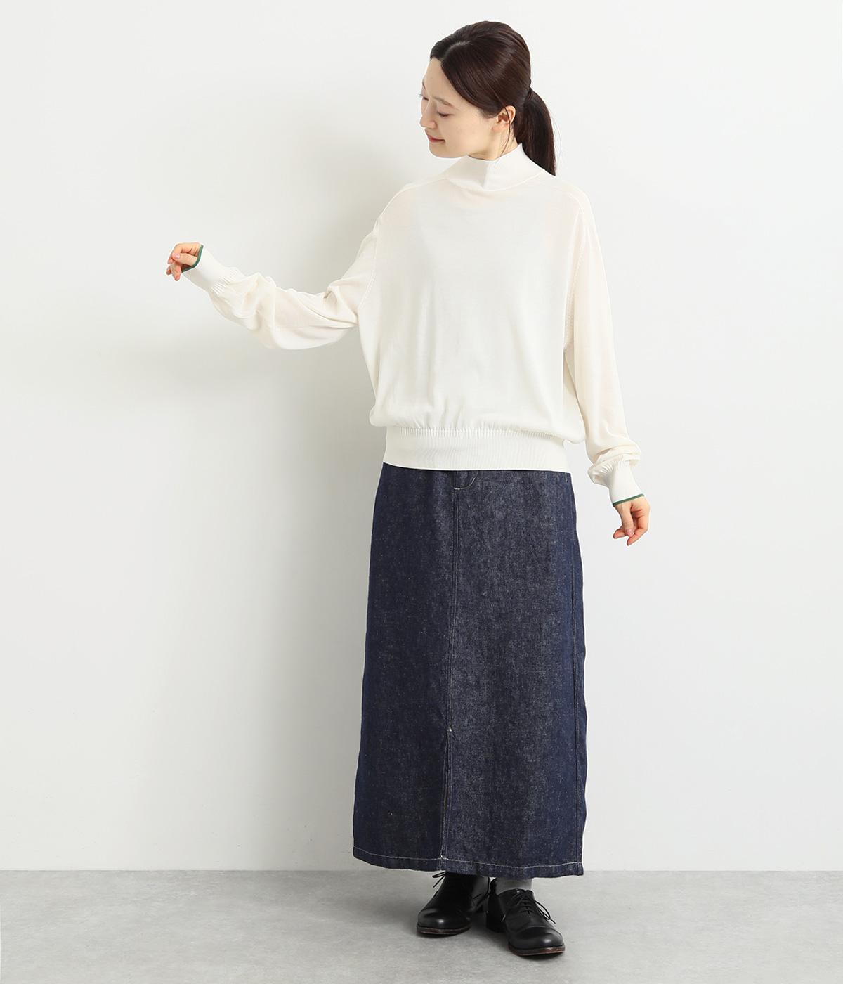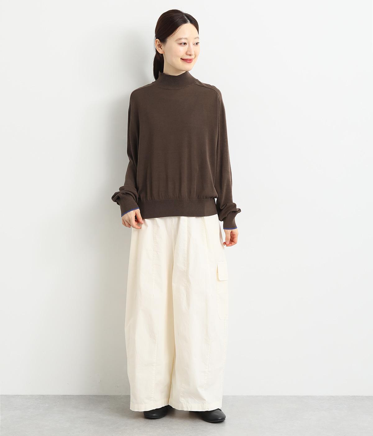なめらかな肌ざわりのハイゲージで大人顔なニットプルオーバーを仕立てました。袖口に入れたポイントカラーがアクセントになっています。独特な形状のラグランスリーブで体をしめつけないシルエットです。