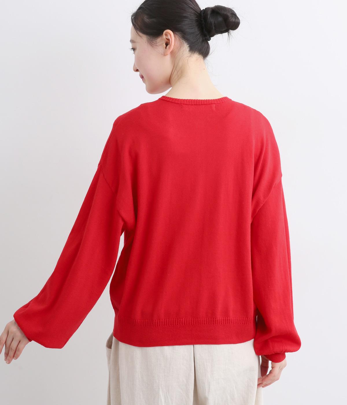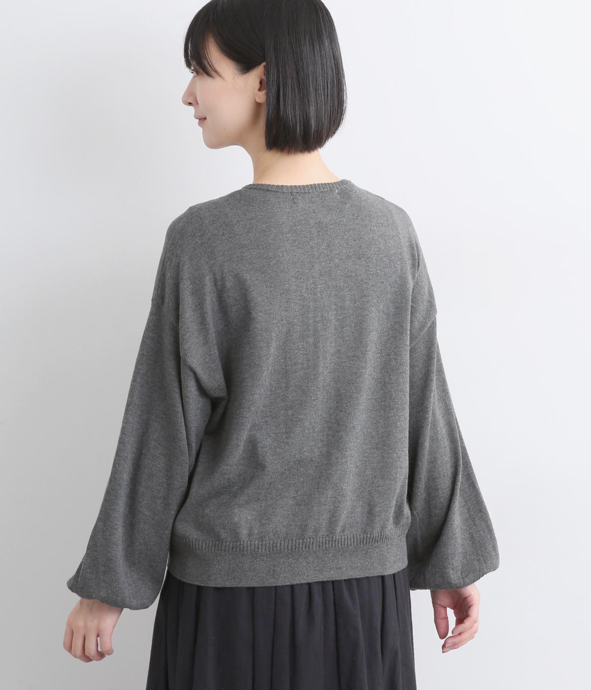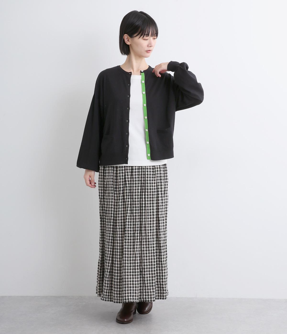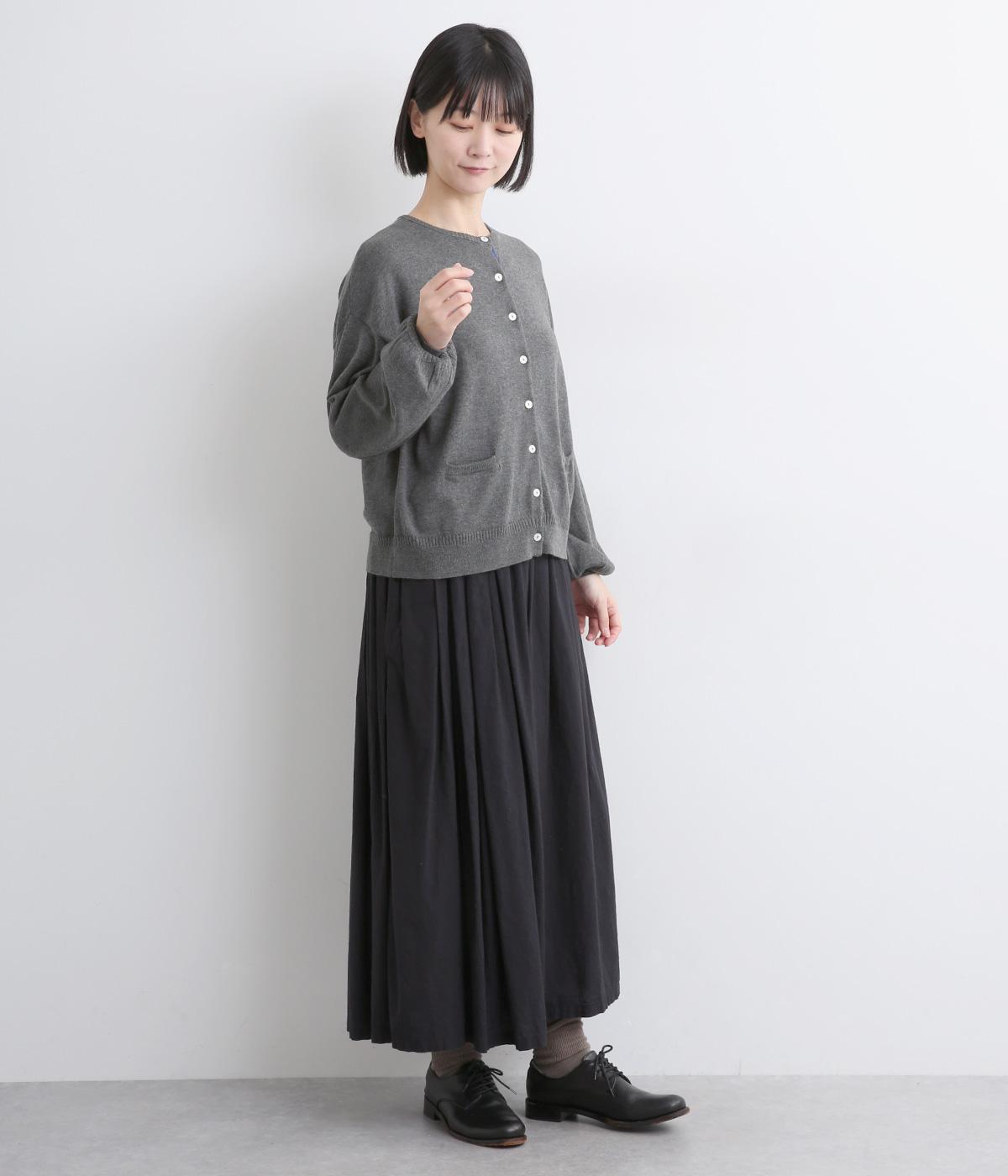 内側を配色にした前立てがさりげないアクセントのカーディガン。ぽわんと膨らみのある袖のシルエットもかわいらしい印象を与えます。ほどよい丈感でいろいろなボトムスと合わせやすく、着まわしできるアイテムです。