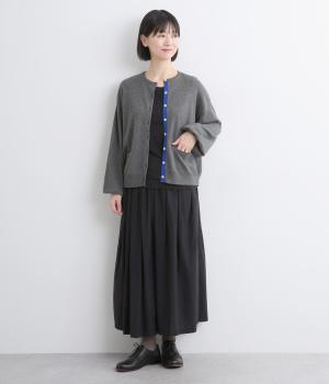 なめらかで優しい肌ざわりのコットンメリノウール生地を使用しました。軽やかな着心地ながら保温性も兼ね備え、秋冬にぴったりの素材感です。