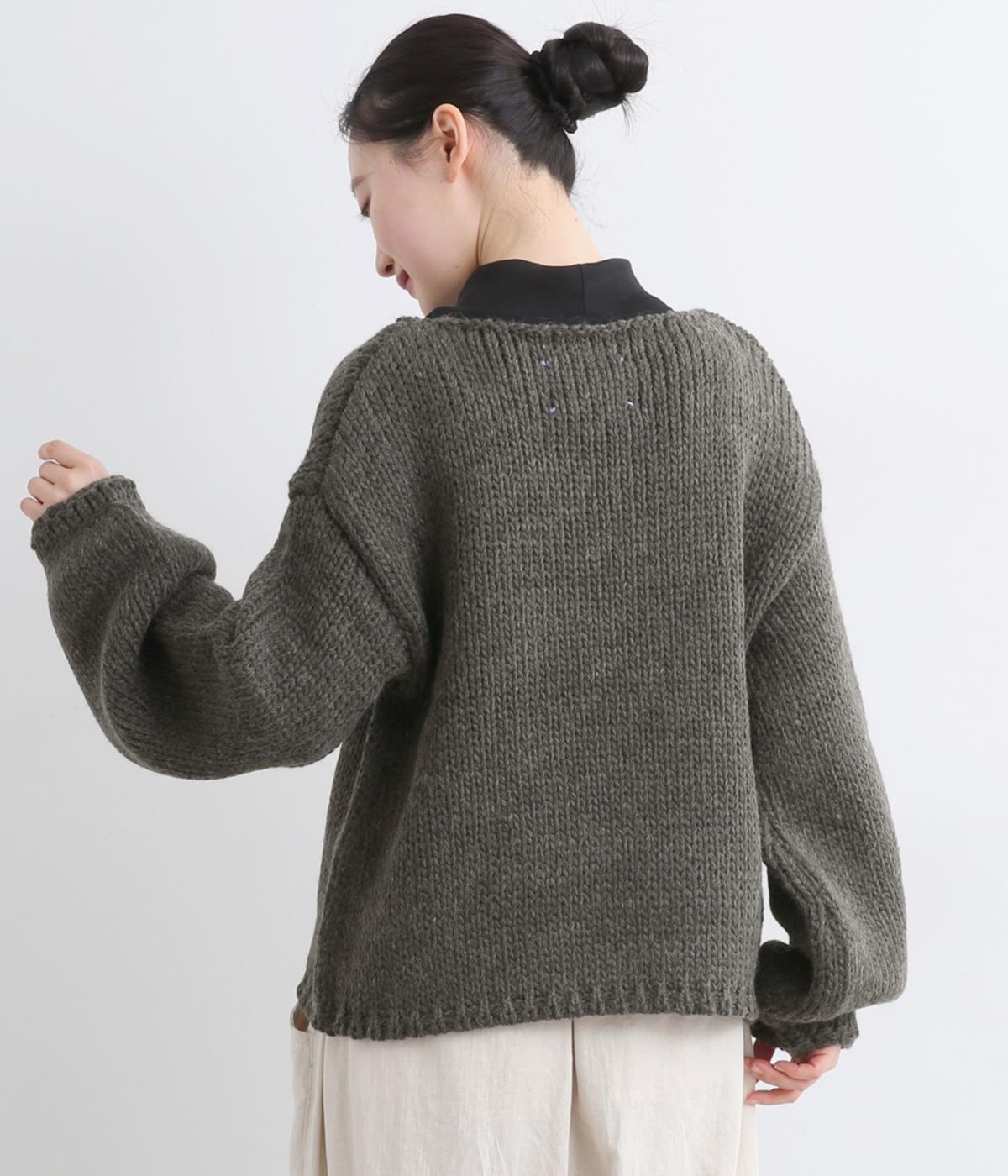 ローゲージでふんわりとボリュームのあるニットプルオーバーです。すっきり仕上げた首元が顔まわりを明るく見せ、インナーとも合わせやすいデザイン。首のうしろのタグステッチが、さりげないアクセントになっています。
