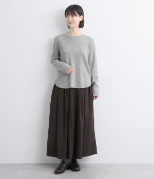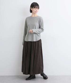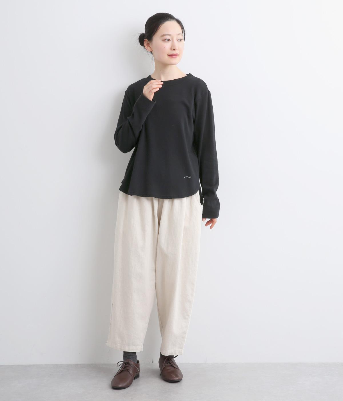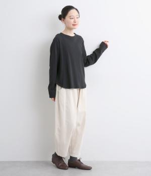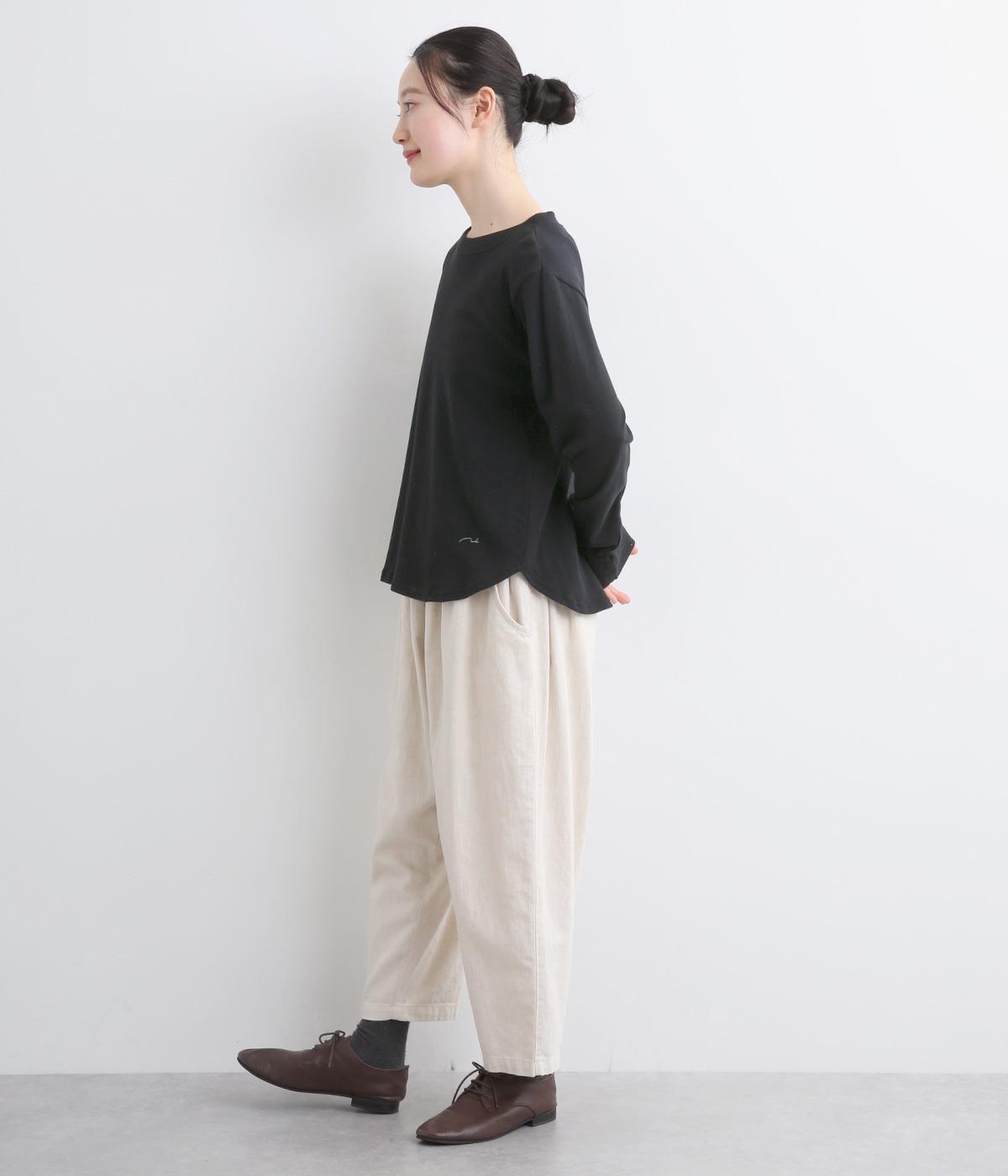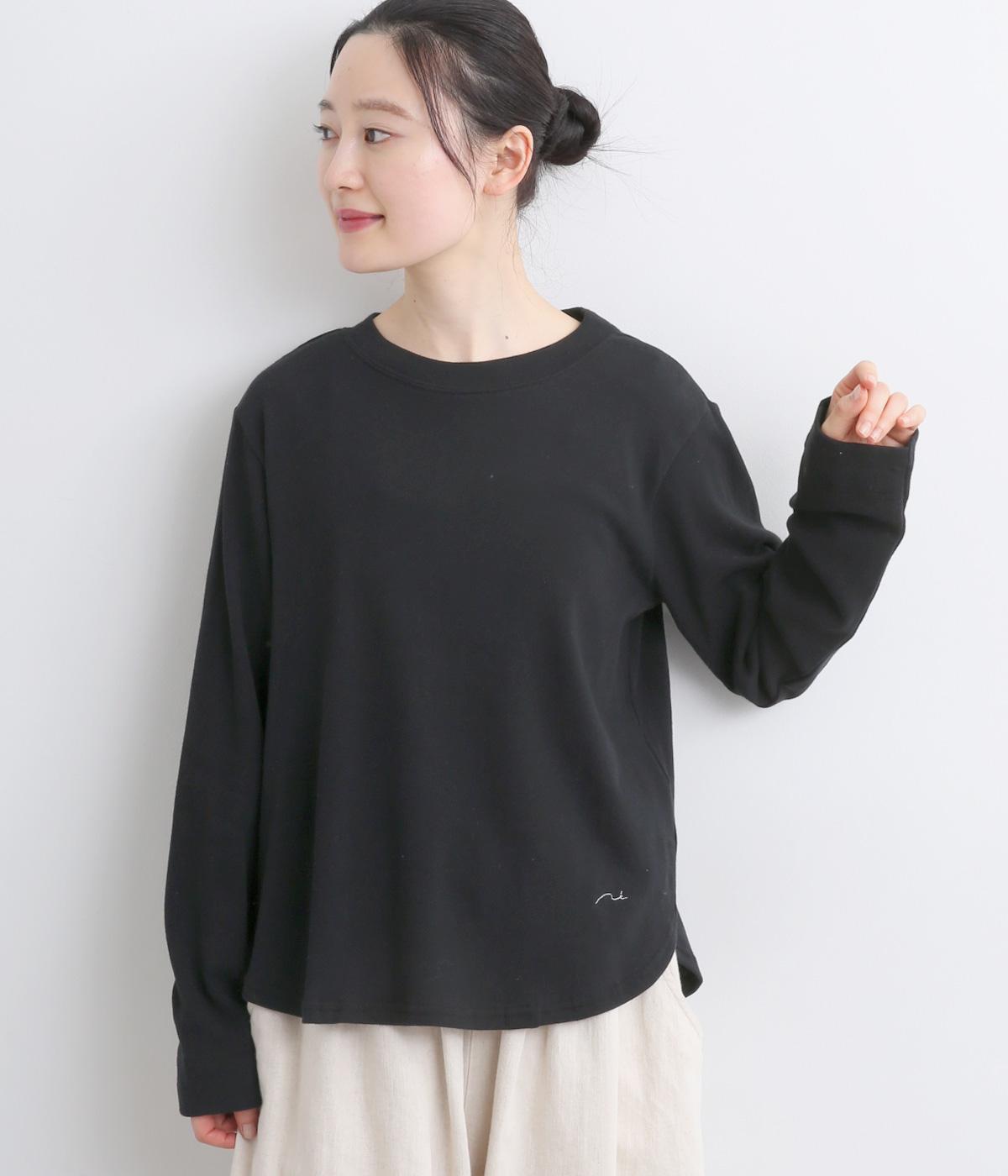 丸みをつけた裾がかわいらしい印象のプルオーバー。裾にさりげなくほどこした刺しゅうもアクセントになっています。シンプルな型と着心地のよい素材感でデイリーに取り入れやすい一枚です。さまざまなボトムスと好相性です。