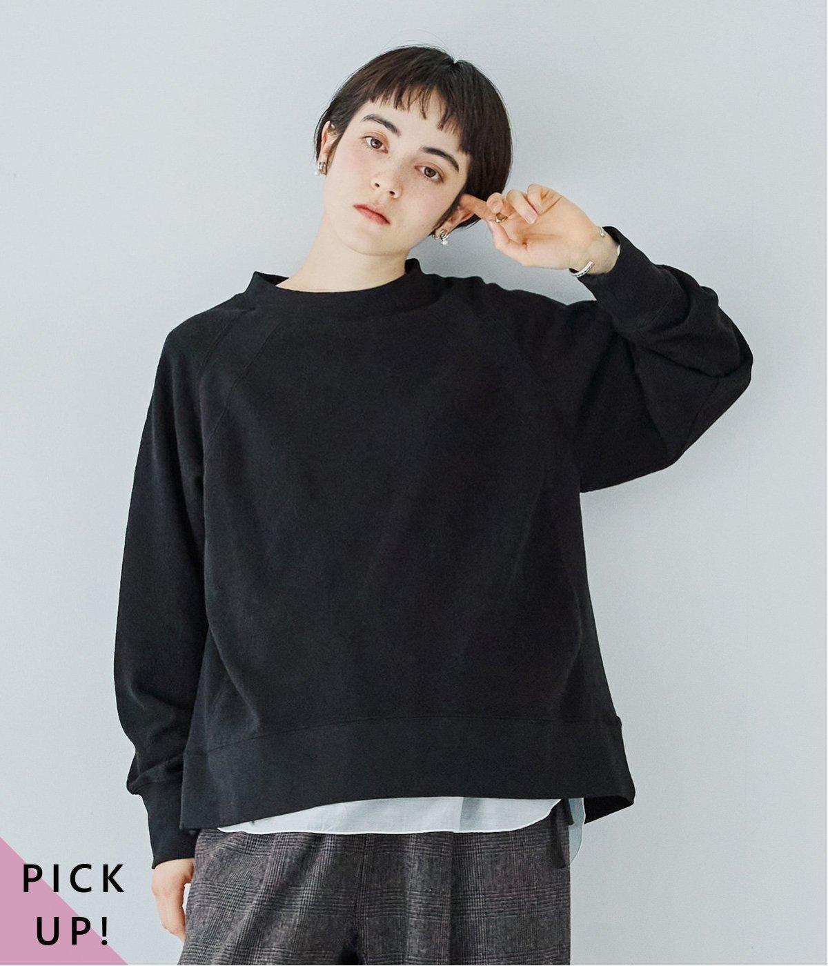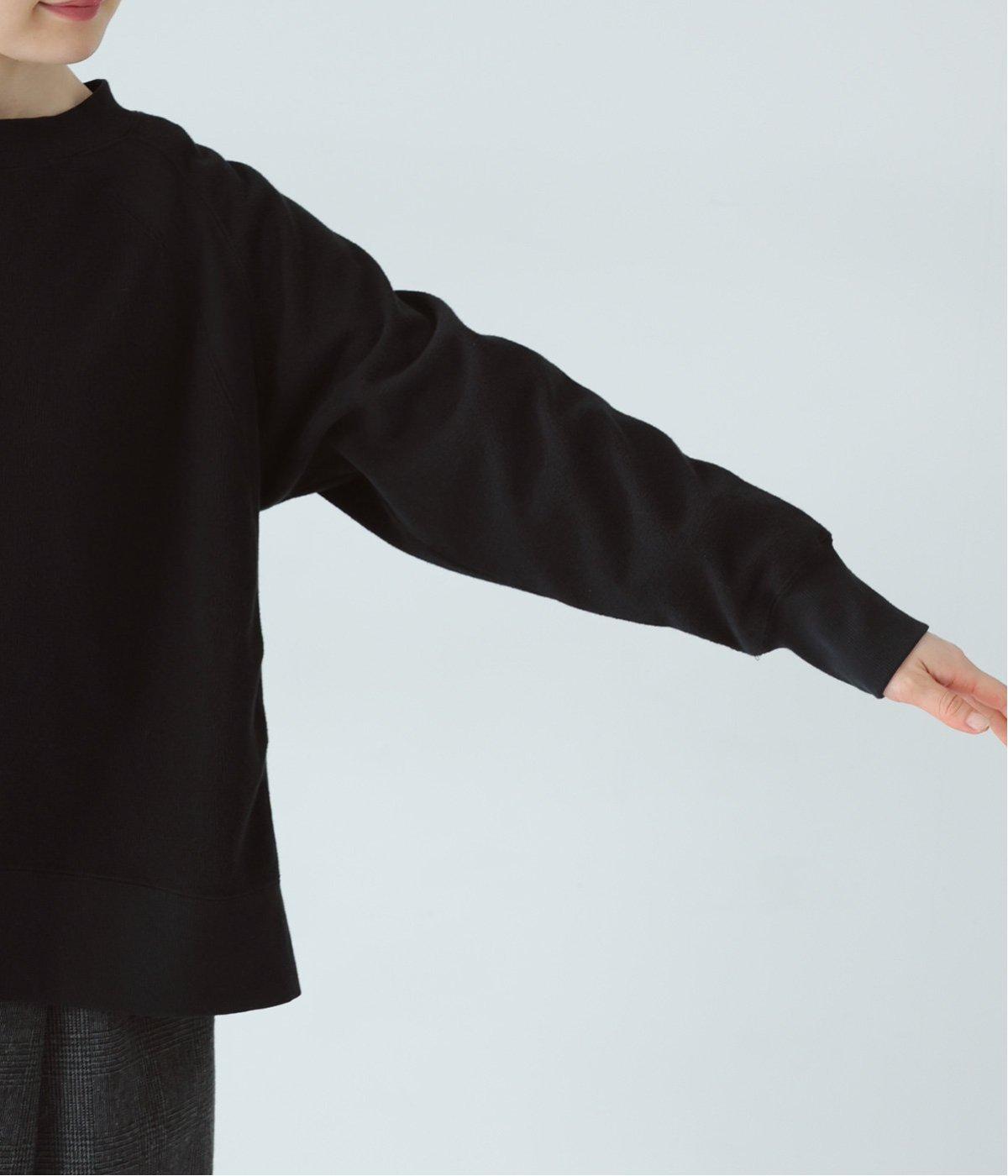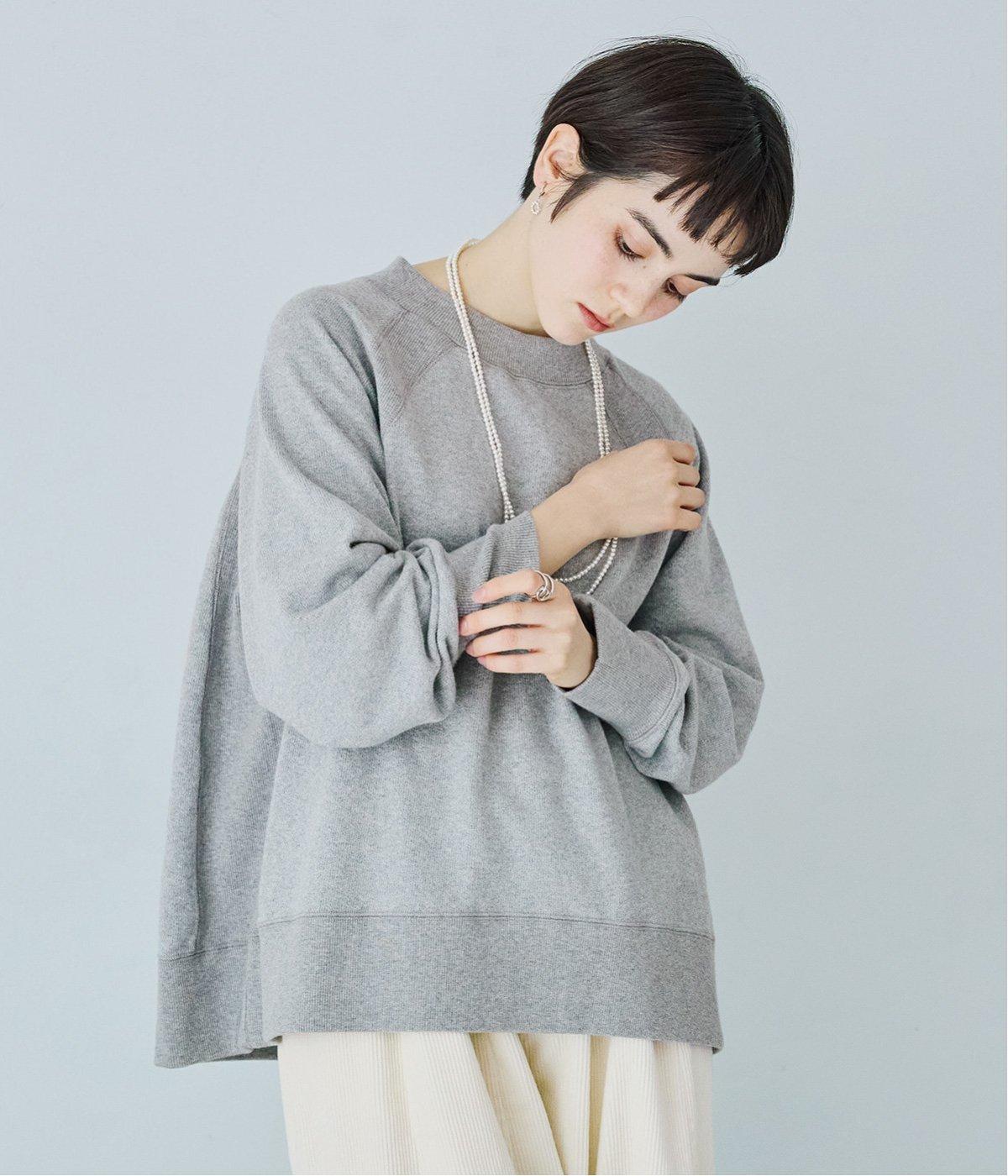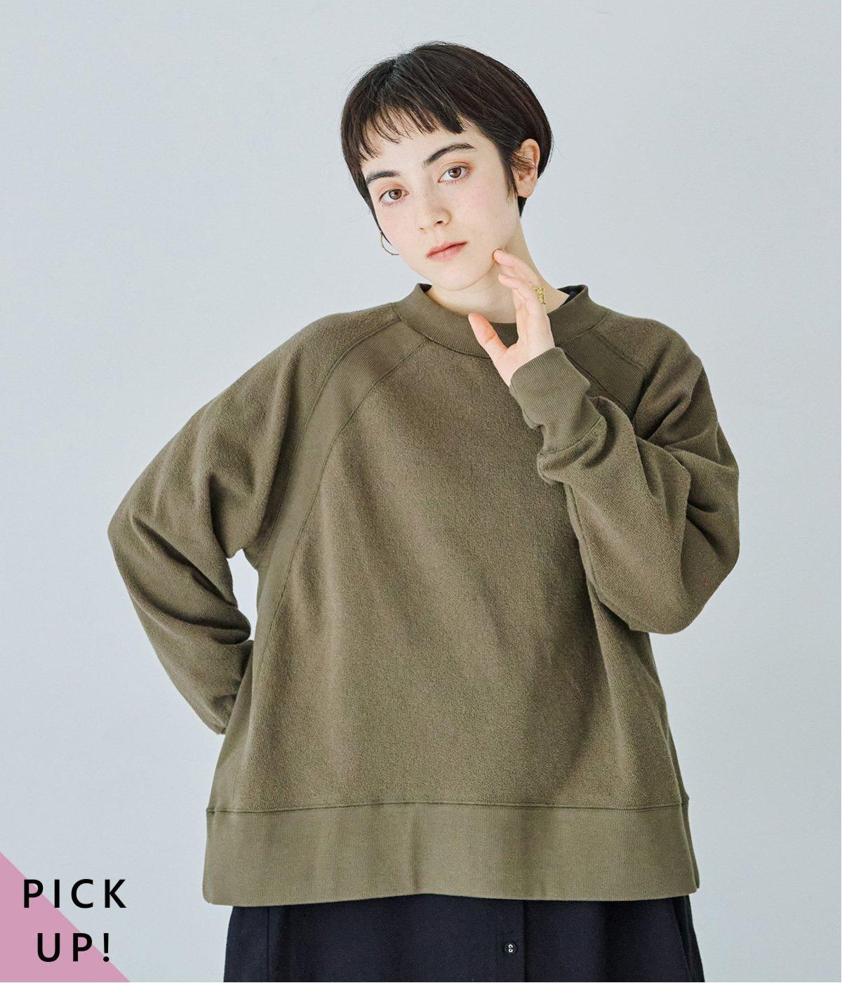 詰まりすぎないゆるめのモックネックが、ほどよい抜け感を演出。ゆったりとしたボックスシルエットにアクセントを添える、ラグランスリーブのリブ切り替えもポイント。