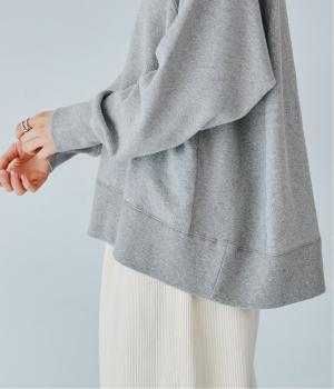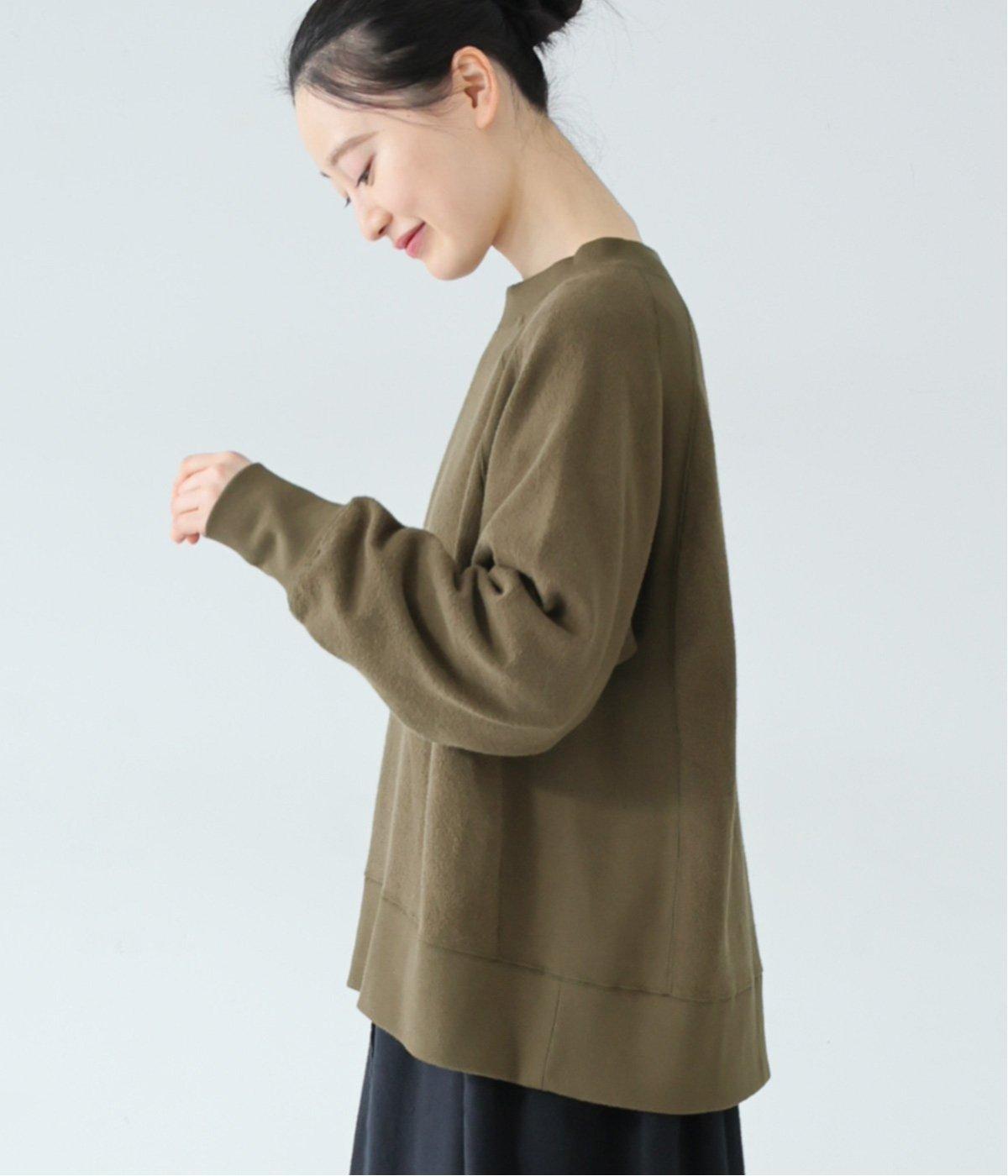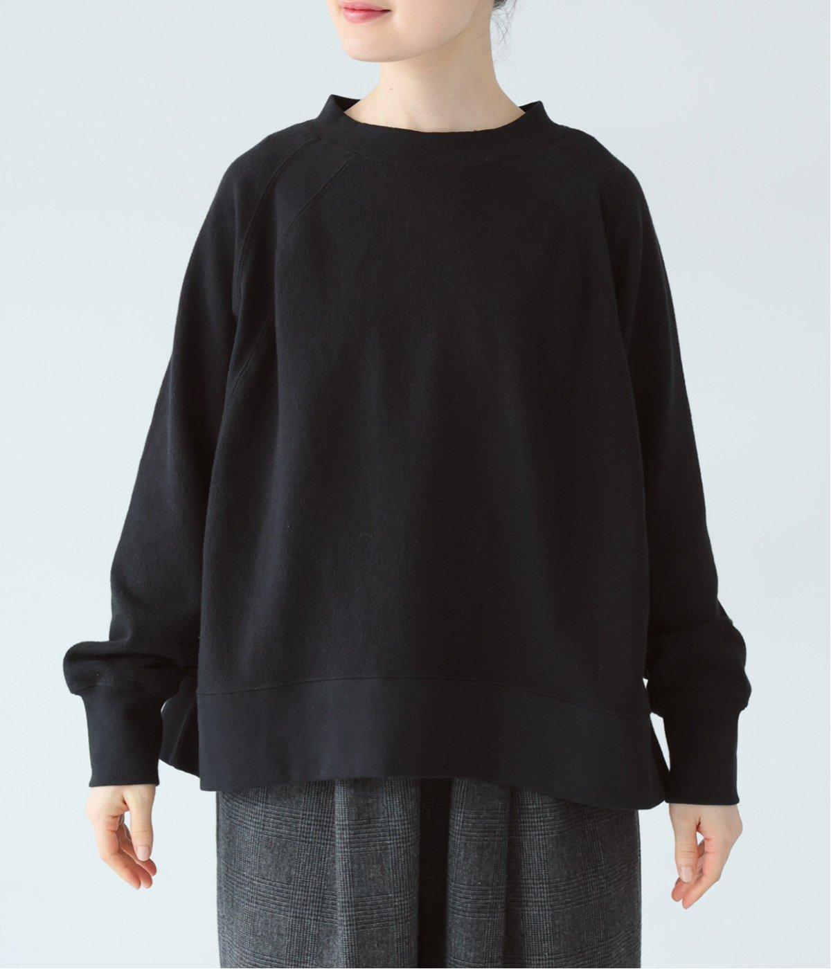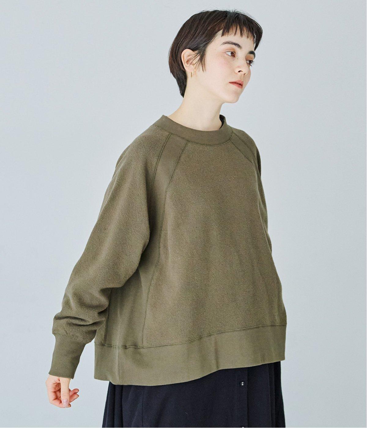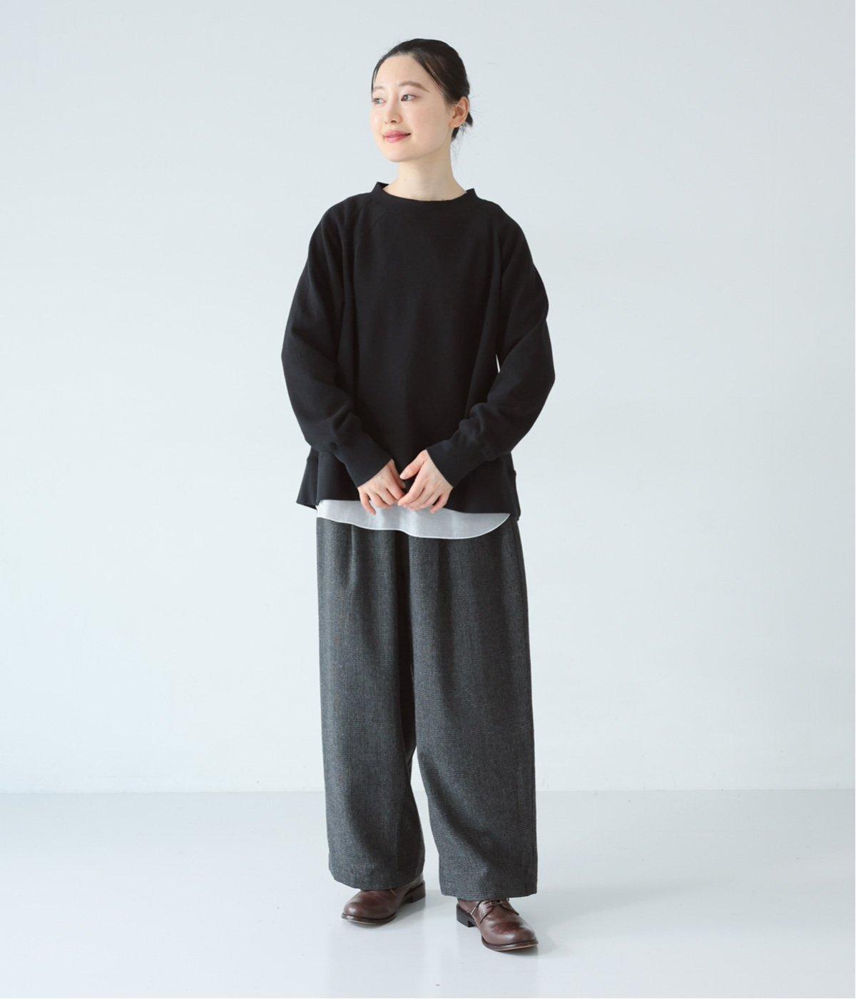 詰まりすぎないゆるめのモックネックが、ほどよい抜け感を演出。ゆったりとしたボックスシルエットにアクセントを添える、ラグランスリーブのリブ切り替えもポイント。