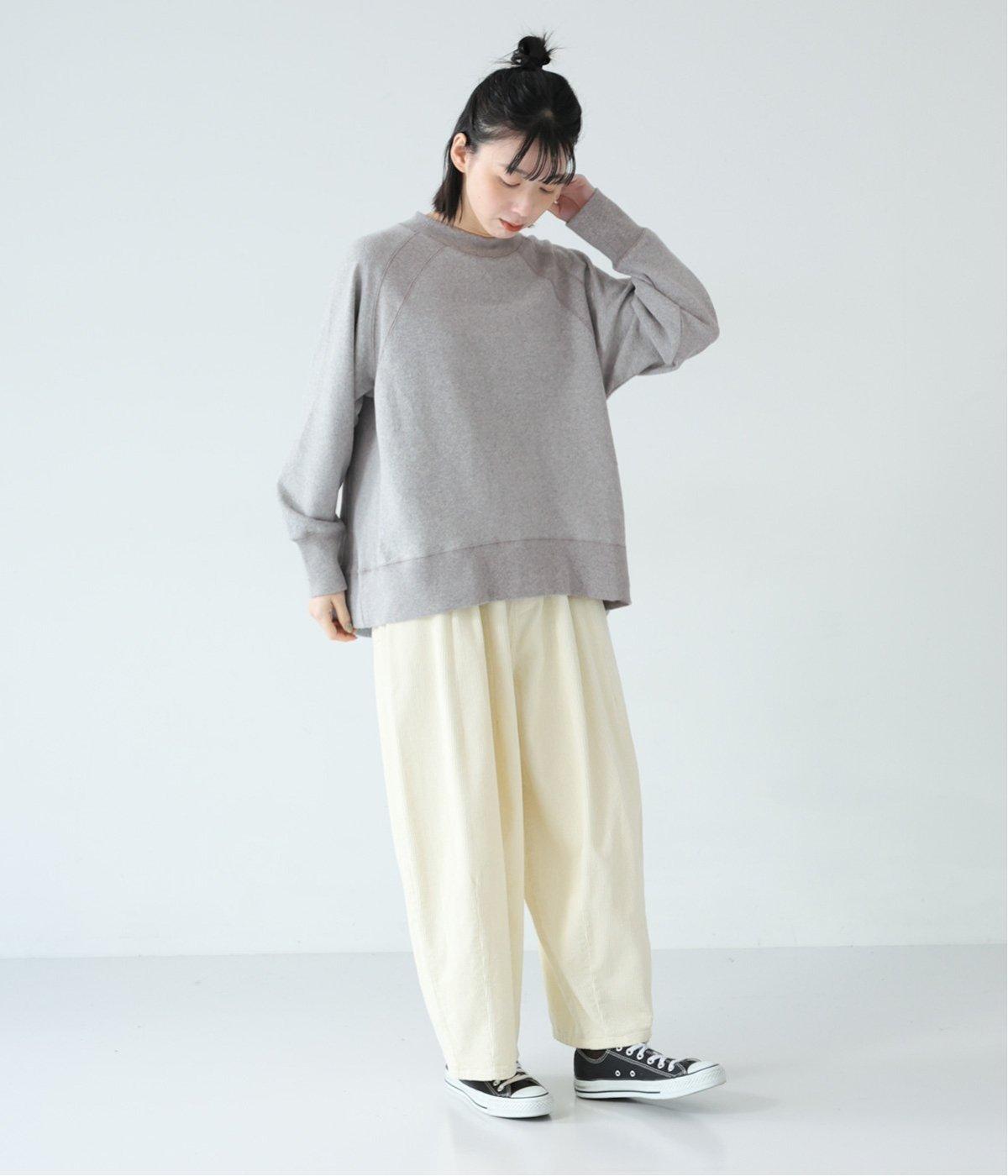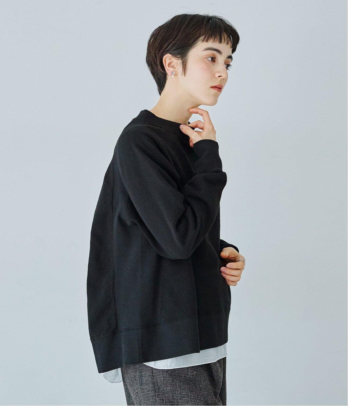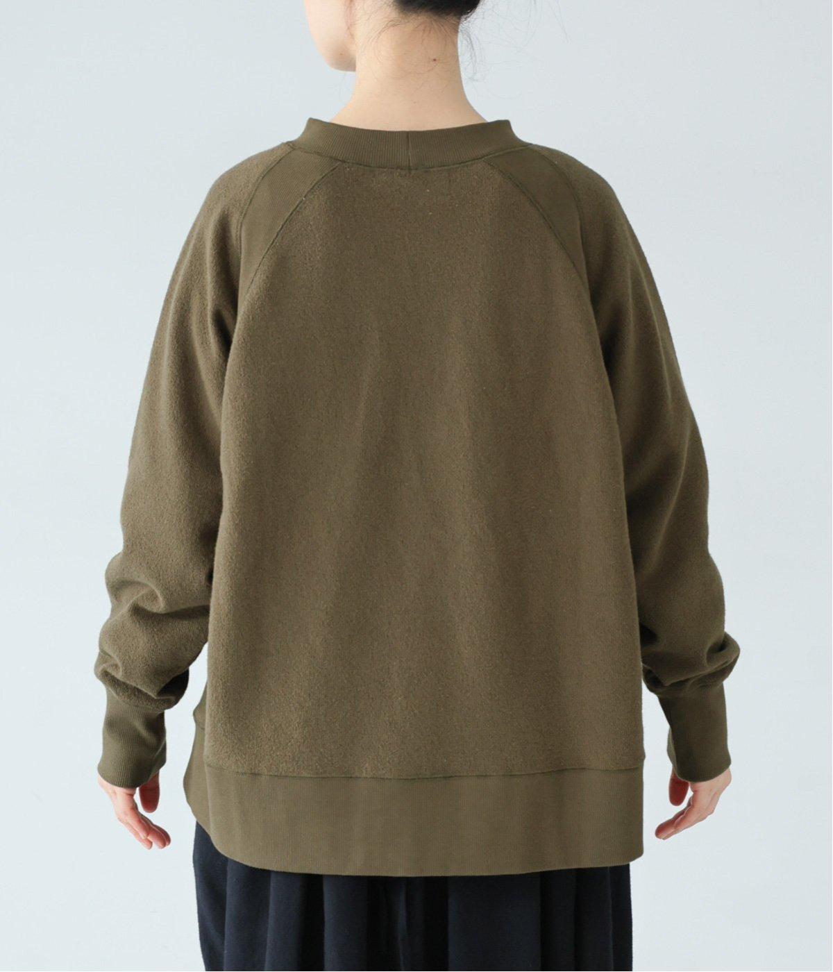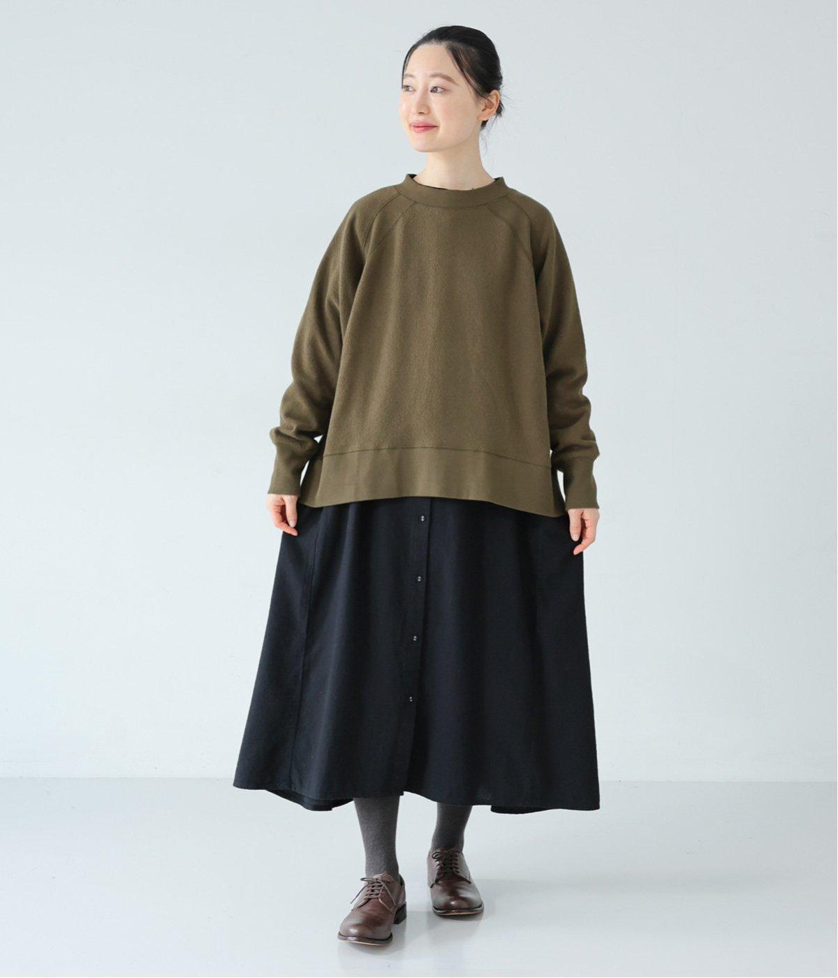 詰まりすぎないゆるめのモックネックが、ほどよい抜け感を演出。ゆったりとしたボックスシルエットにアクセントを添える、ラグランスリーブのリブ切り替えもポイント。