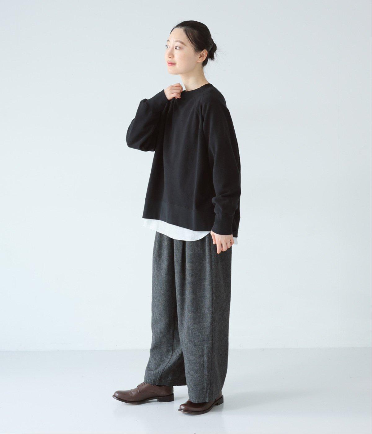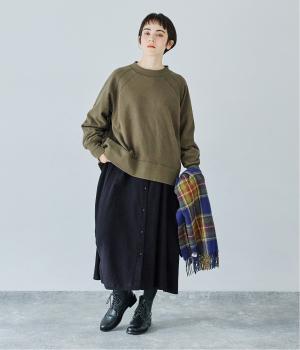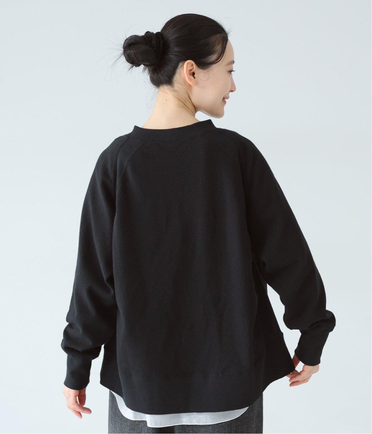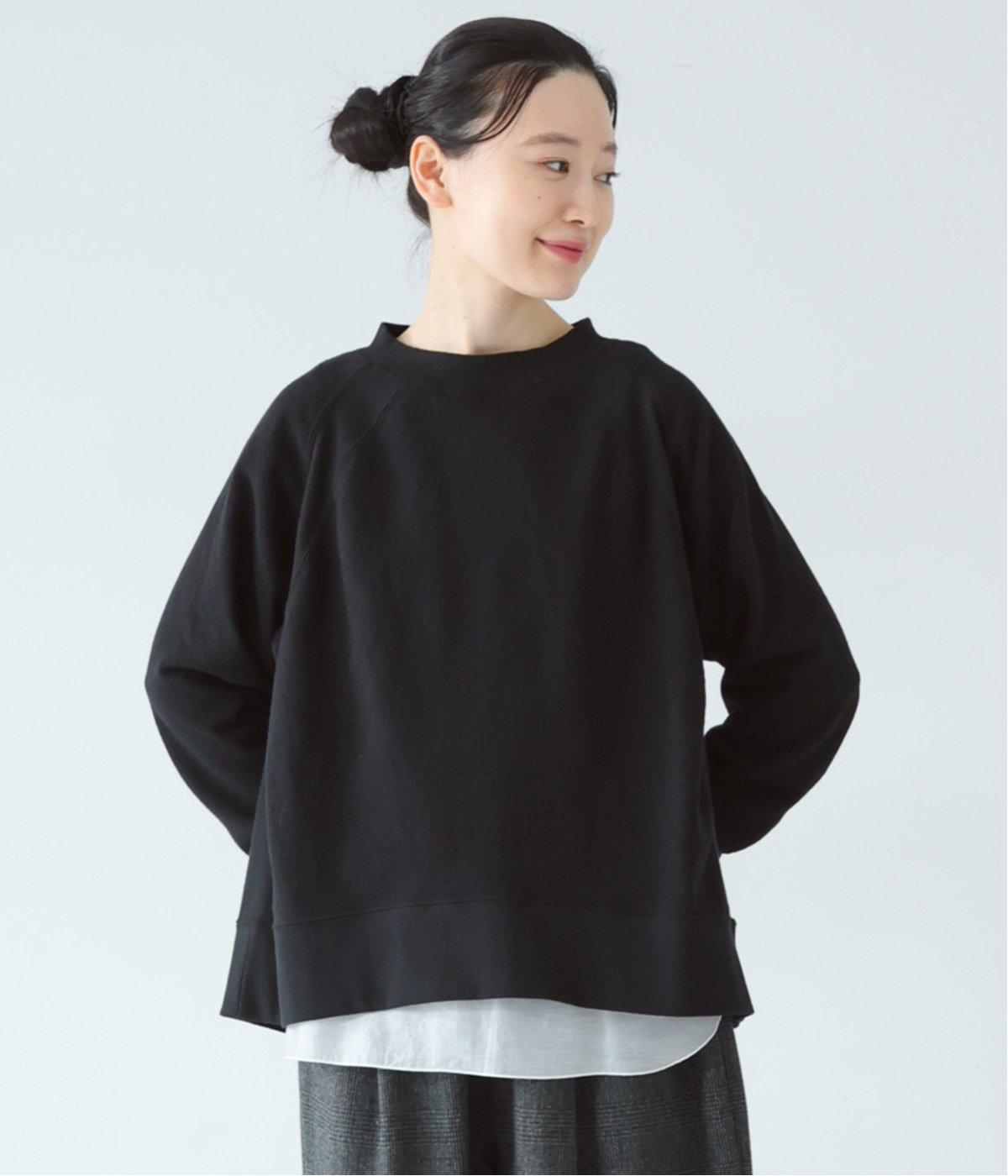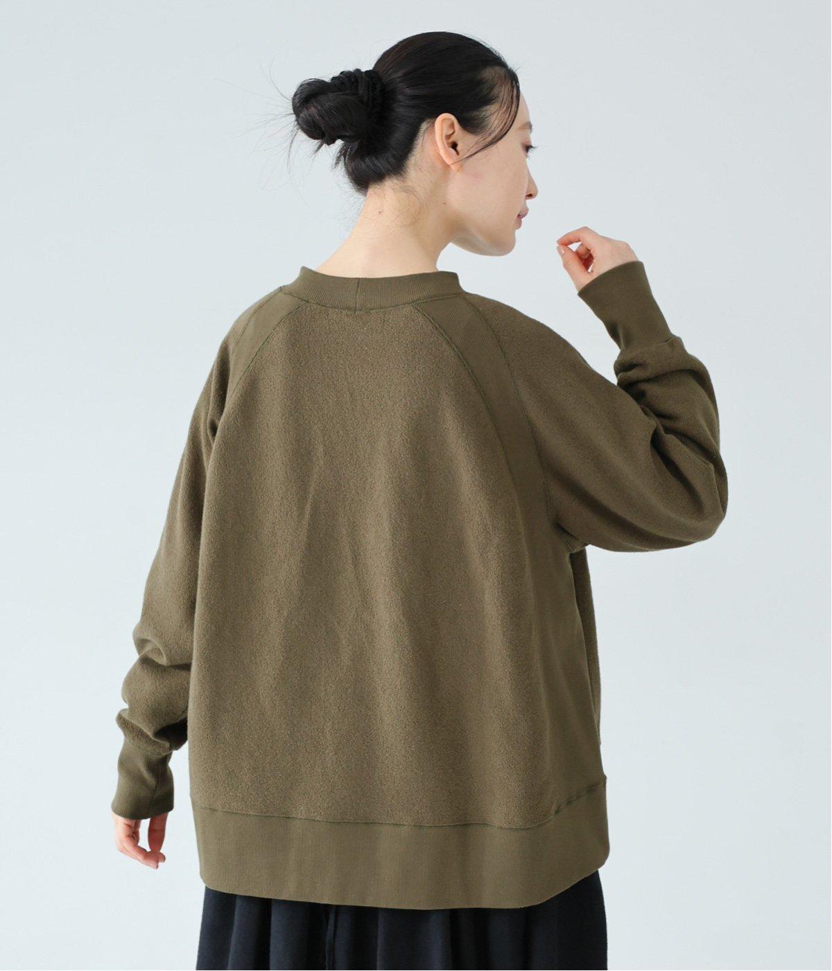 詰まりすぎないゆるめのモックネックが、ほどよい抜け感を演出。ゆったりとしたボックスシルエットにアクセントを添える、ラグランスリーブのリブ切り替えもポイント。