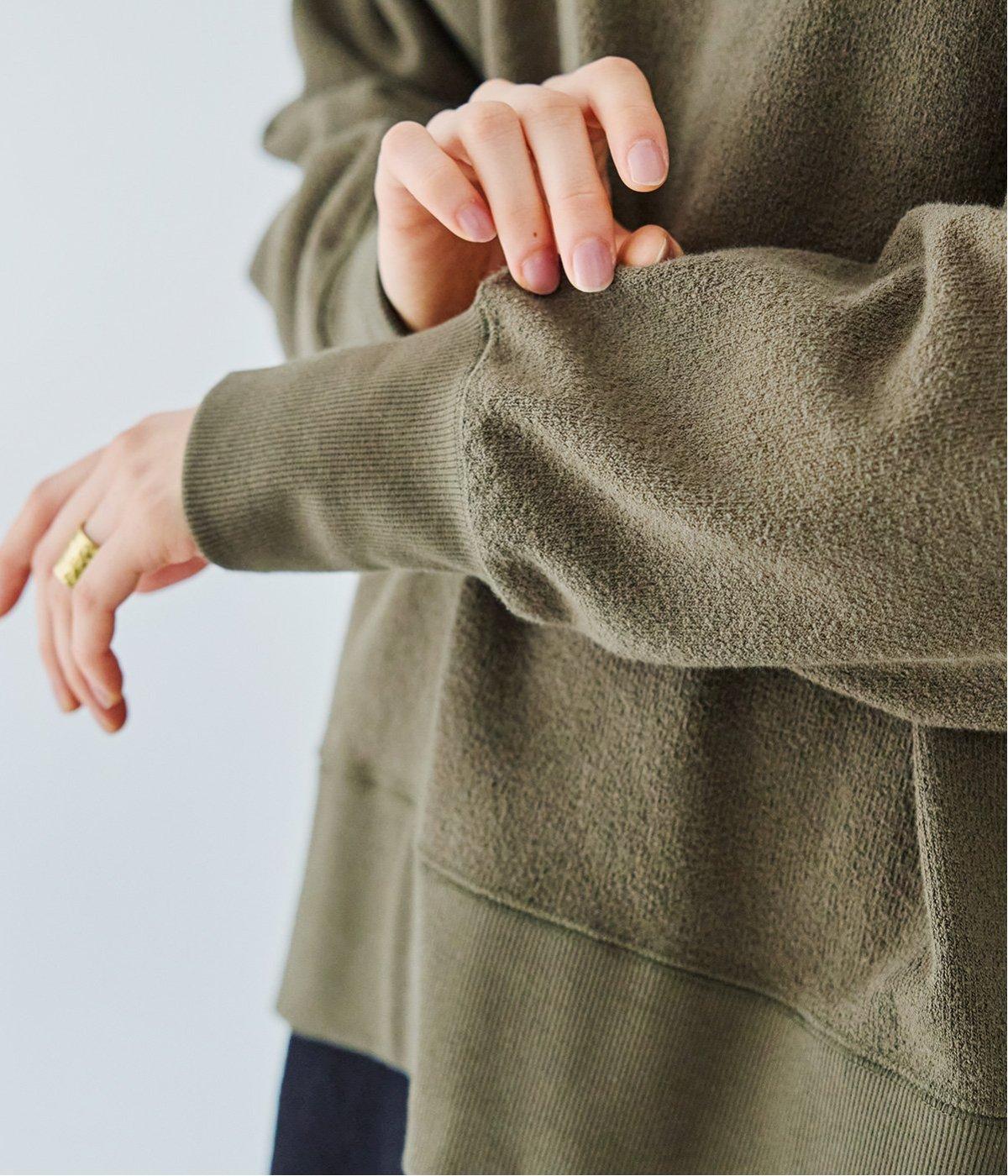 見た目にもあたたかさが伝わる、パイルのような柔らかな生地感。もっちりとした手触りで、ニットとスウェットの中間のような心地よさです。