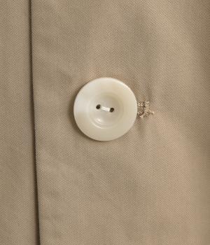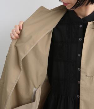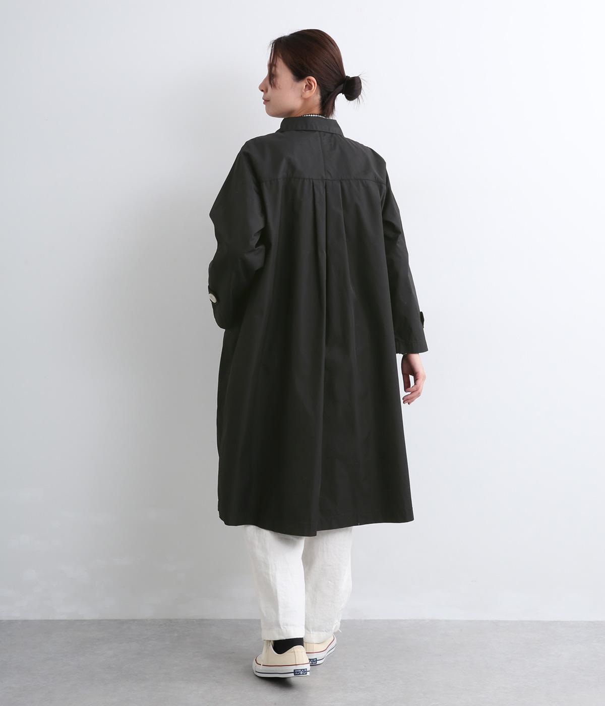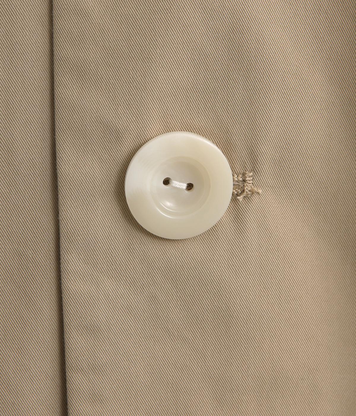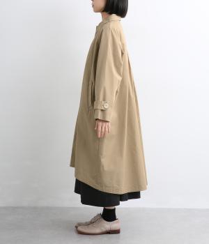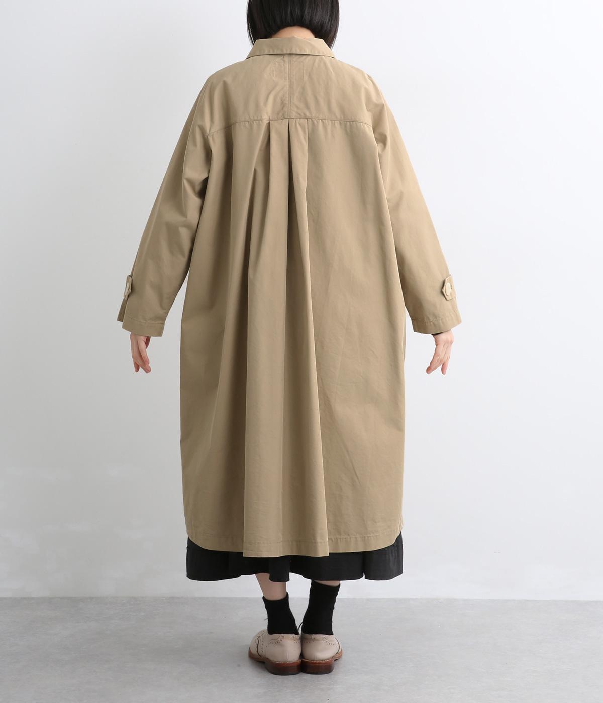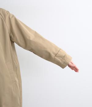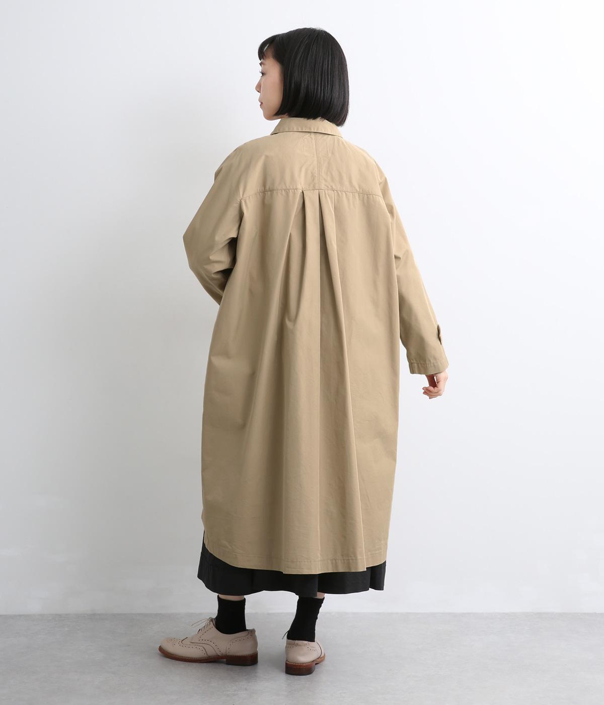 オーソドックスでマニッシュな印象のステンカラーコートにビッグボタンでカジュアルな遊び心を加えました。肩のラインをなだらかに見せるラグラン袖が、かっちり決めすぎずこなれた抜け感に。中に着込みやすいよう後ろタックでゆったりと。