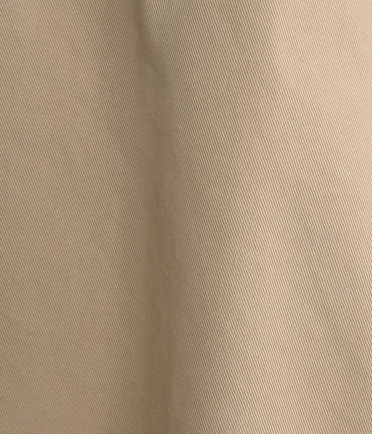コットンとポリエステルをミックスさせた混紡生地を採用。綿のやわらかさやさらりとした肌あたりに速乾性のよさとタフなハリ感が加わり、ロング丈でも軽量に仕上がっています。
