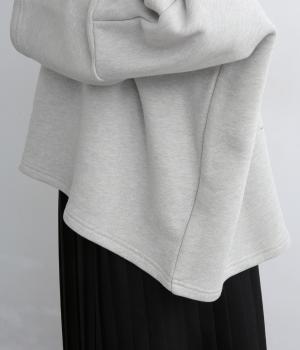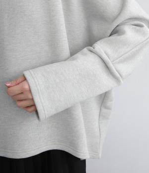 肉厚すぎず適度にしっかりとした中厚手のコットン裏毛生地を採用。伸縮性もあるので肌あたりが良く、季節をまたいで快適に着まわせます。
