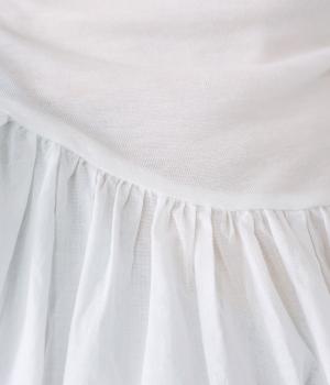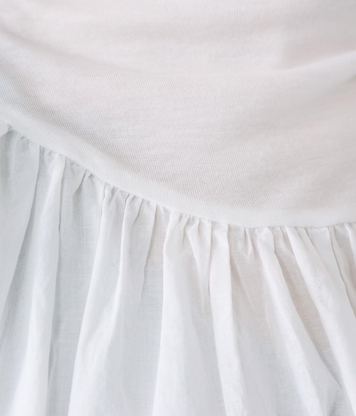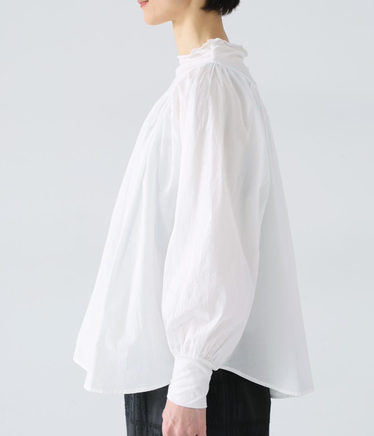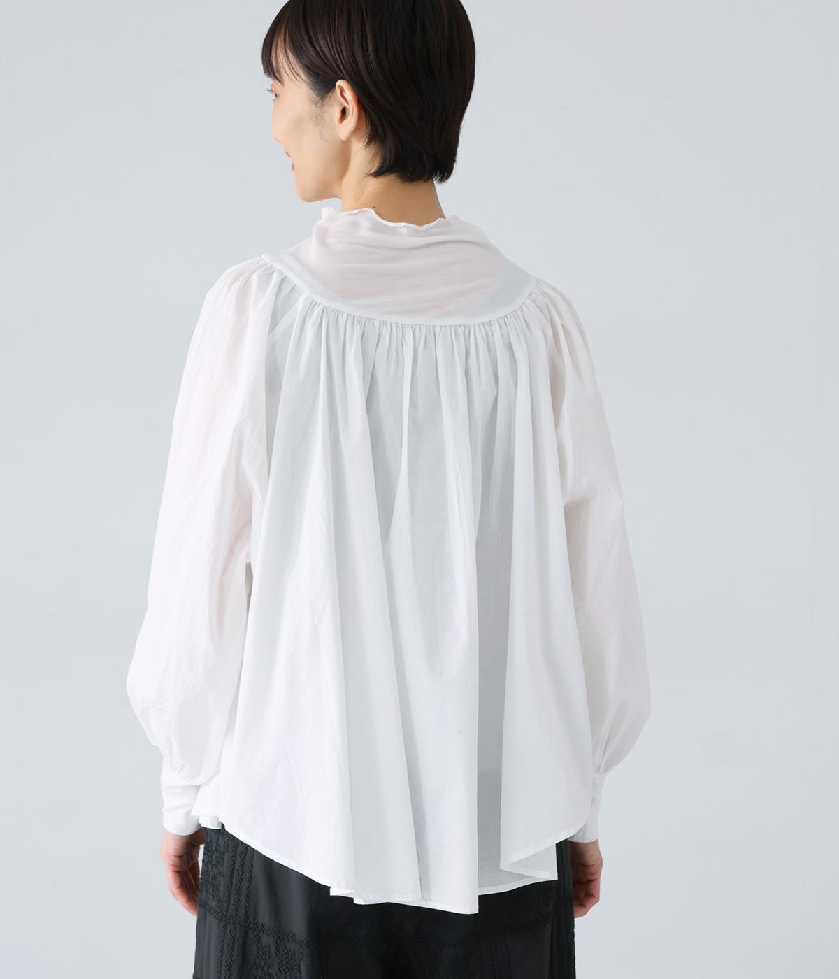 伸びがよく透け感があり、肌あたりのよいテンセル天竺をネックからヨークにかけてと袖口に使用。薄くて軽く、ハリ感のあるコットンキャンブリックボイルを身頃と袖に使用しています。