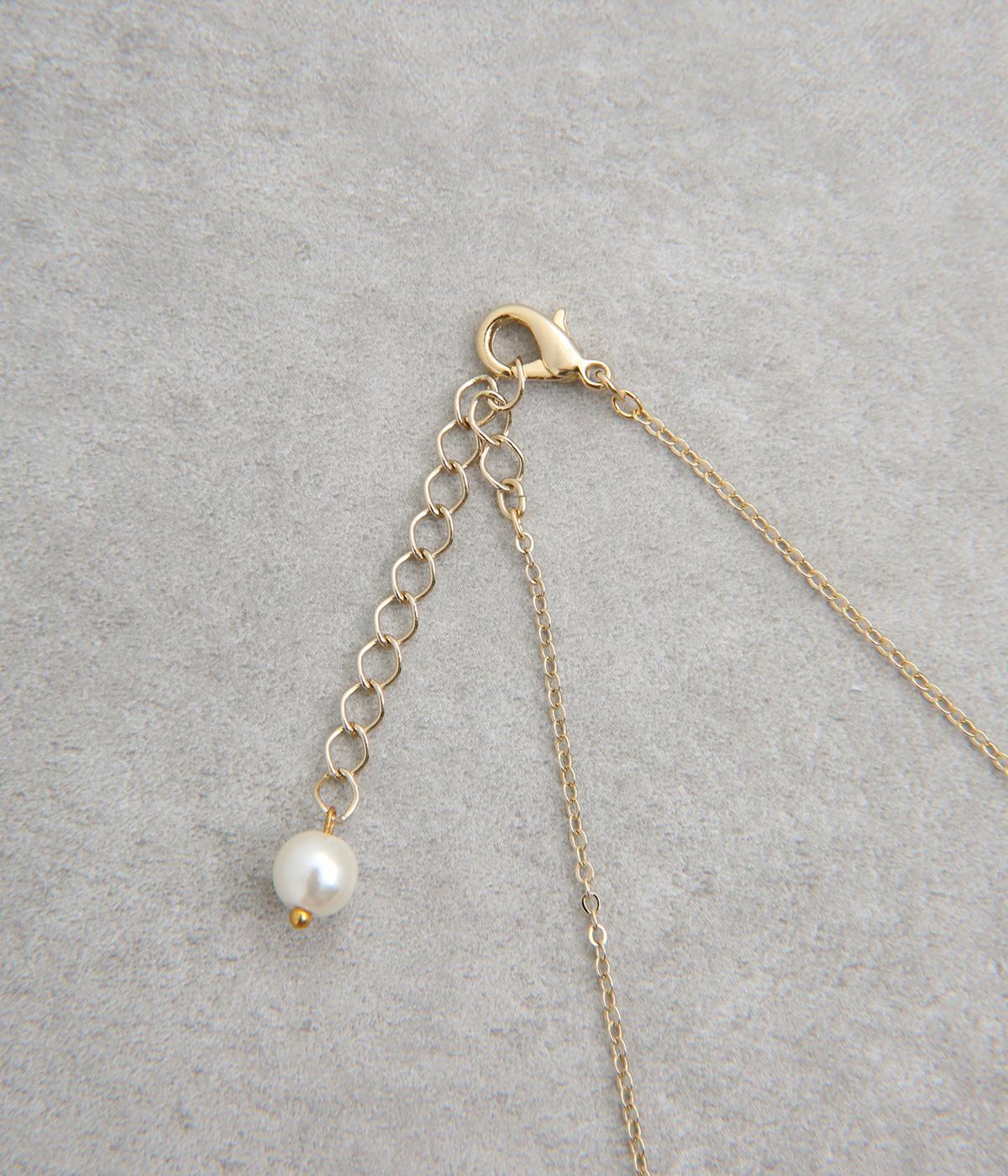 気兼ねなく使えるフェイクパールは、繊細な光沢が魅力です。真鍮チェーンとの組み合わせで上品さをプラスしました。