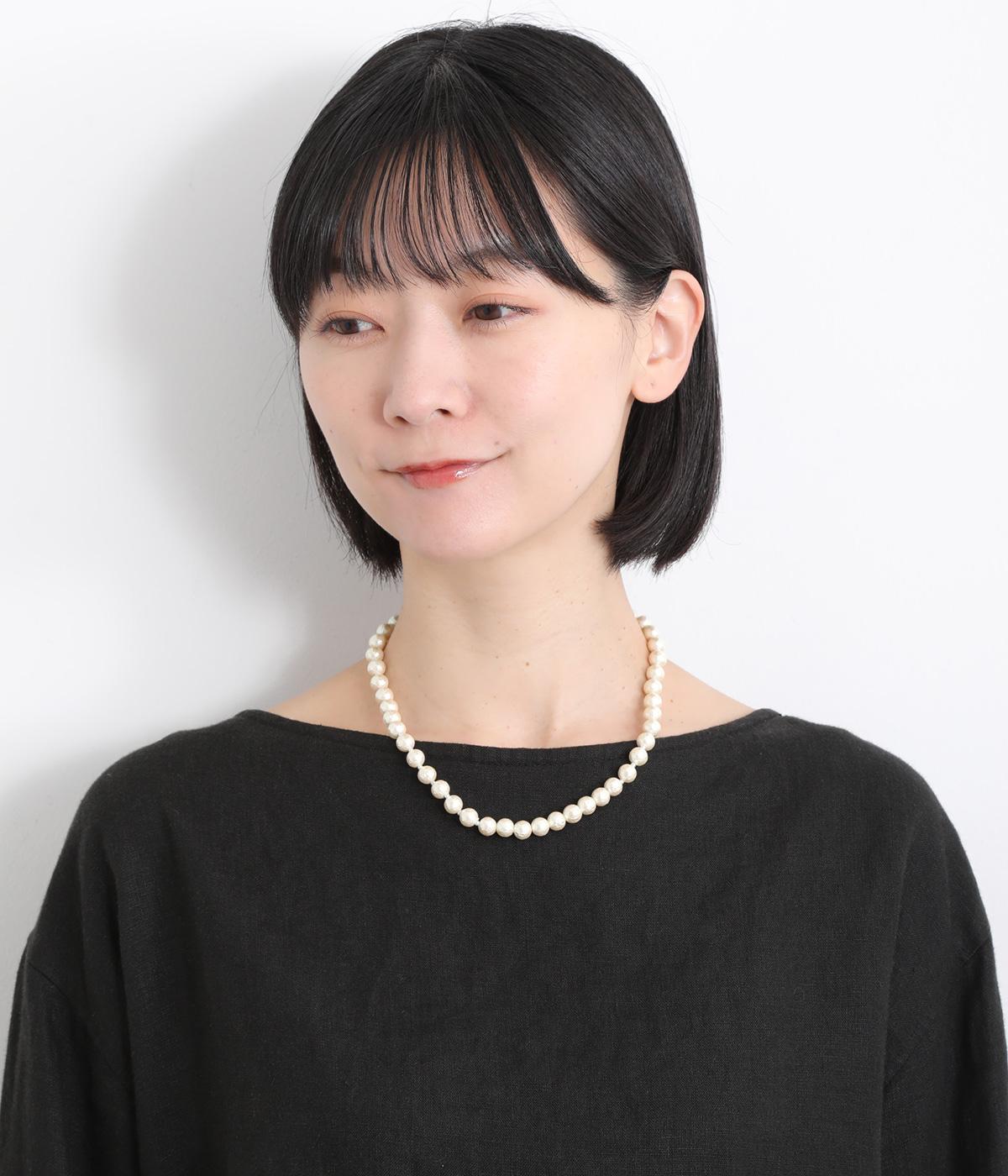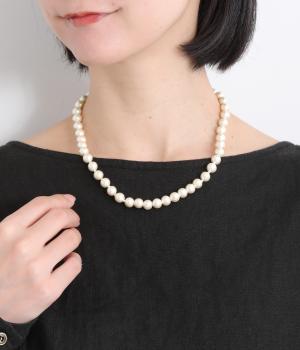 普段使いからフォーマルなシーンまで幅広く対応できるパールネックレスです。顔まわりに品のよい華やかさを添えて、着こなしをワンランクアップさせます。