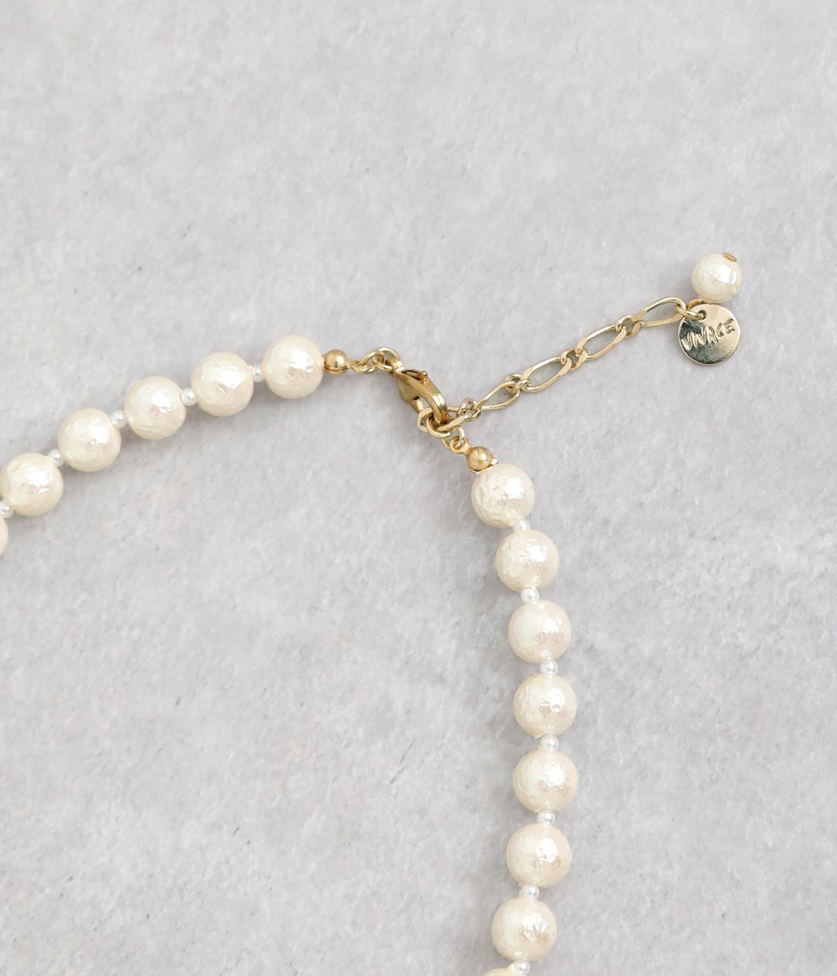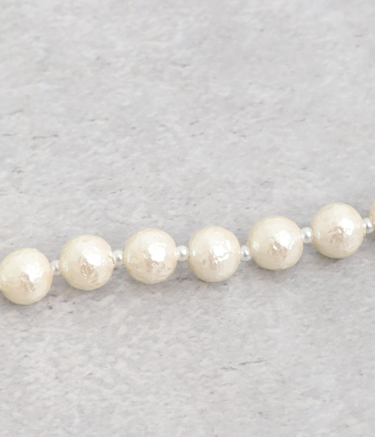 表面にしわを寄せたような風合いが特徴のシュリンクパールを使用しました。通常のパールとは異なる雰囲気で、非常に軽いのも魅力です。
