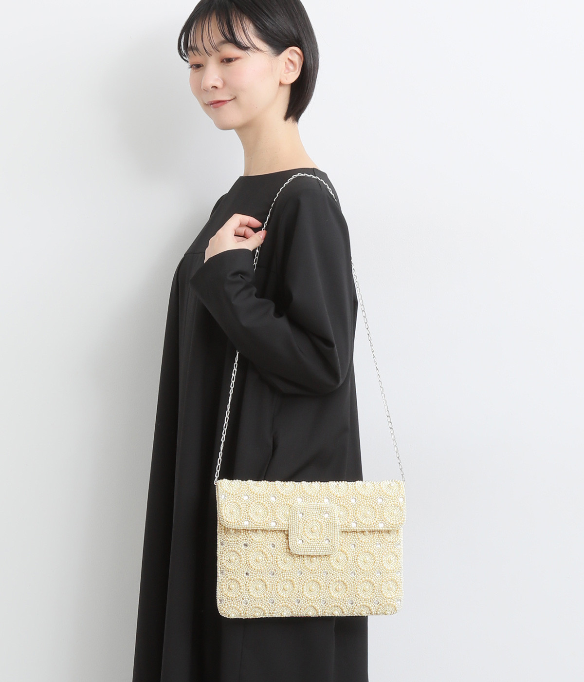 チェーンストラップは取り外してクラッチ風に持っても素敵