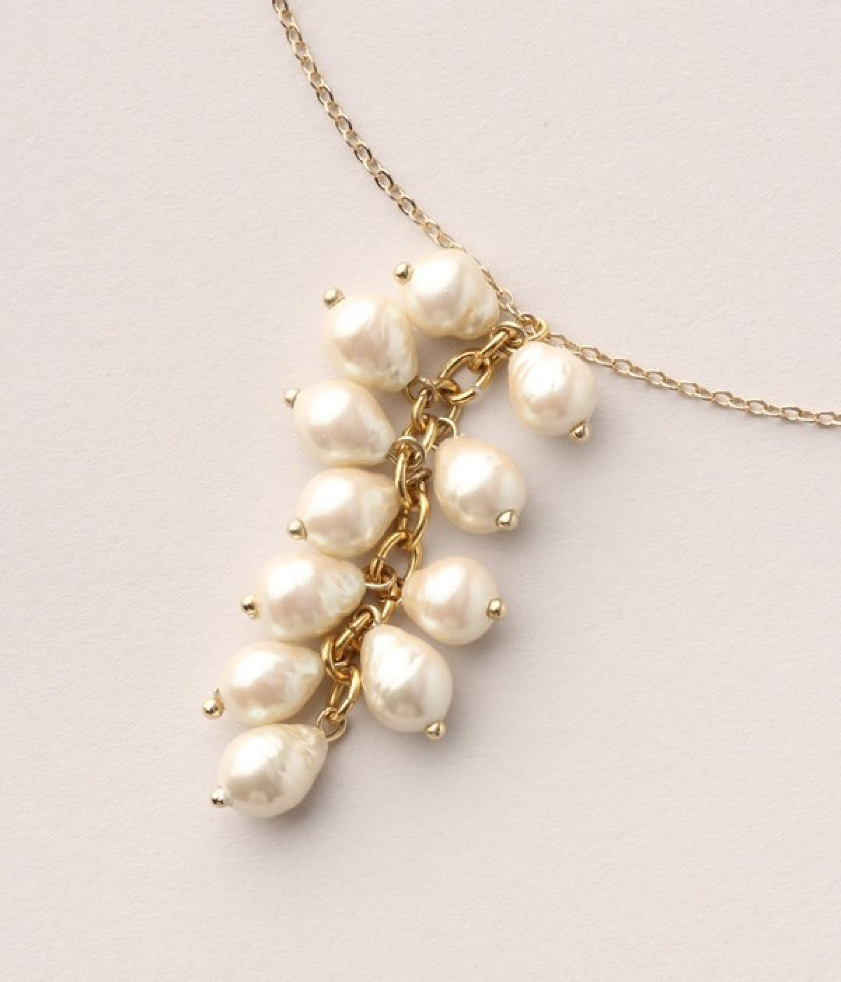 グロッシーな光沢が美しい淡水パールのネックレスです。鈴なりのパールがネックラインを上品に演出。動くたびに揺れるモチーフが大人シックなニュアンスをプラスしてくれます。小振りなサイズ&長めのチェーンなのでデイリーで使いやすく、つけはずしも快適。シンプルなニットやワンピースにプラスすることでフェミニンな雰囲気に仕上がるアクセサリーです。