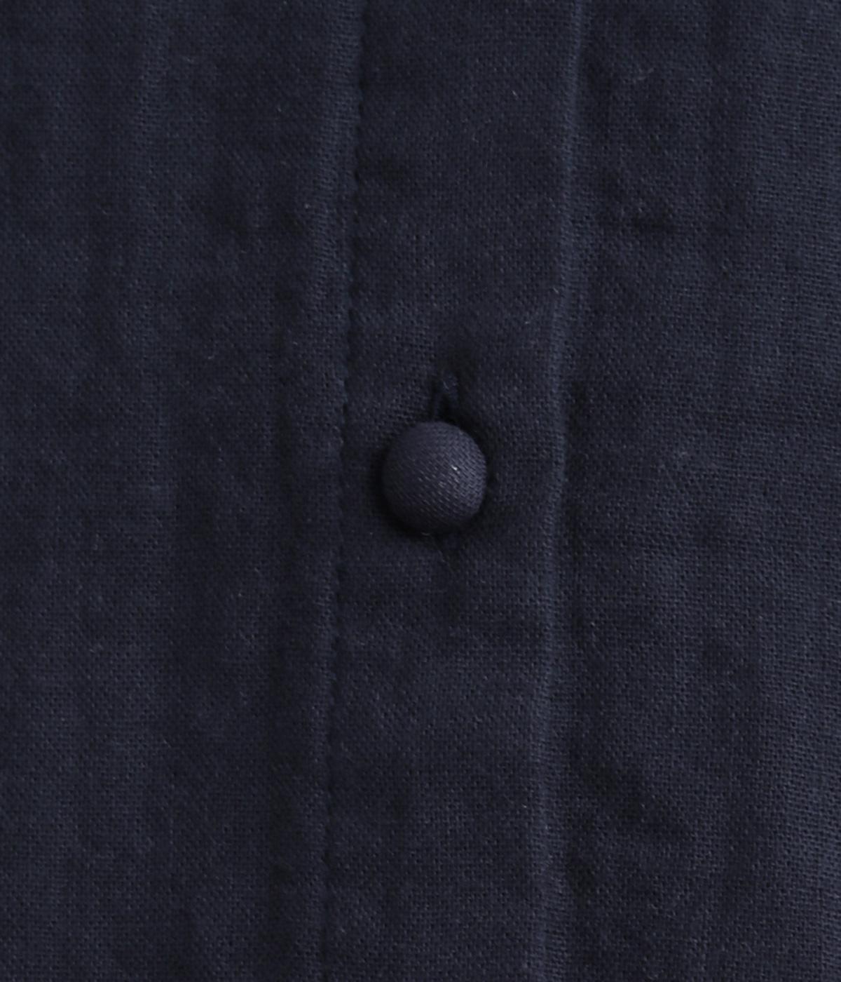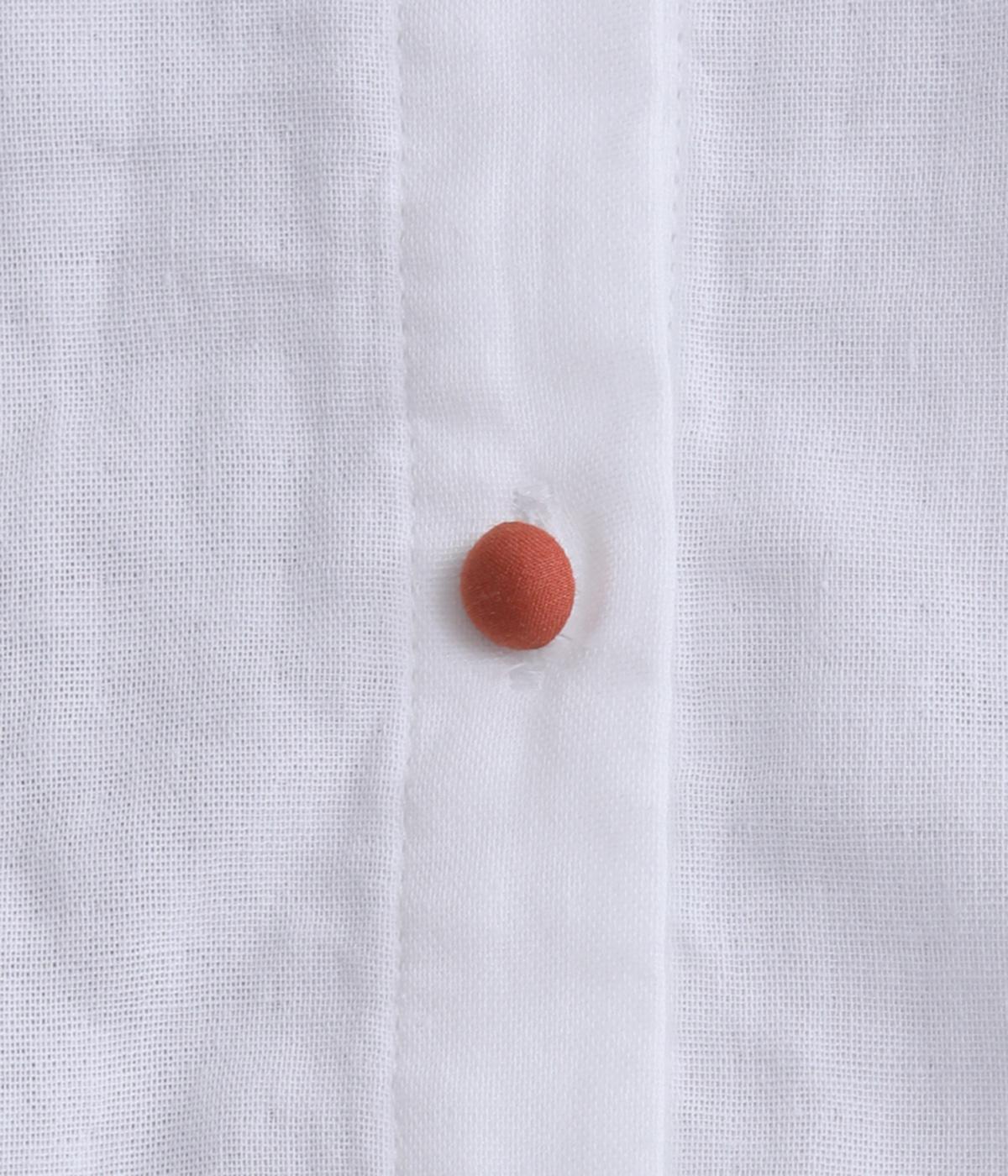 ポイントになるのは、襟とカフスのギンガムチェック柄。ころんとしたくるみボタンにも同じ生地を使用し、細部までこだわった一枚です。