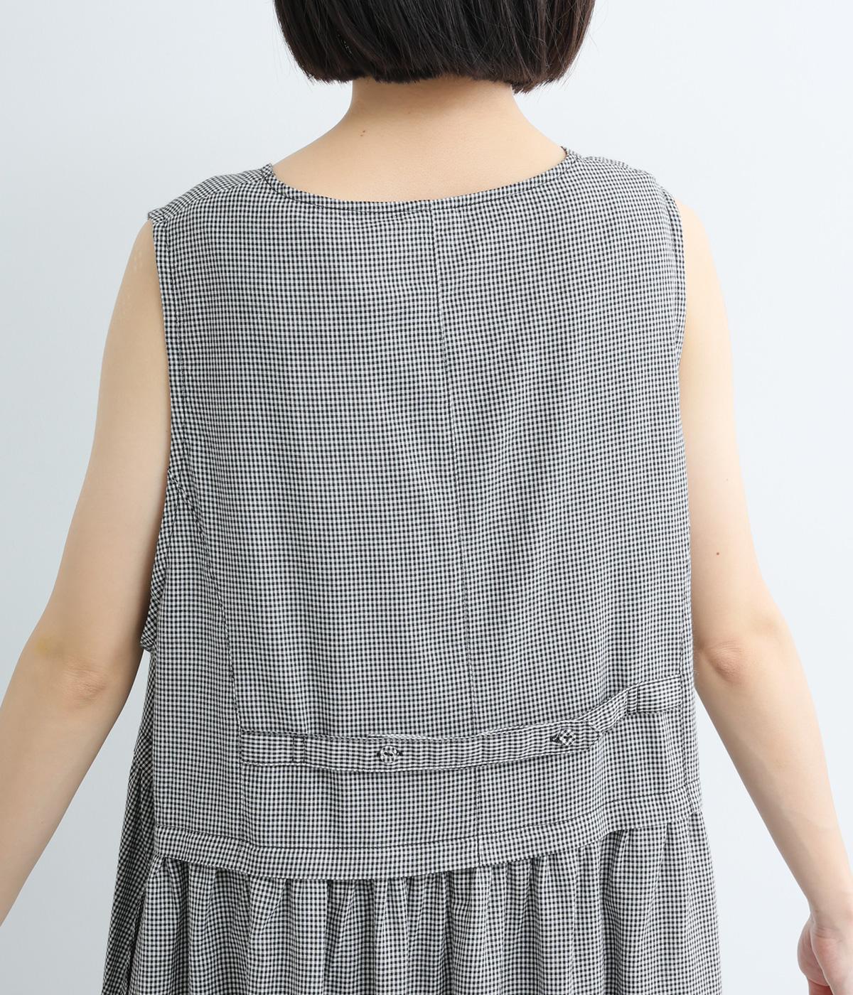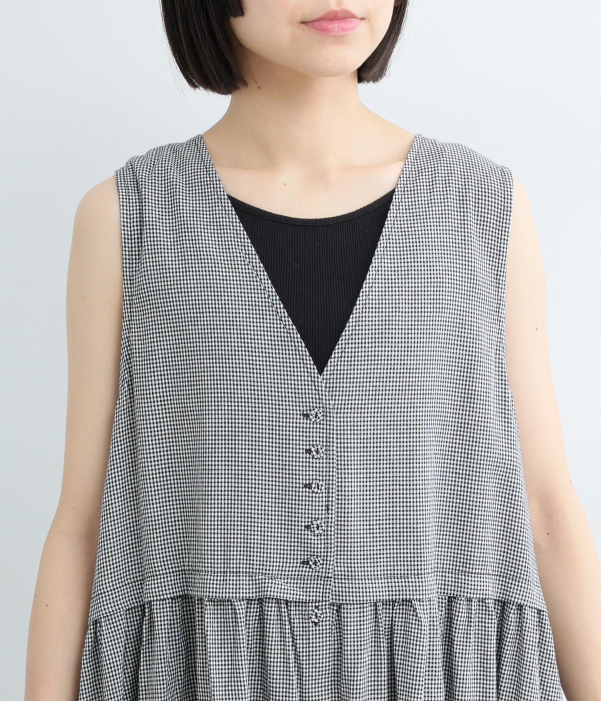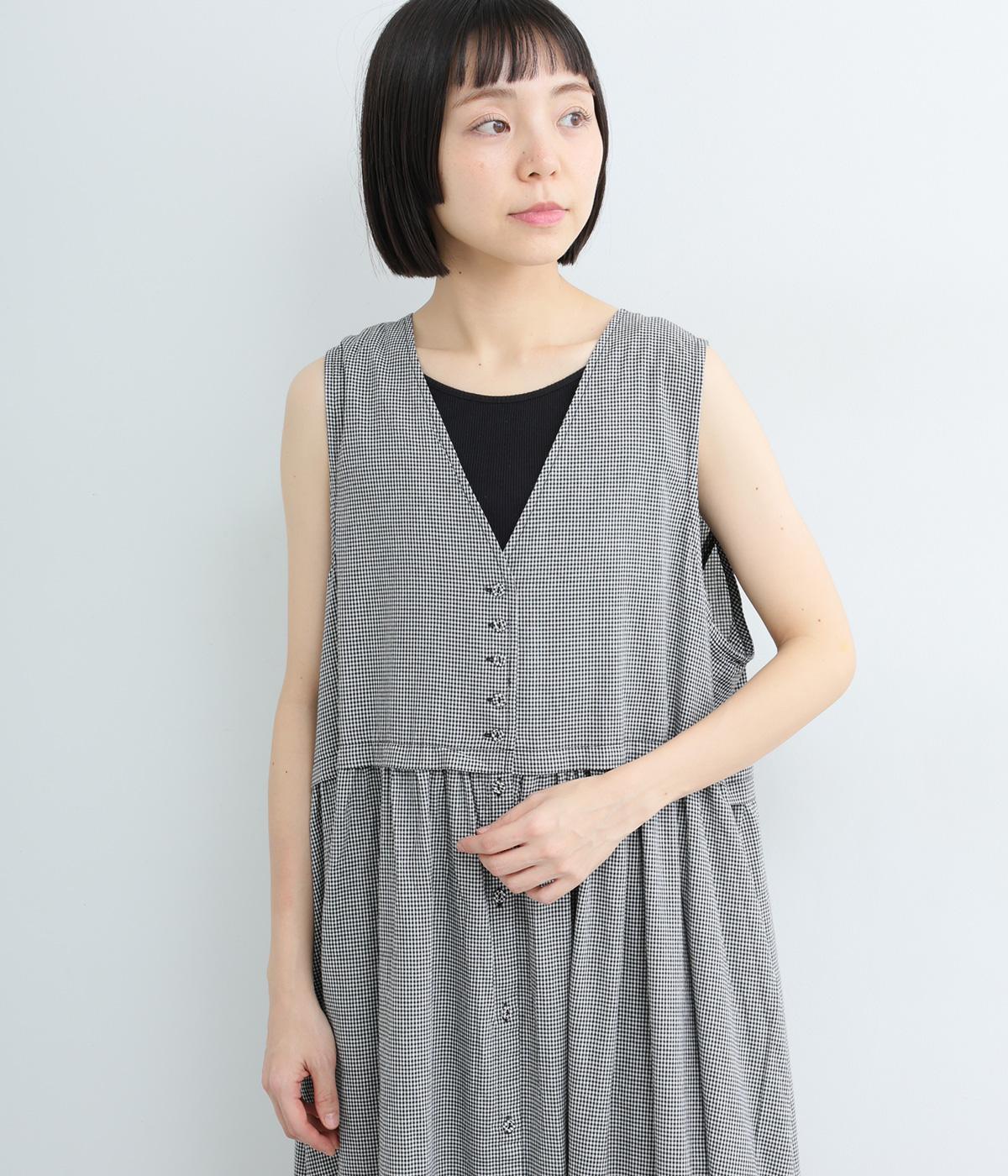 ギンガムチェックベストドッキングワンピース(ブラック-F)