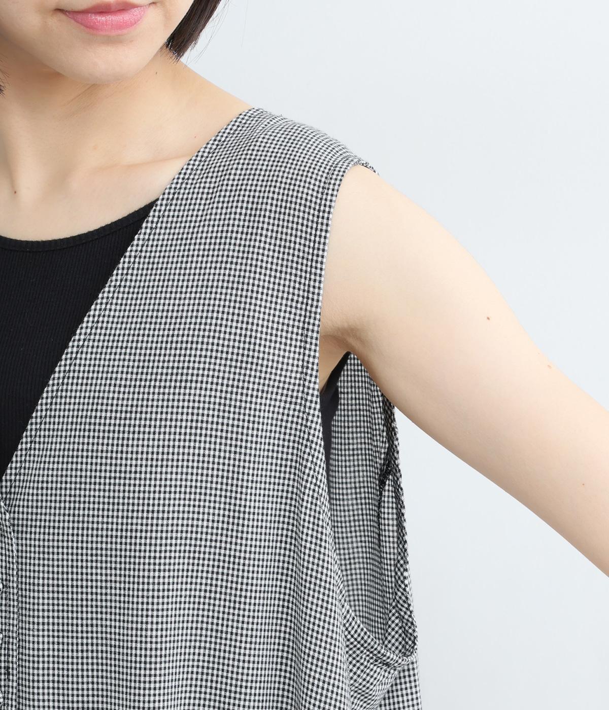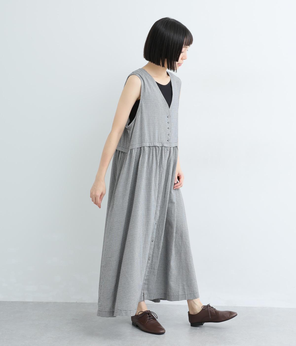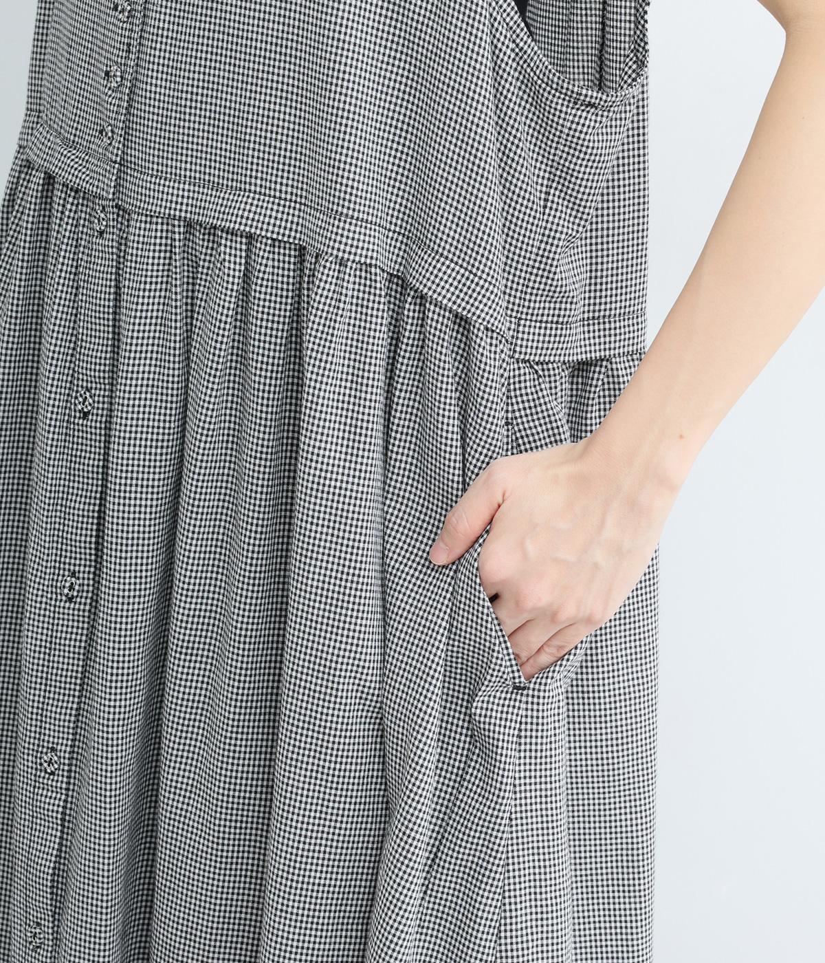ギンガムチェックベストドッキングワンピース(ブラック-F)