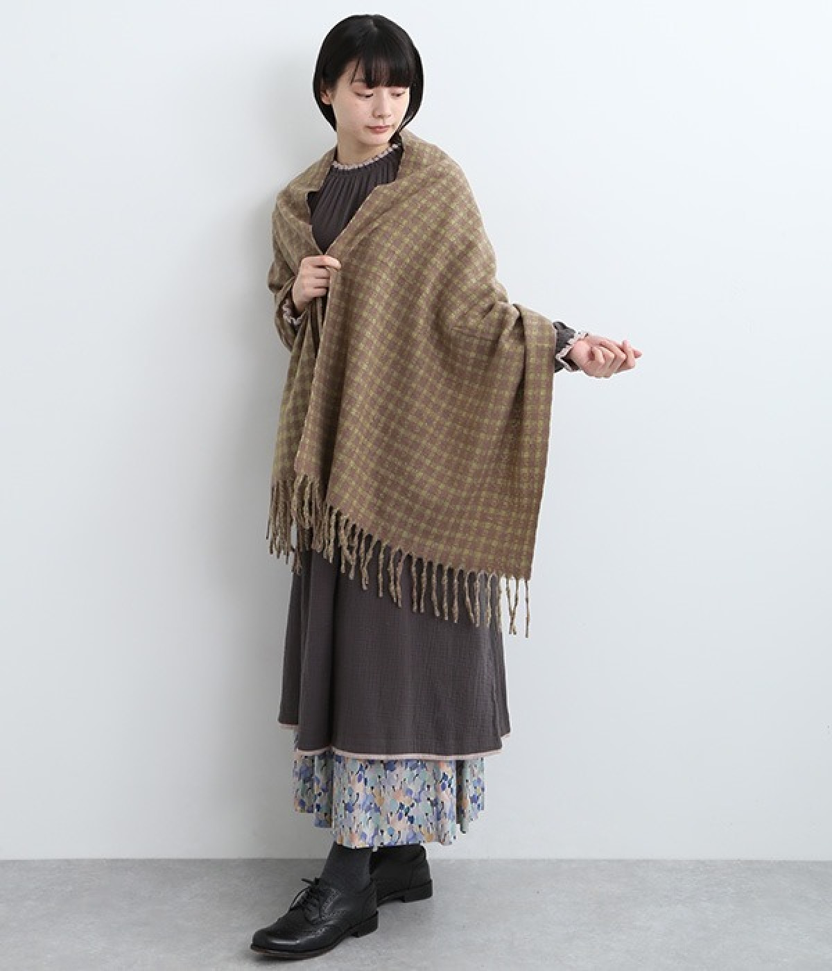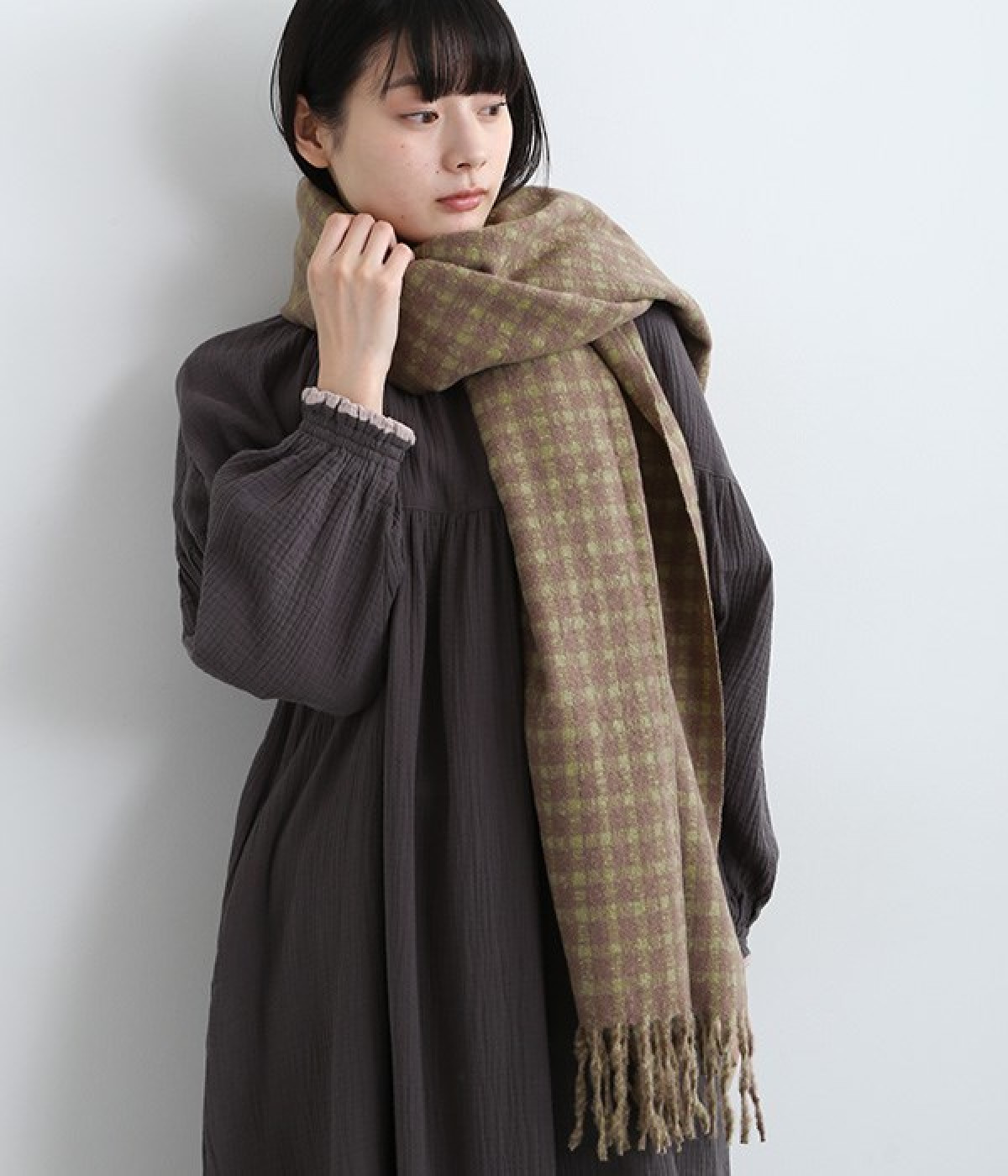 触り心地がやわらかな大判ストールです。ポリエステル素材を使用しているので、ご自宅での手洗いもできる取り扱いやすい一枚。くるっと巻いてボリュームをだしたり、肩にかけたりと気分によってアレンジが可能です。ナチュラルな雰囲気がただよう、ほどよい大きさのギンガムチェック柄がいつものコーディネートを彩ります。