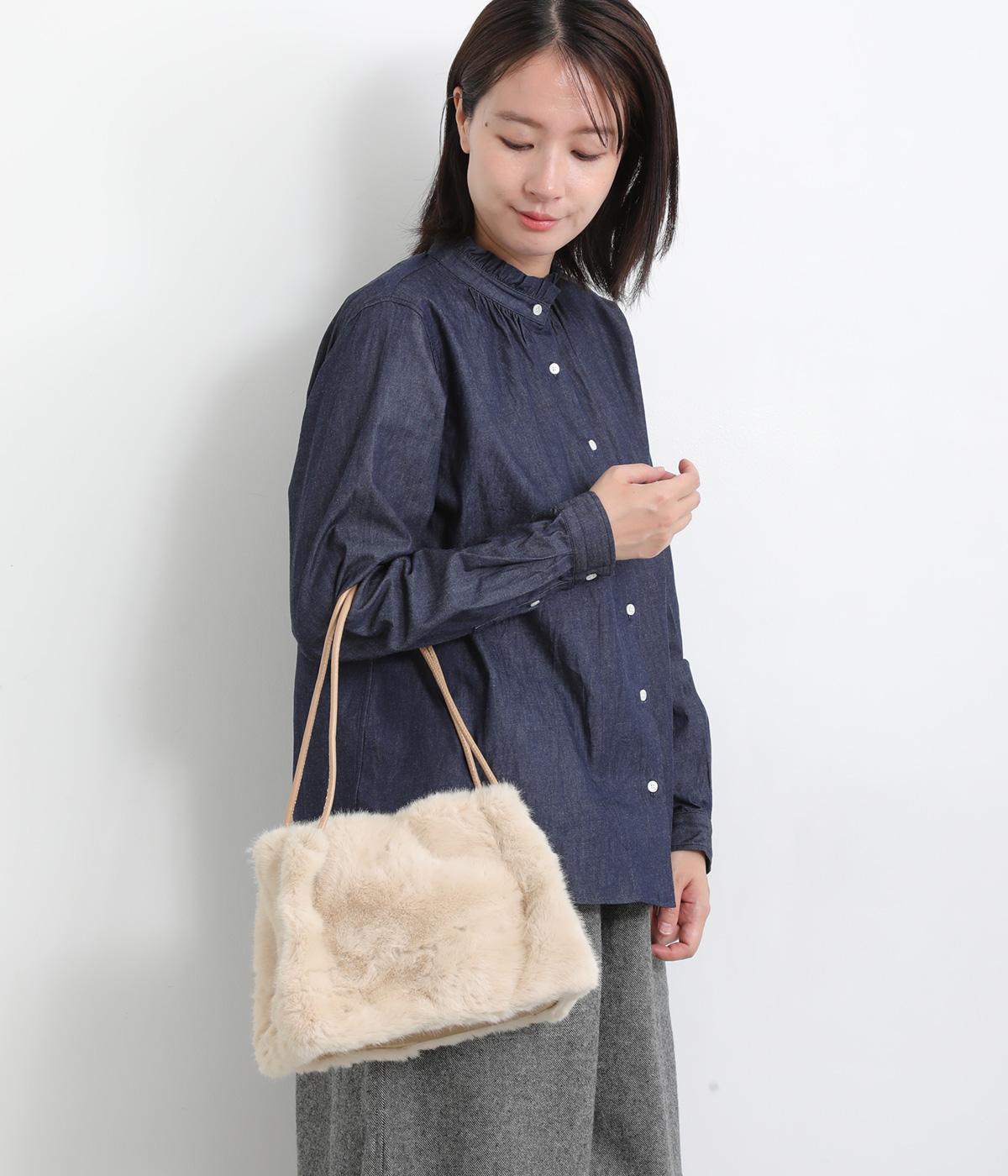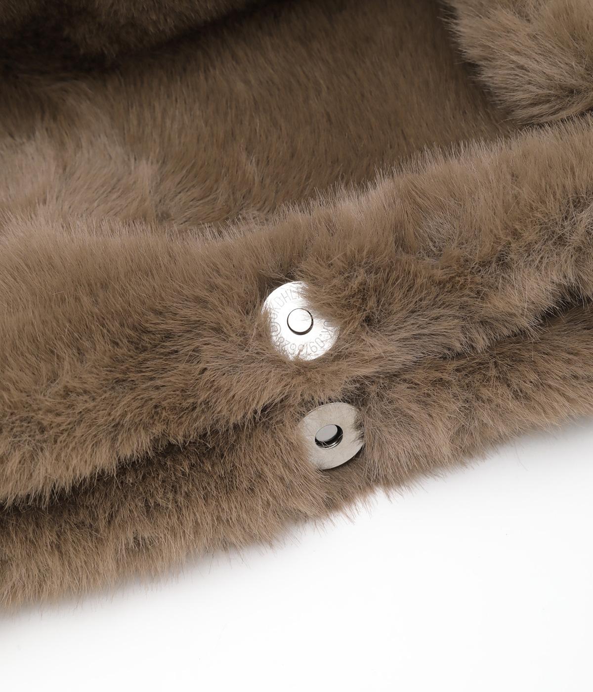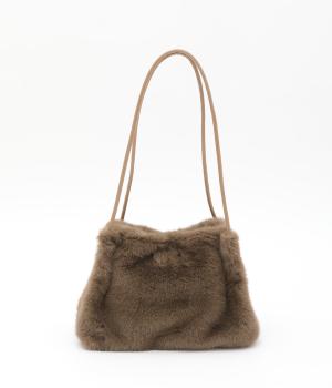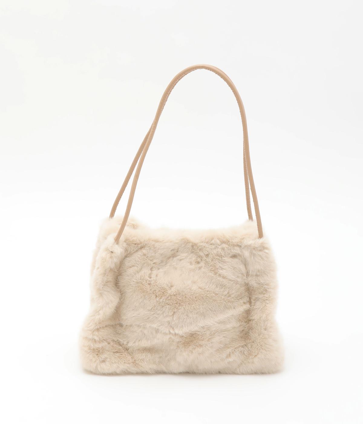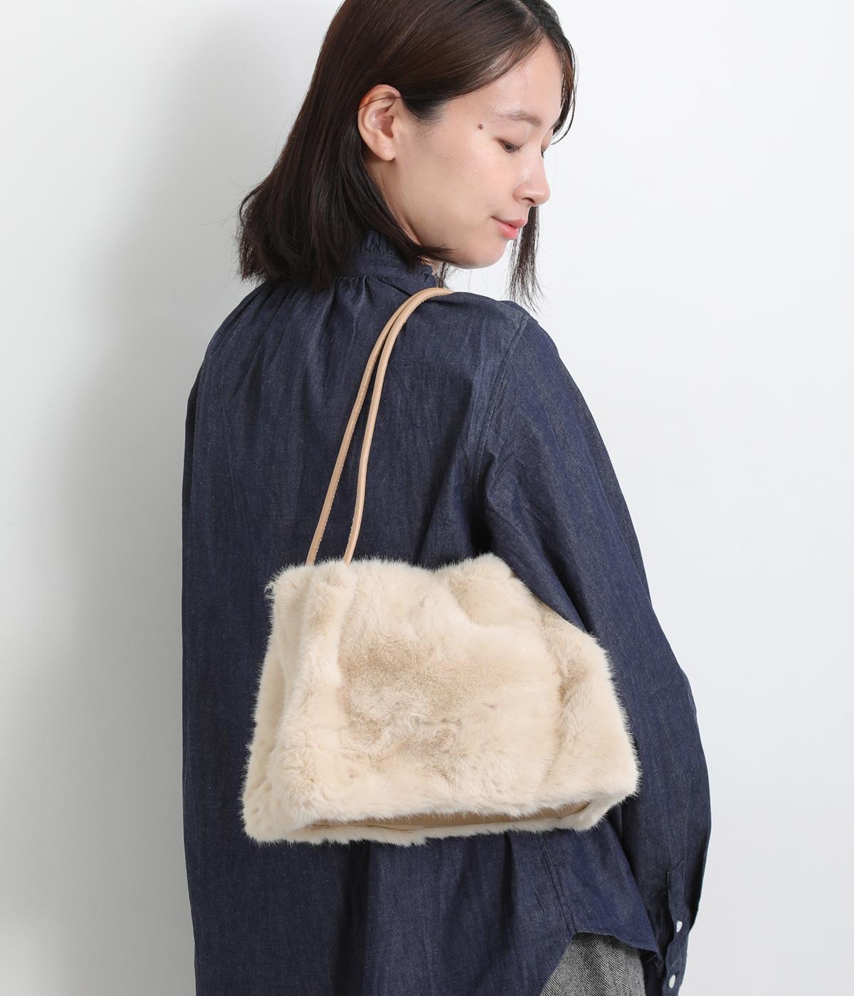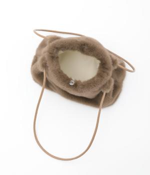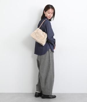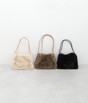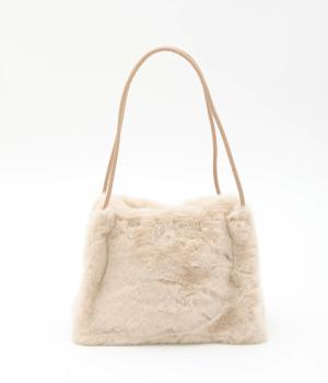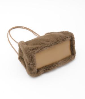 あえてカジュアルスタイルに取り入れたり、スタイリングのポイントにもなるファーバッグ。細チューブのハンドルも大人見えのポイントで、自立するスクエアのマチつきで実用性も◎。折り込むように留めるマグネットボタンもこだわり。