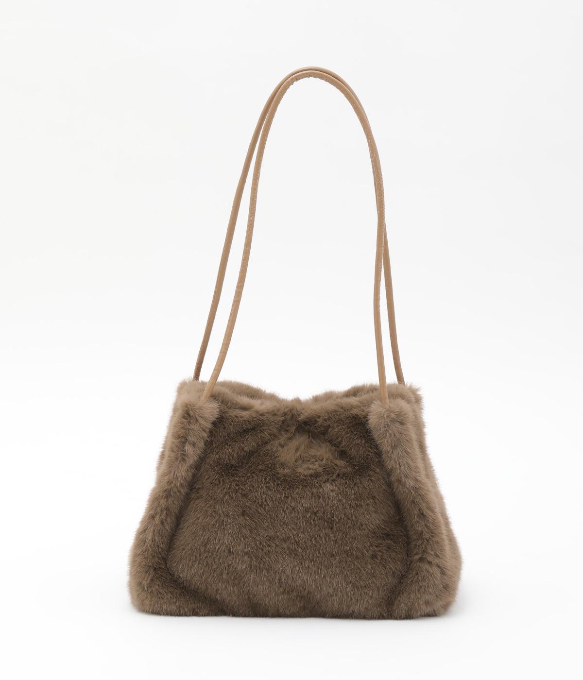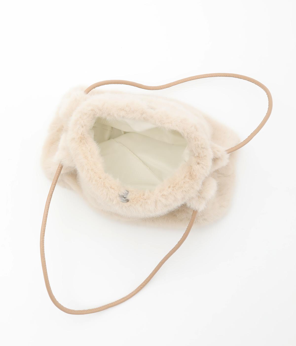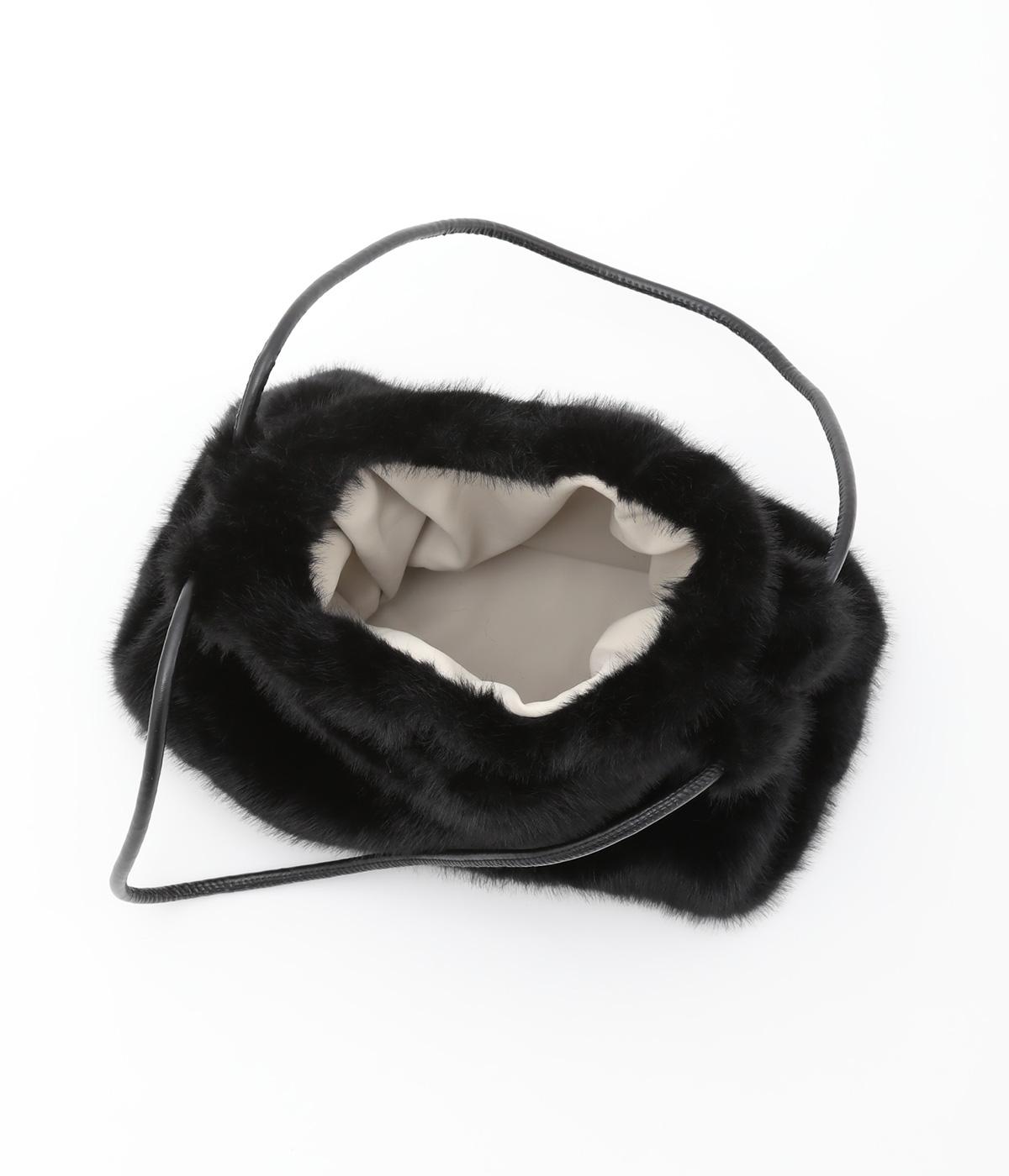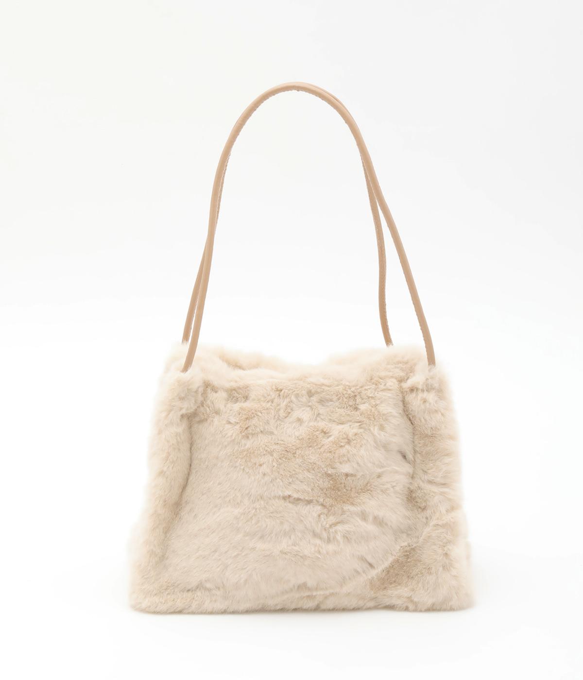 あえてカジュアルスタイルに取り入れたり、スタイリングのポイントにもなるファーバッグ。細チューブのハンドルも大人見えのポイントで、自立するスクエアのマチつきで実用性も◎。折り込むように留めるマグネットボタンもこだわり。