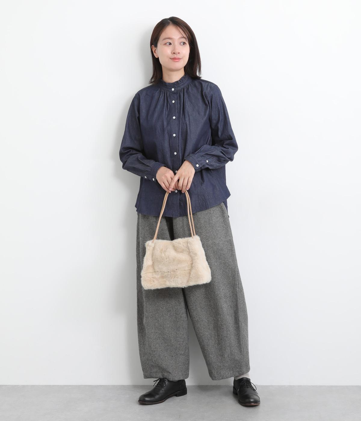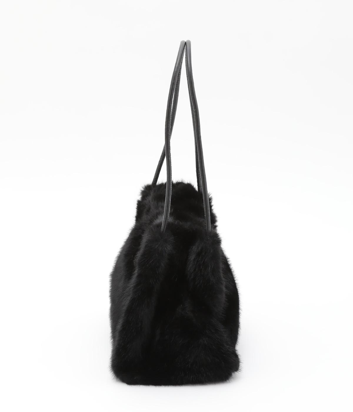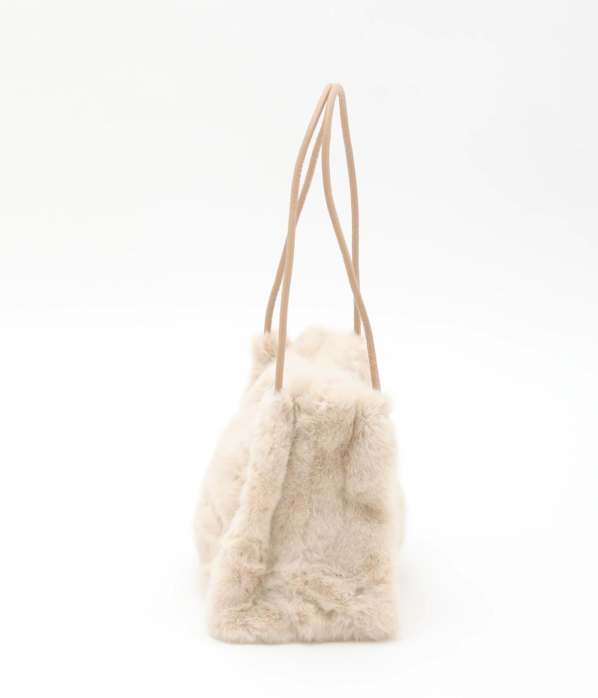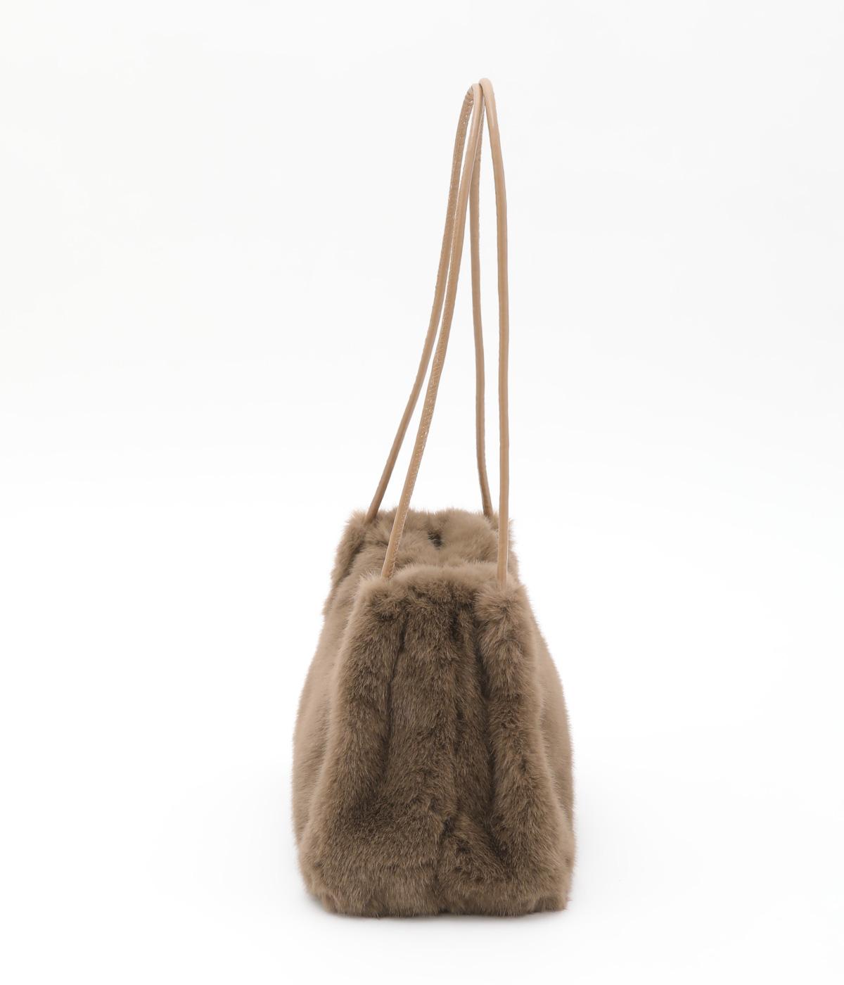 あえてカジュアルスタイルに取り入れたり、スタイリングのポイントにもなるファーバッグ。細チューブのハンドルも大人見えのポイントで、自立するスクエアのマチつきで実用性も◎。折り込むように留めるマグネットボタンもこだわり。