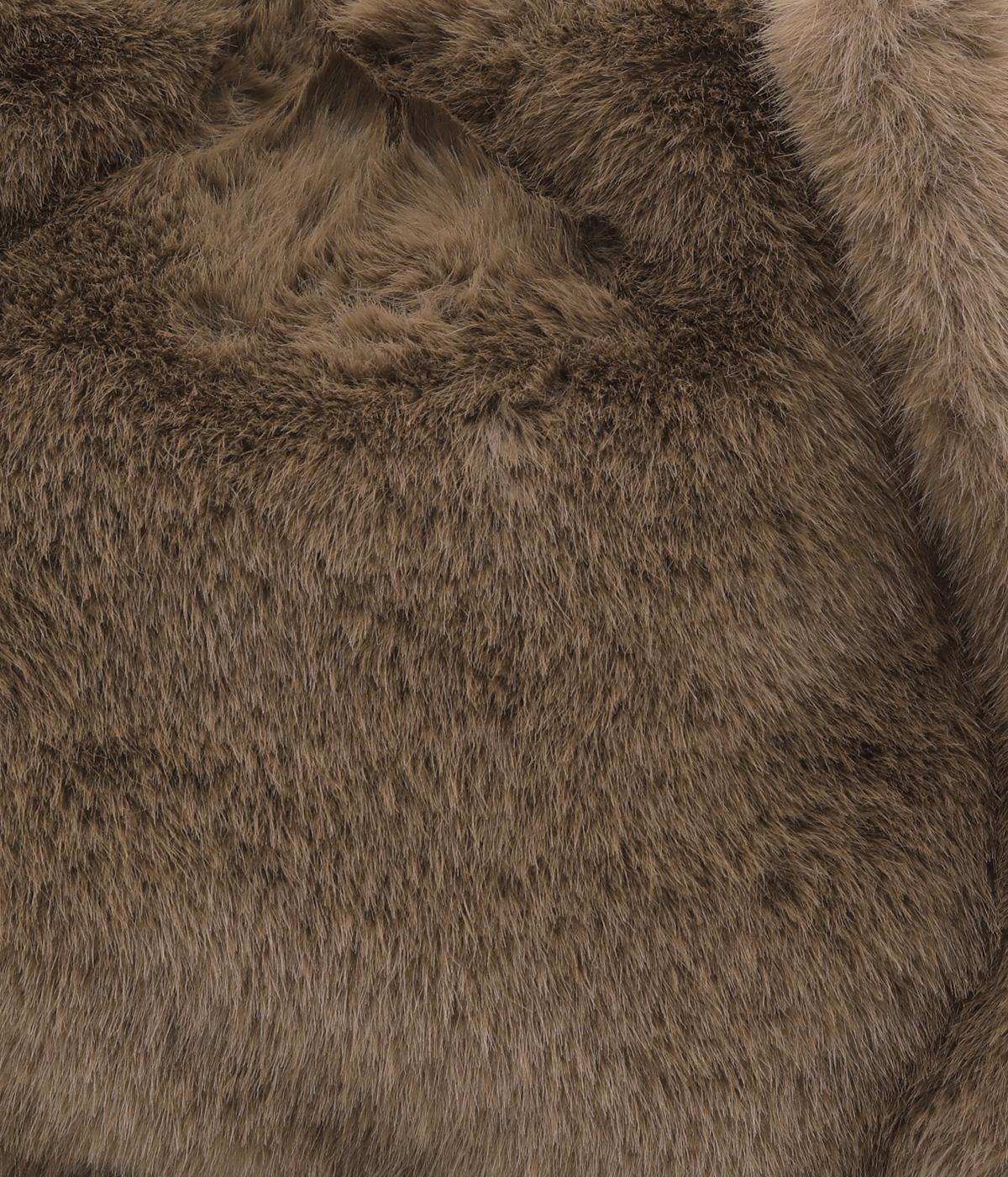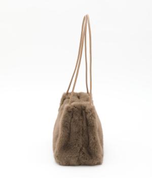 ふわっふわの長毛エコファーをたっぷり使用しました。品のいい光沢でリッチな印象を醸し、レザー風の裏地をつけたしっかりとした作りで高見え効果も。