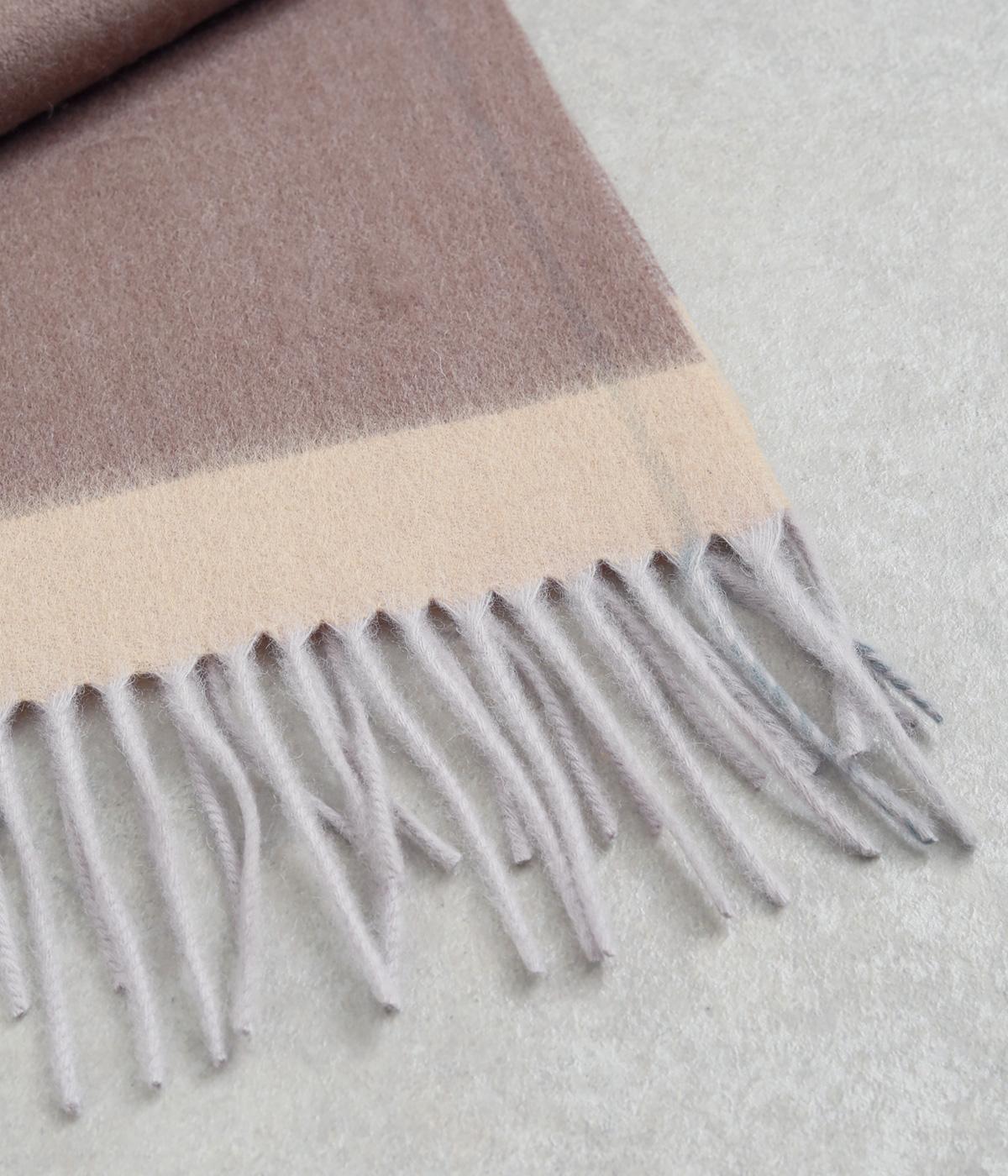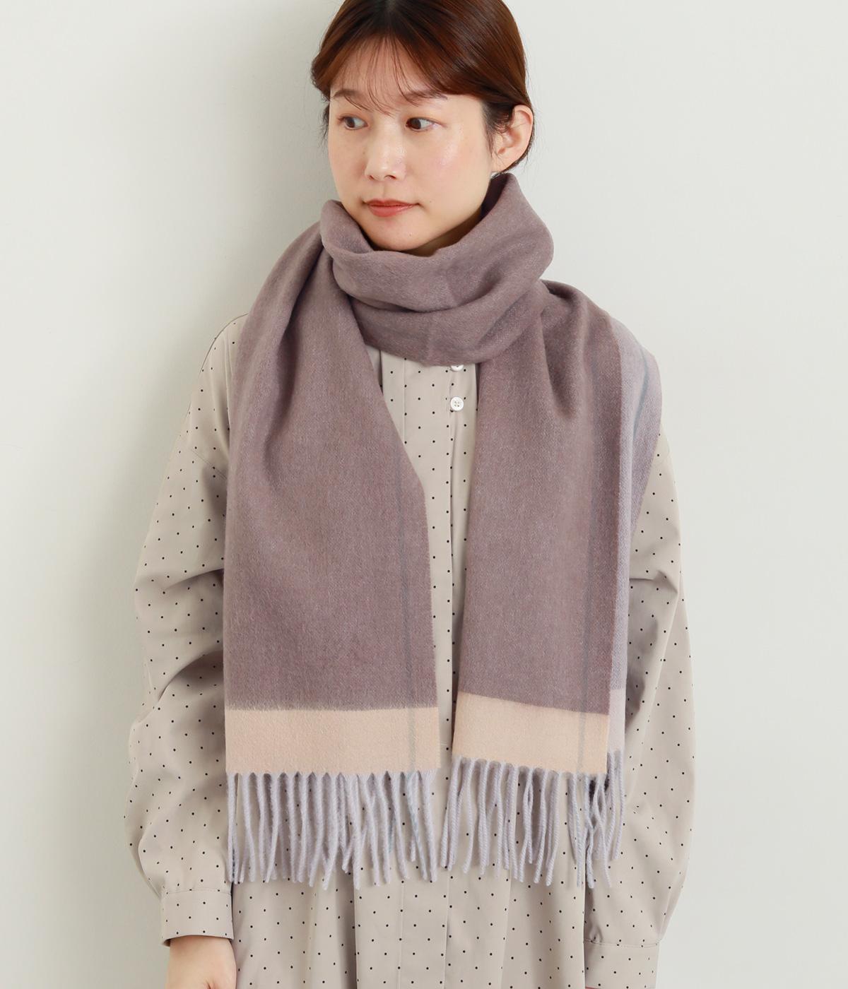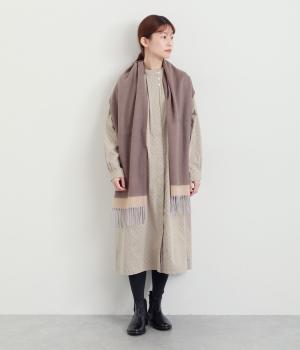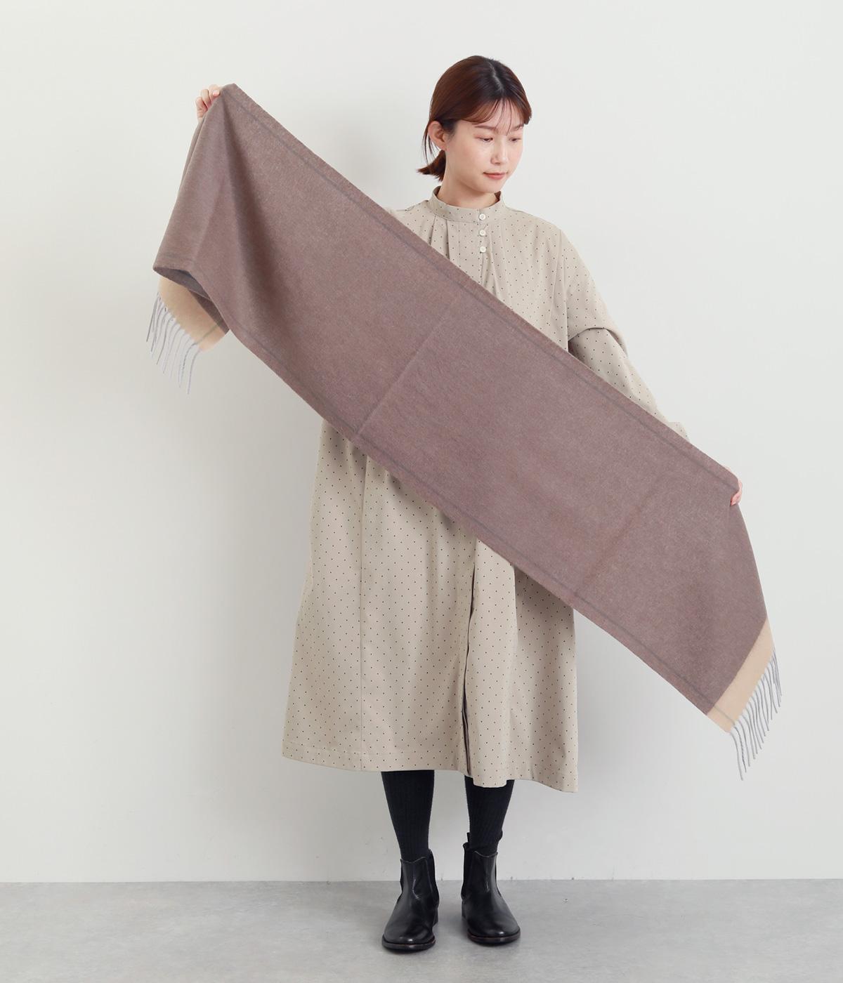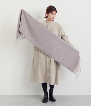 トーンの異なる色を表裏と端に配した、上品なバイカラーが魅力です。巻いたときに絶妙なニュアンスが生まれ、シンプルな装いもさりげなく華やぎます。ひかえめなフリンジが軽やかなアクセントに。ほどよく薄手の生地で重たくなりすぎず、すっきりとした印象をたのしめます。