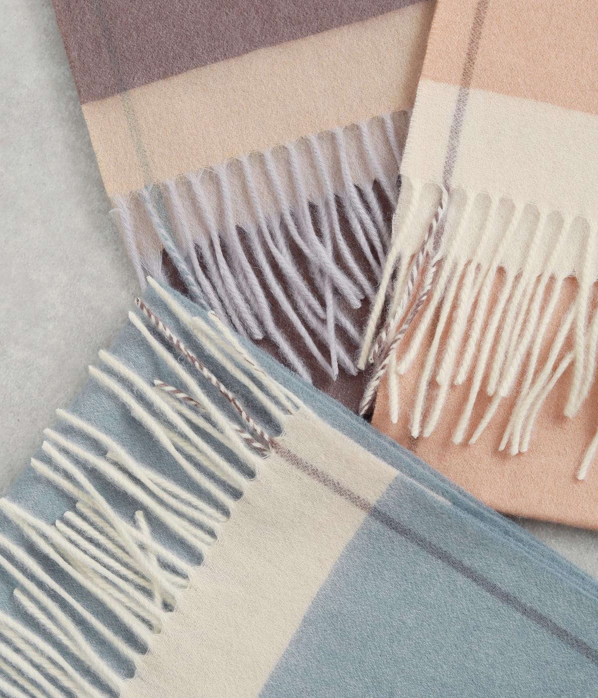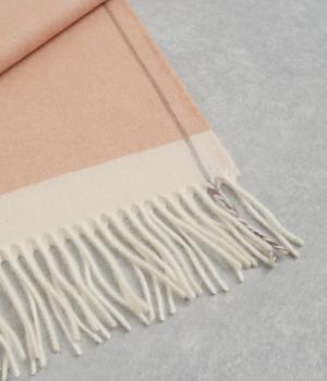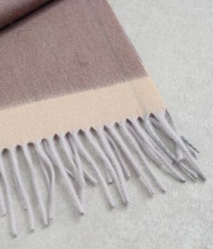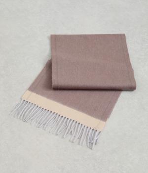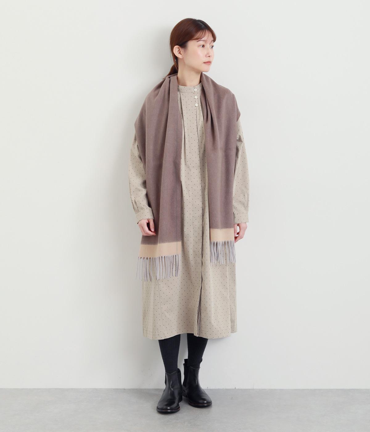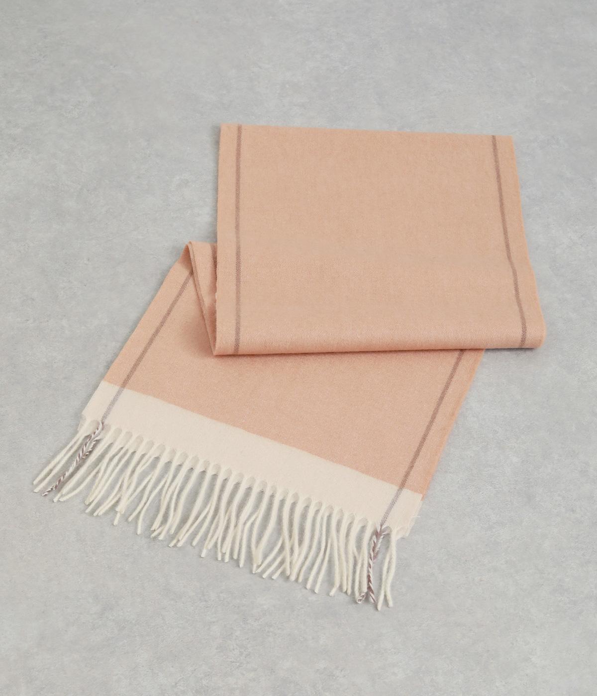 トーンの異なる色を表裏と端に配した、上品なバイカラーが魅力です。巻いたときに絶妙なニュアンスが生まれ、シンプルな装いもさりげなく華やぎます。ひかえめなフリンジが軽やかなアクセントに。ほどよく薄手の生地で重たくなりすぎず、すっきりとした印象をたのしめます。
