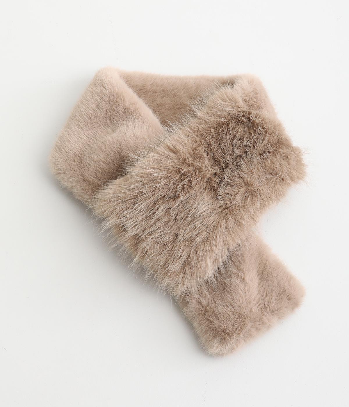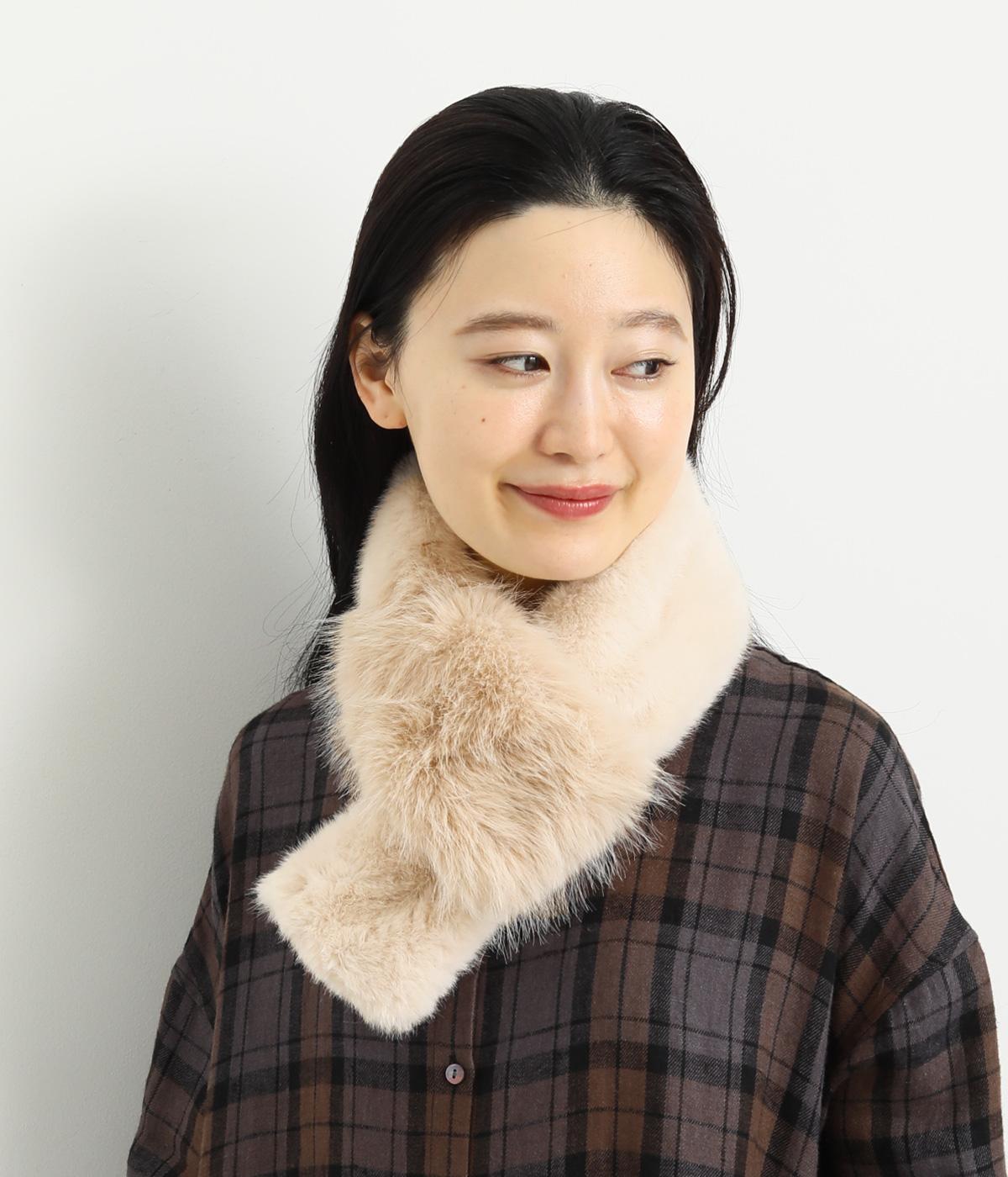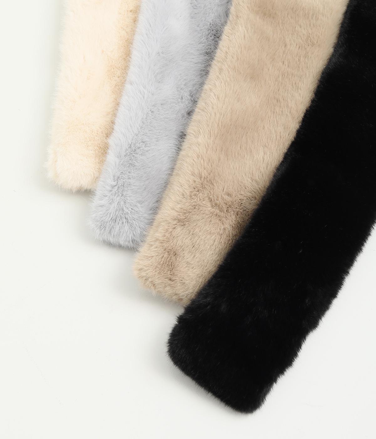 ホールに通すだけで装着可能なイージー仕様が◎なティペット。長毛と短毛をさり気なく切り替えて、ワンカラーながらデザイン性をプラス。顔まわりに適度なボリュームをもたせてくれます。