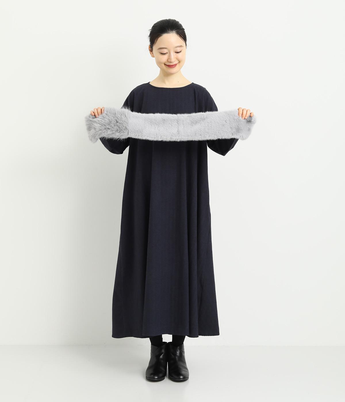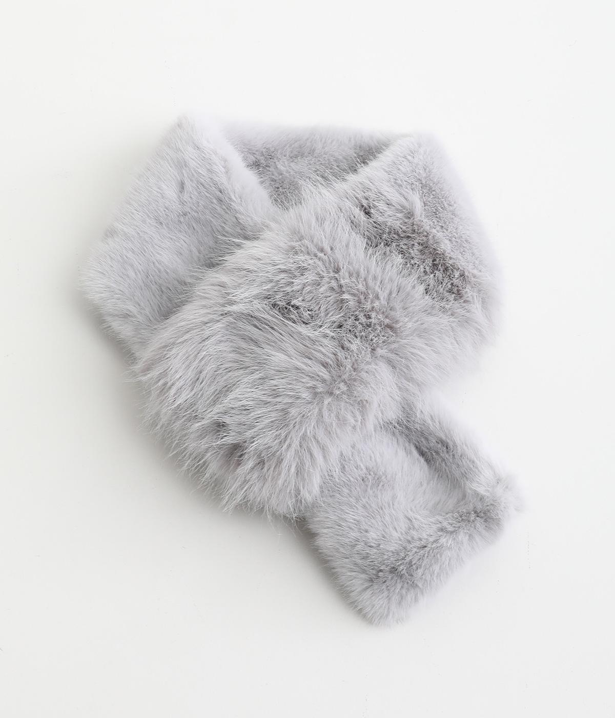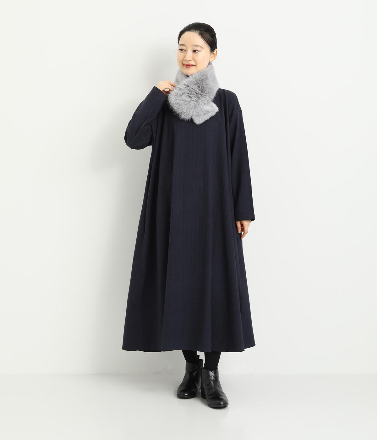 ホールに通すだけで装着可能なイージー仕様が◎なティペット。長毛と短毛をさり気なく切り替えて、ワンカラーながらデザイン性をプラス。顔まわりに適度なボリュームをもたせてくれます。