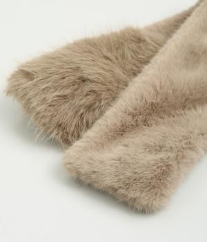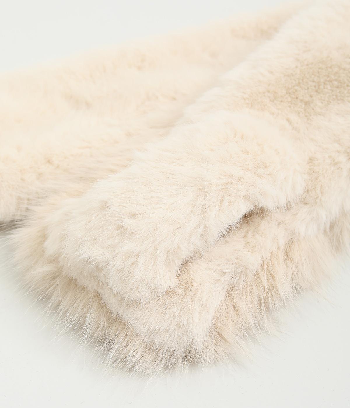 肌に触れる裏面まですべて、ふわっふわのエコファーを使用。表面感がリッチで、シンプルな装いに季節感をプラス。軽やかなポリエステル製でデイリー使いしやすい仕上がりです。