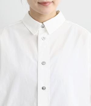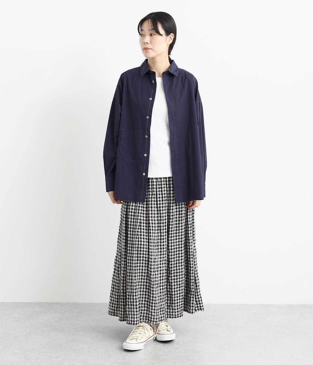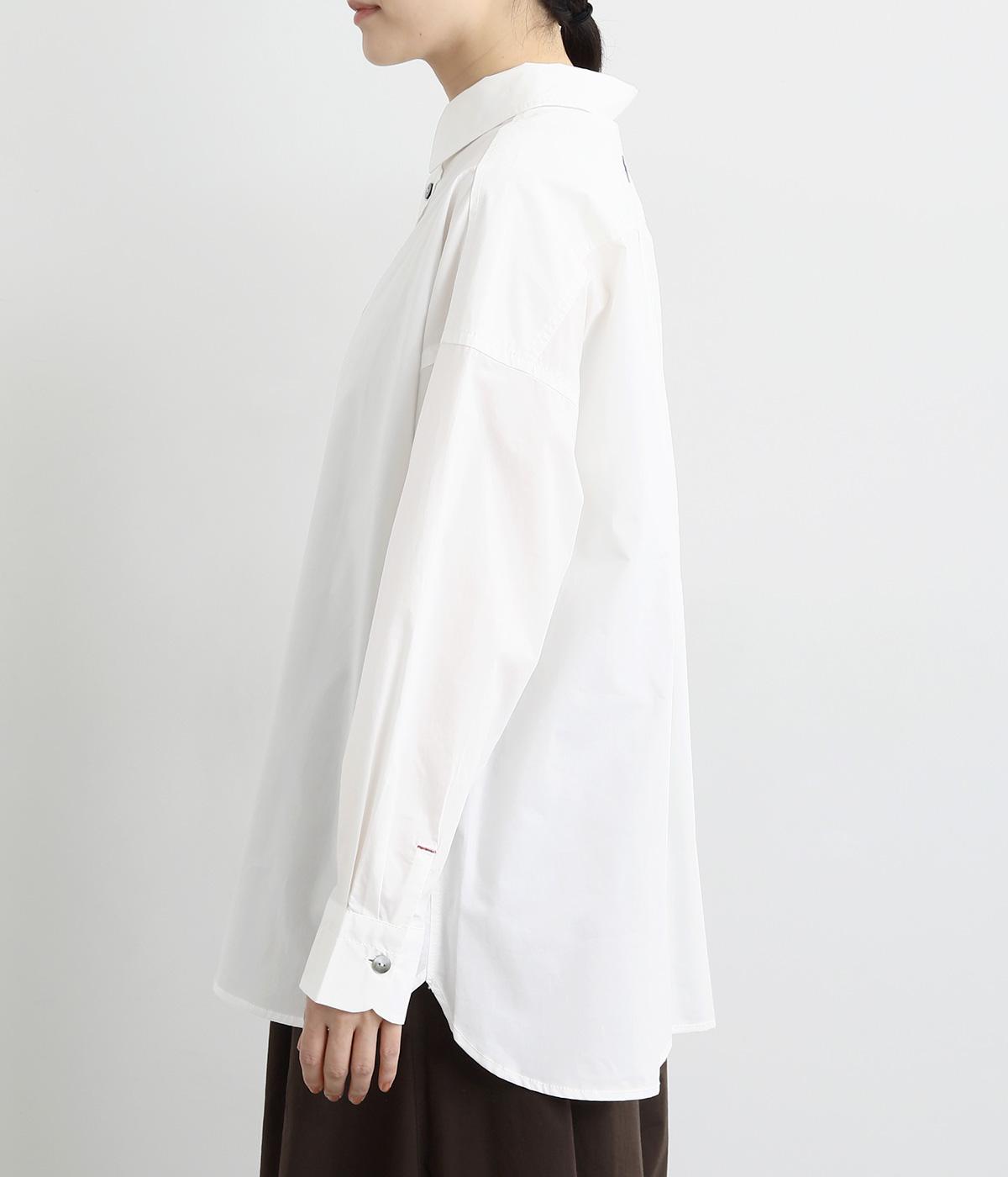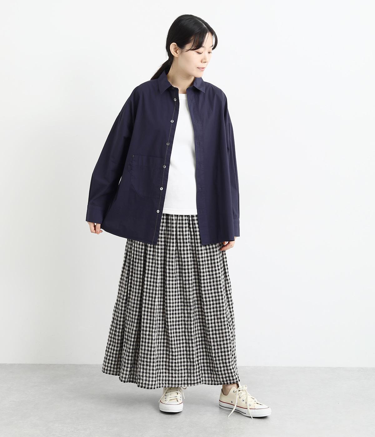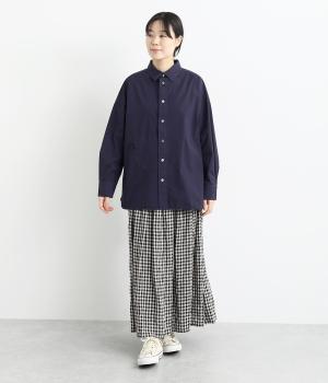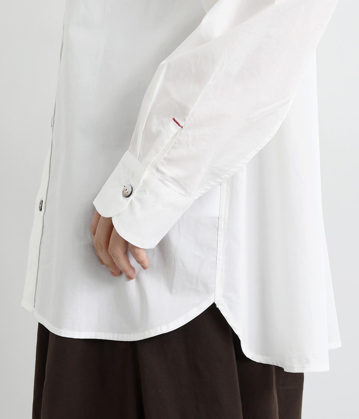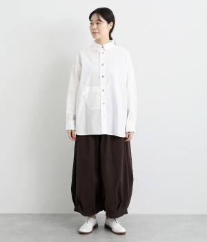 適度なハリのあるタイプライター生地。化学薬剤を3年以上使っていない畑で無農薬栽培された、地球環境にやさしいオーガニックコットンを使用しています。洗いざらしのような風合いを出すため、オフホワイト以外は縫製後に製品染めを施しました。