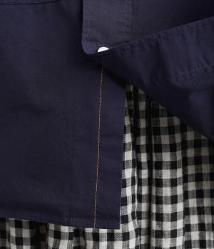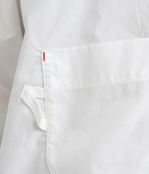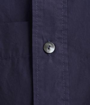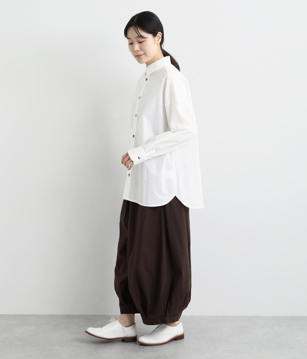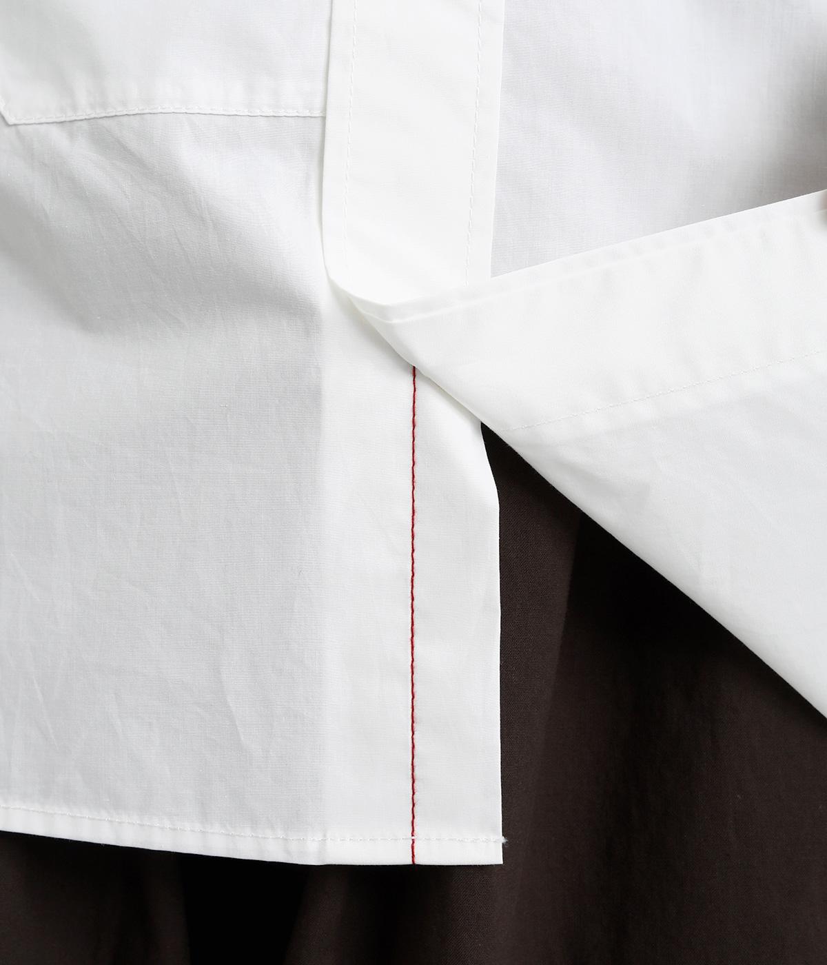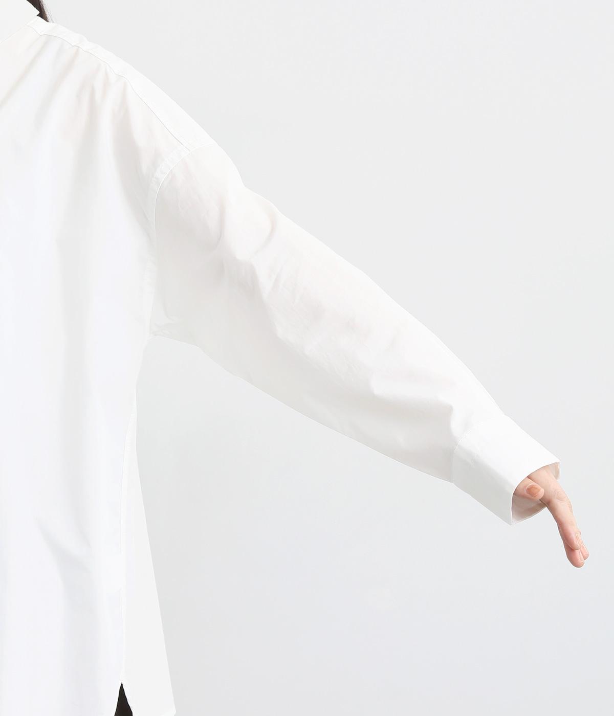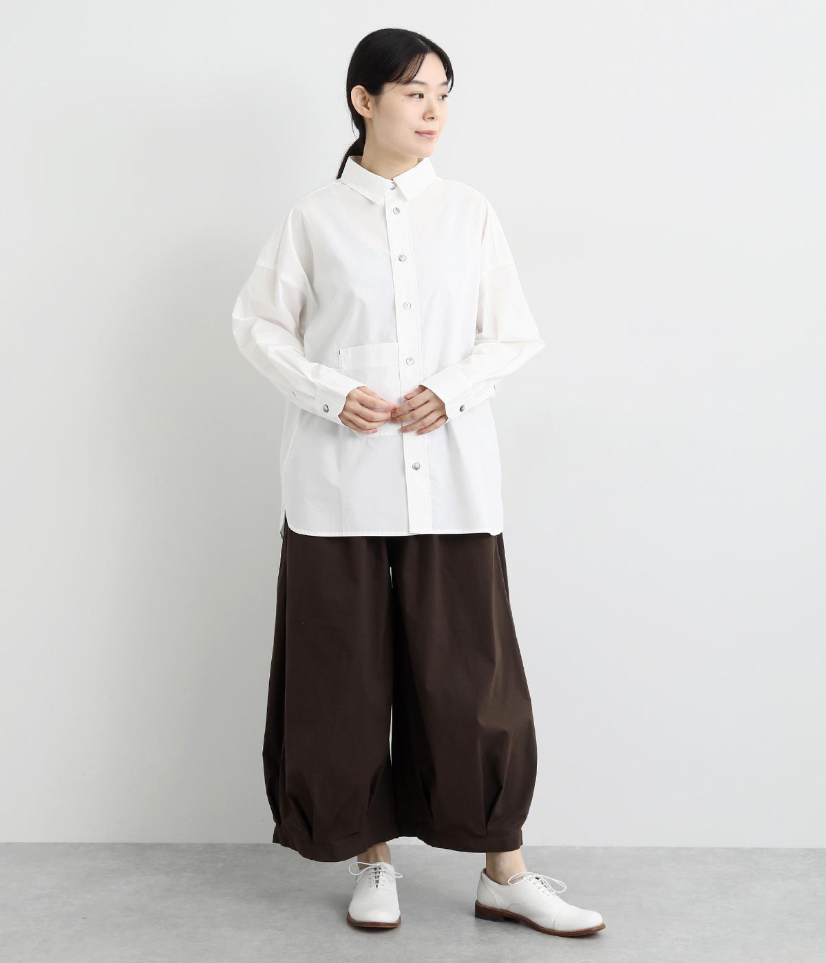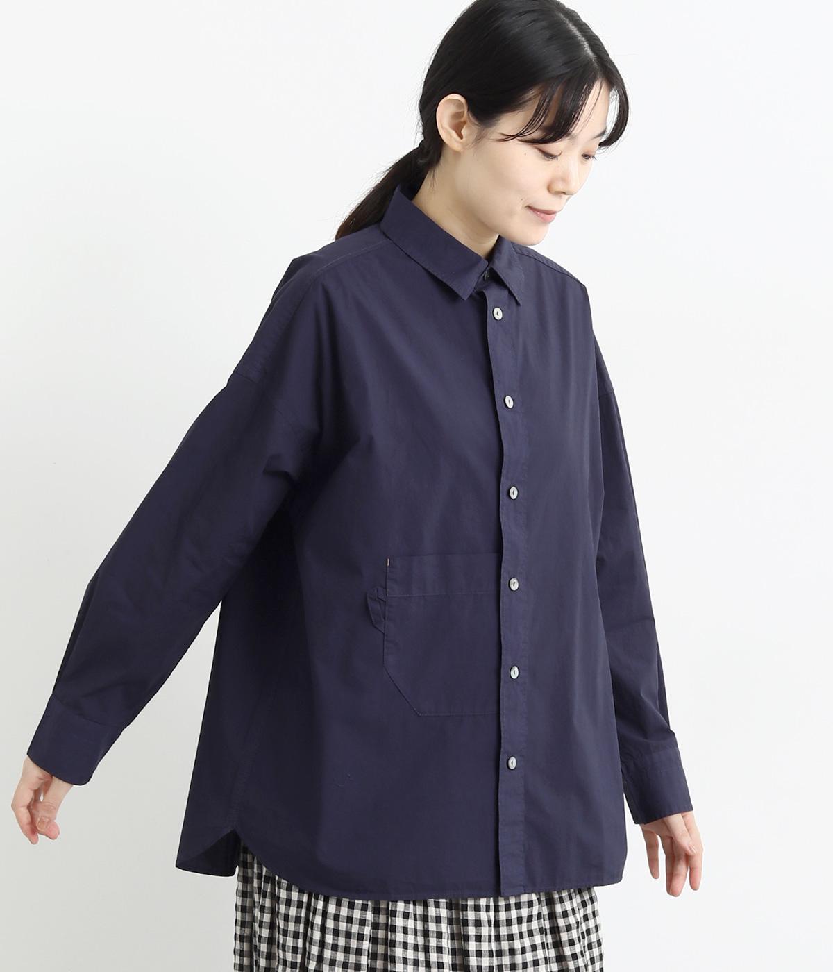 適度なハリのあるタイプライター生地。化学薬剤を3年以上使っていない畑で無農薬栽培された、地球環境にやさしいオーガニックコットンを使用しています。洗いざらしのような風合いを出すため、オフホワイト以外は縫製後に製品染めを施しました。