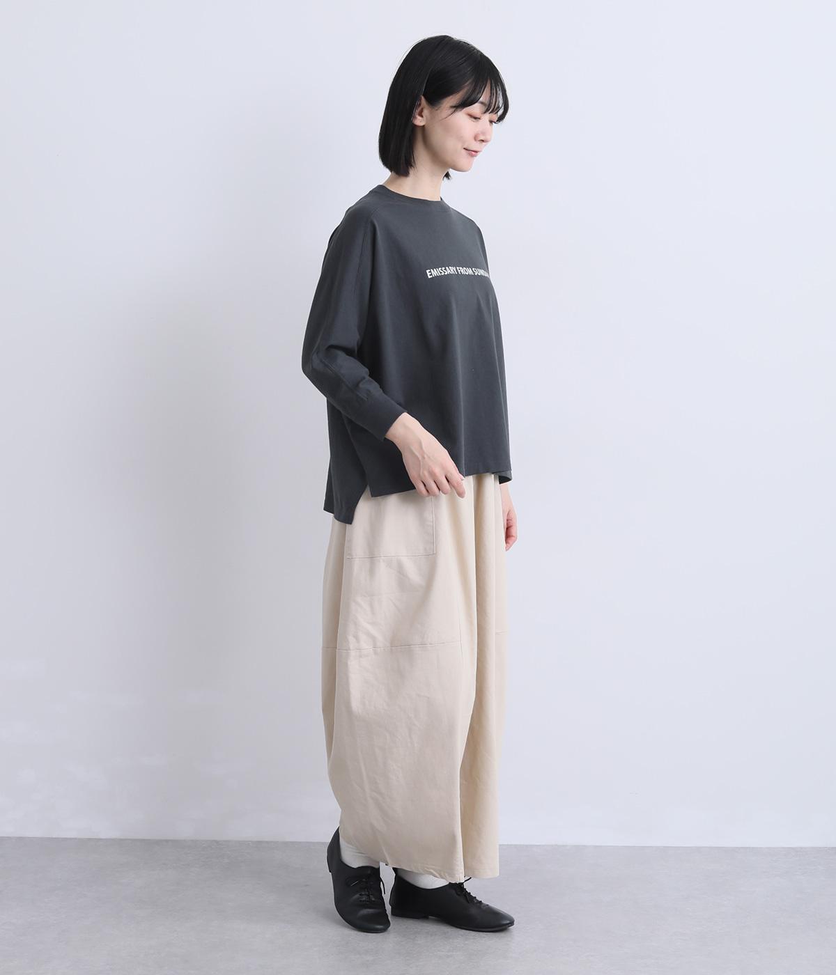 身幅をたっぷり取ったドルマンスリーブが特徴的なプルオーバー。控えめなロゴプリントが洗練された印象を与え、自然なドレープがこなれ感を運びます。サイドスリット入りでボトム合わせもすっきり見え。