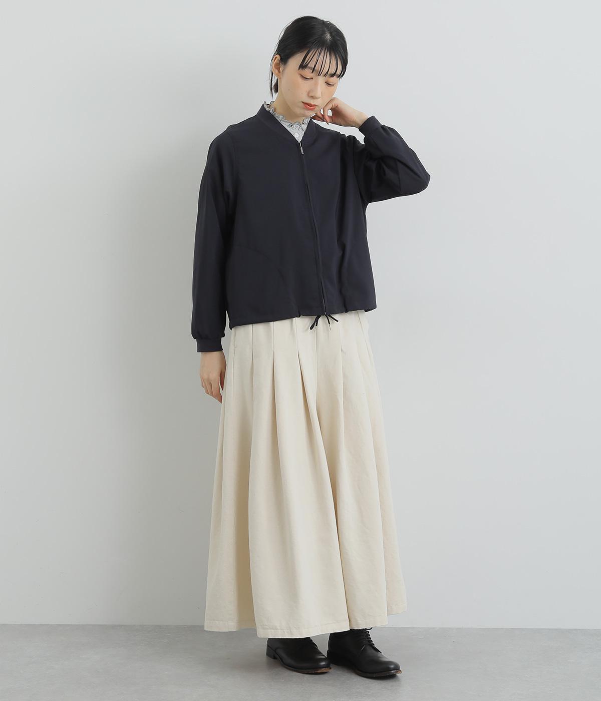 スポーティなムードと落ち着きのある大人っぽさを兼ね備えたレフリージャケット。後ろネック下にタックを施し、裾にはゴムを通してふんわりと丸みを持たせました。前裾のドロストコードを絞ればシルエットのアレンジが可能。テイストを選ばずさっと羽織れる便利な一着です。