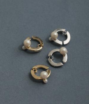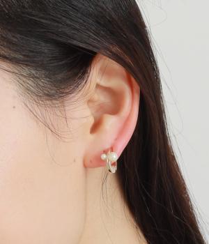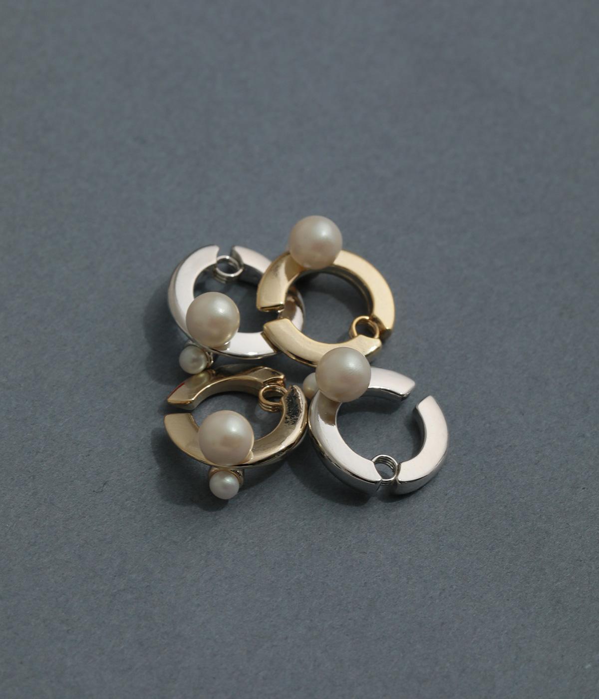 流れるようなラインと大小のパールが耳元を華やか&スタイリッシュに魅せてくれます。耳にやさしくフィットし、しっかり留まって落ちにくいクラッチイヤリングタイプで、特殊なバネ構造でイヤーカフのようにアレンジしても◎。