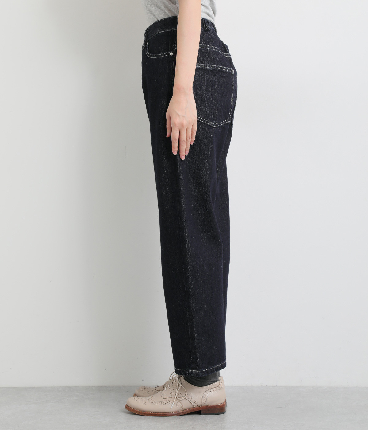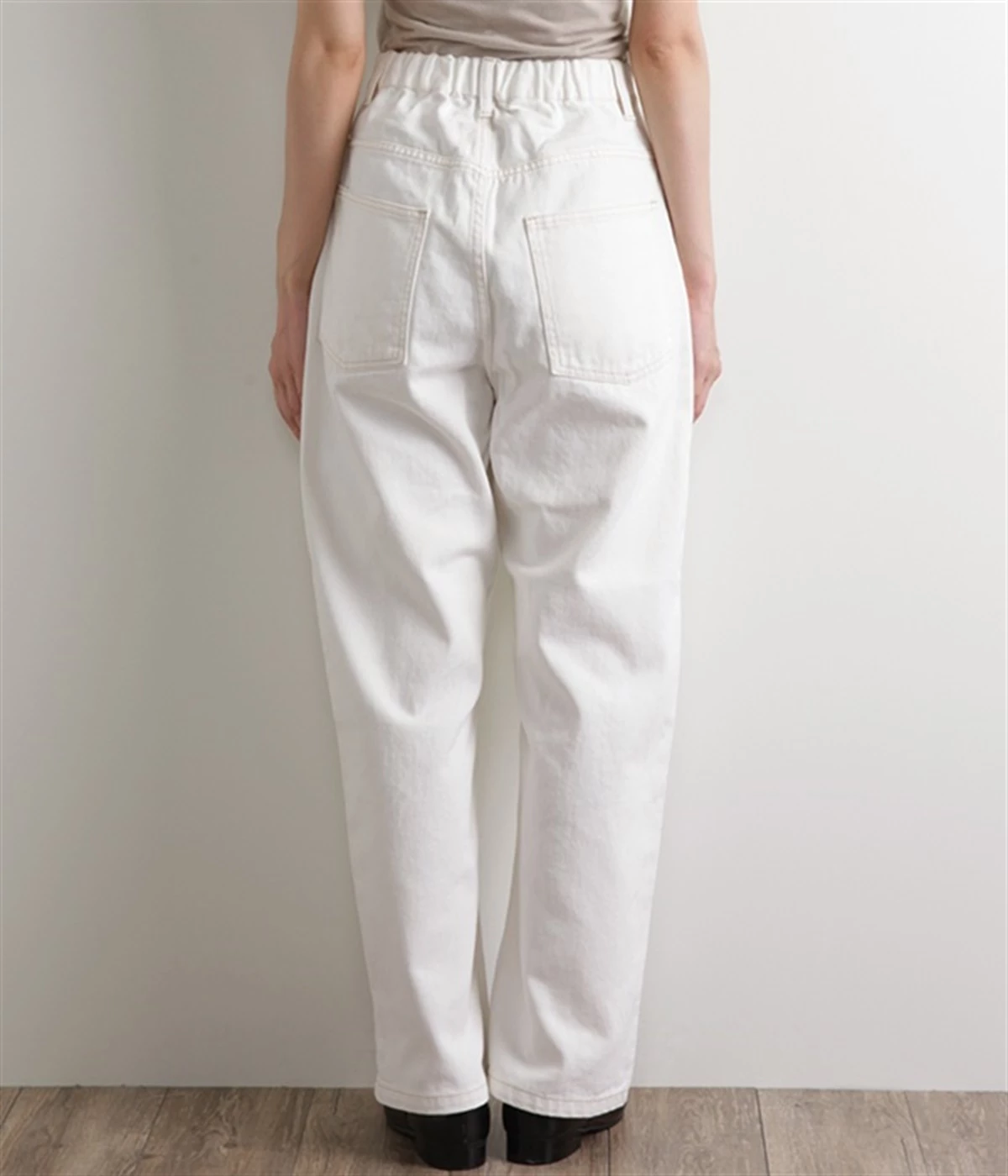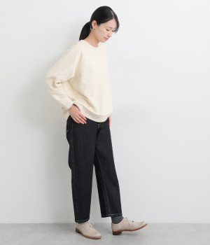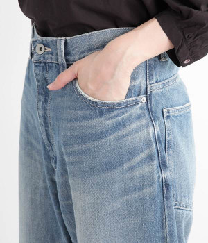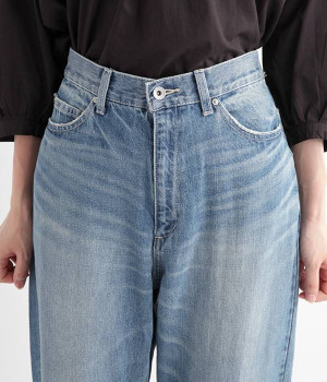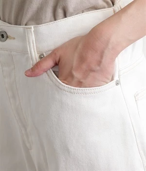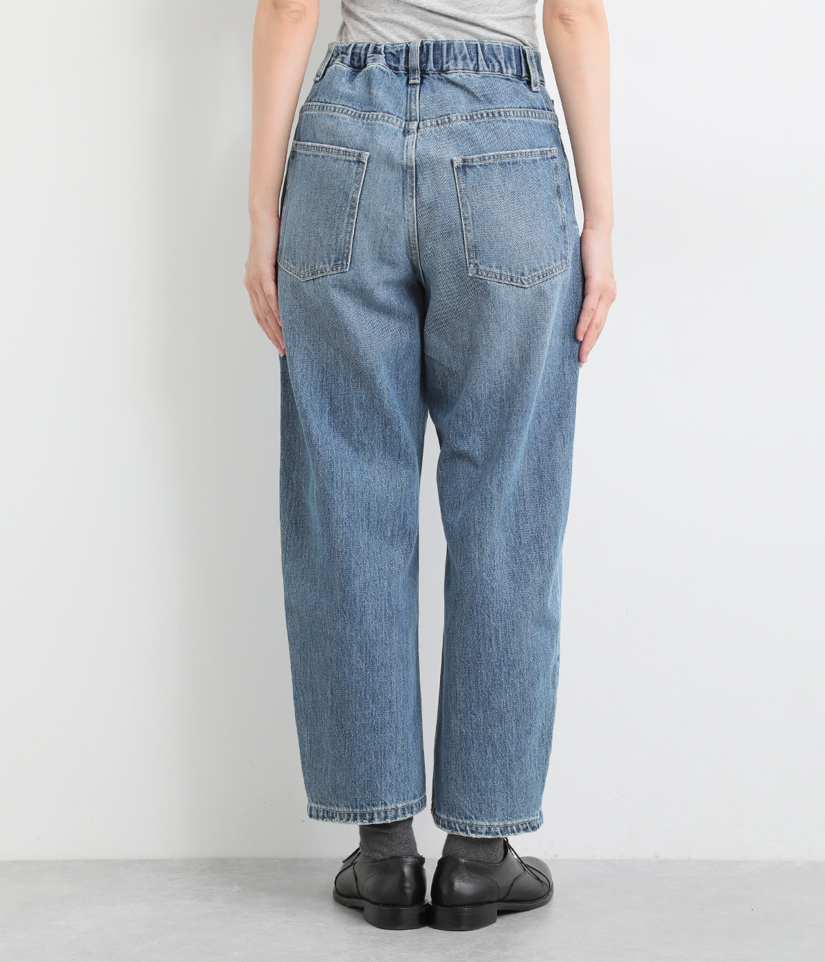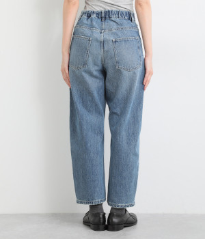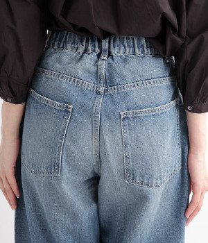 柔らかい着心地のデニムを使用した、オールシーズン着用していただけるパンツです。腰回りはゆったりとリラックス感のある着心地で、裾を軽くロールアップして穿くのもおすすめです。ウエストの後ろのみゴム仕様。両サイド、バックにポケット付き。