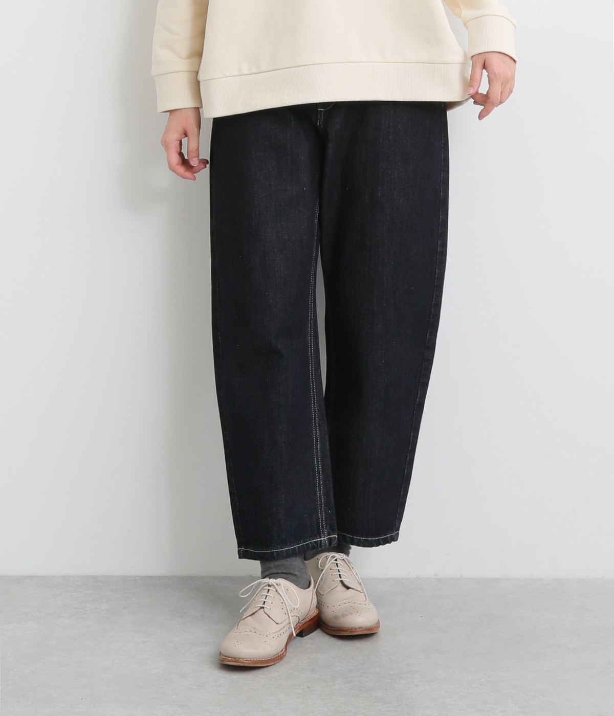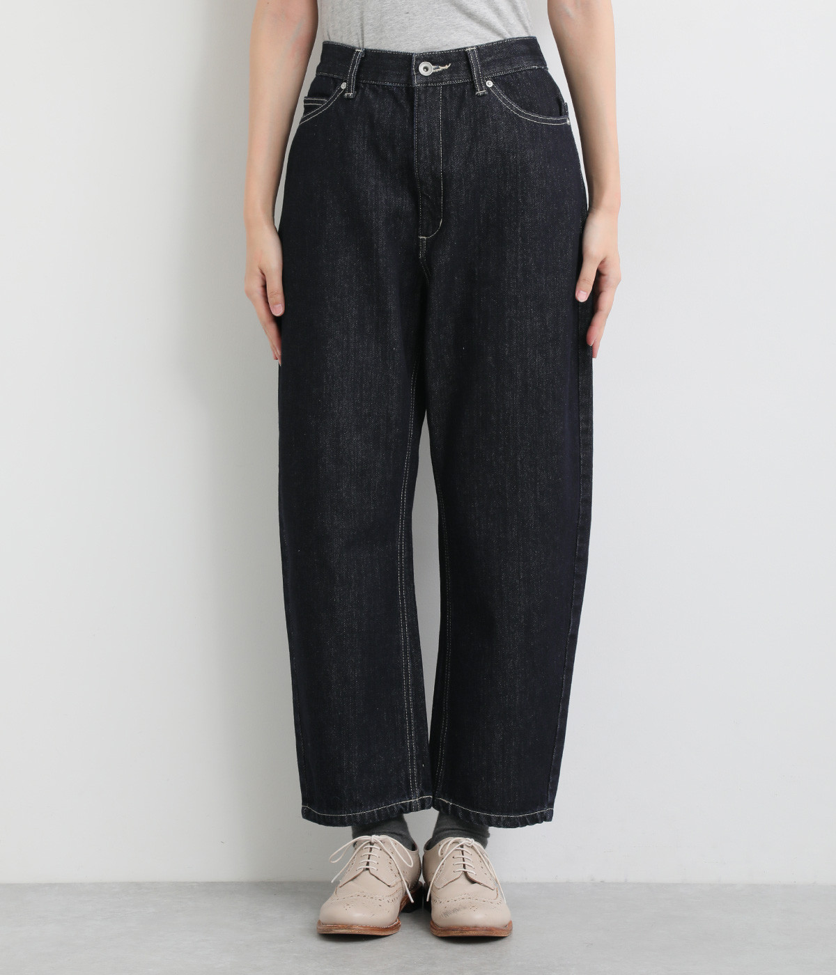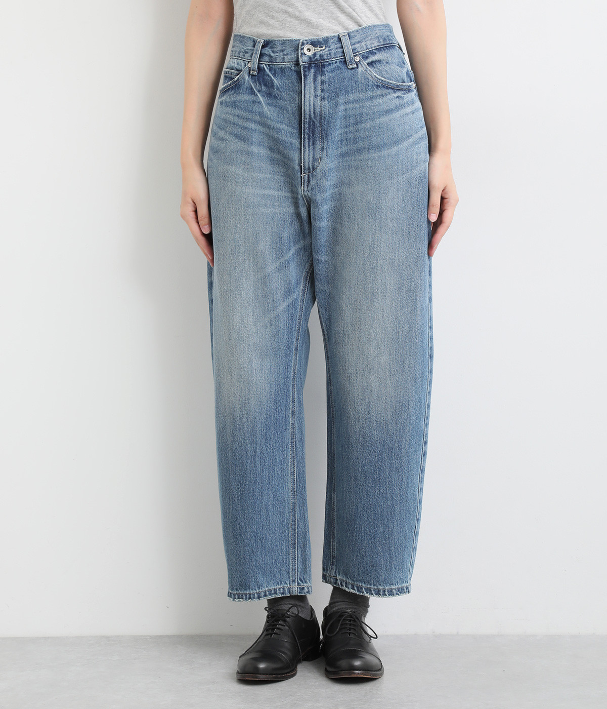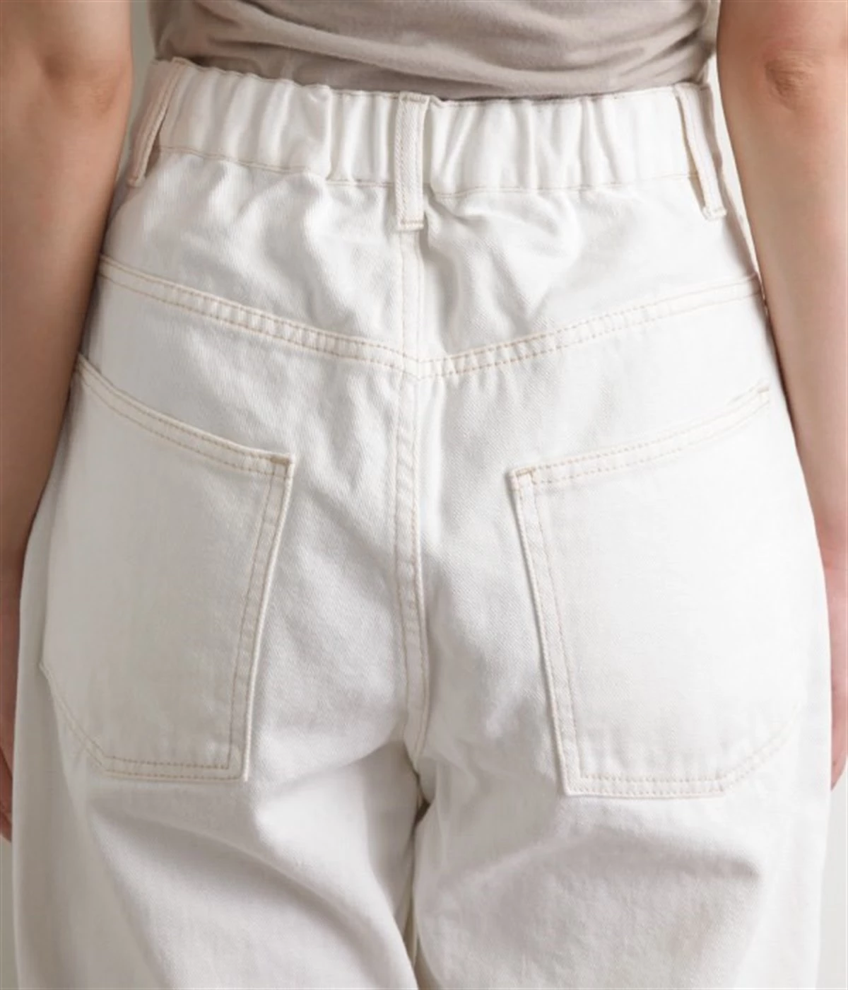 柔らかい着心地のデニムを使用した、オールシーズン着用していただけるパンツです。腰回りはゆったりとリラックス感のある着心地で、裾を軽くロールアップして穿くのもおすすめです。ウエストの後ろのみゴム仕様。両サイド、バックにポケット付き。