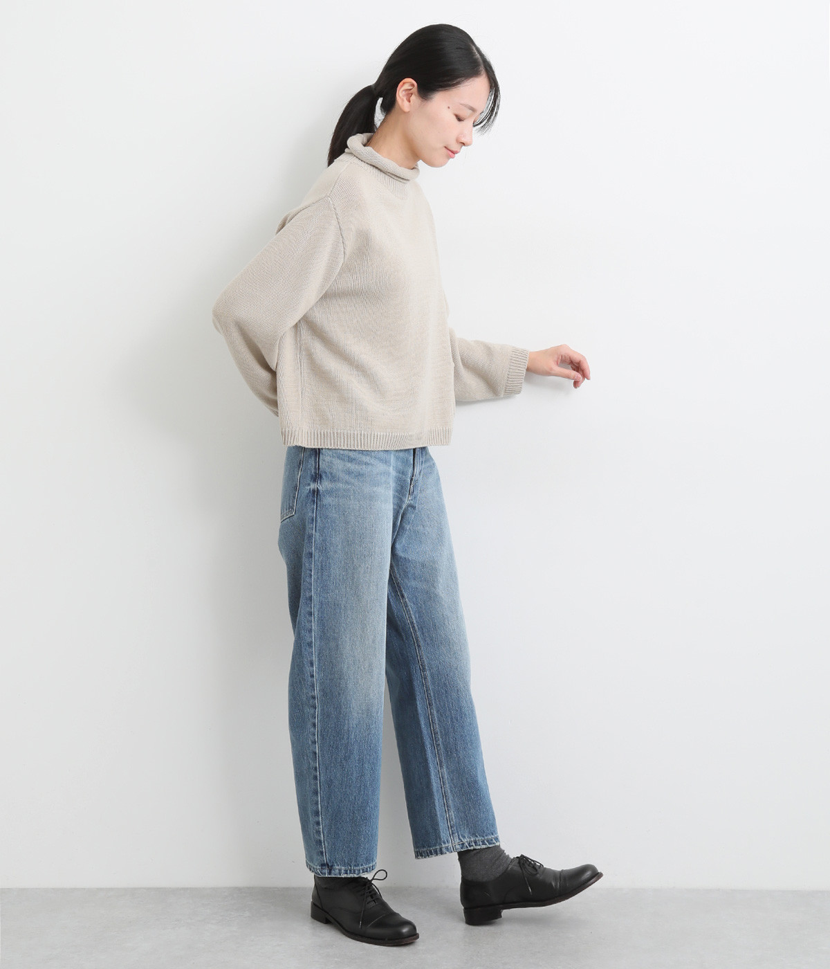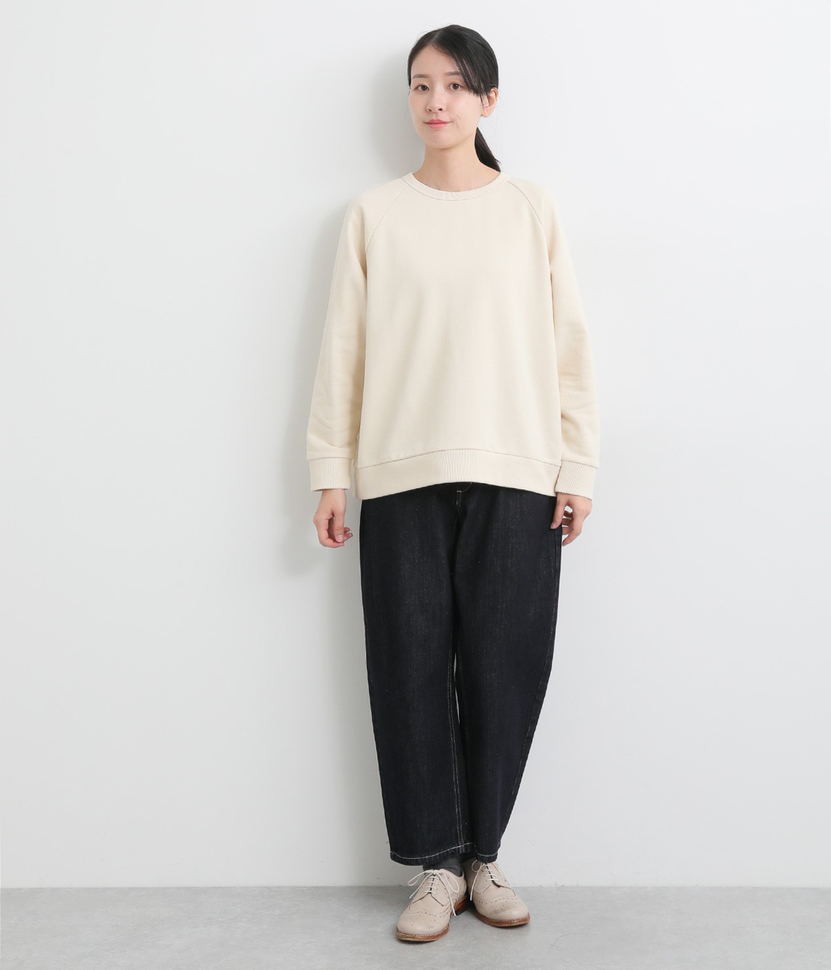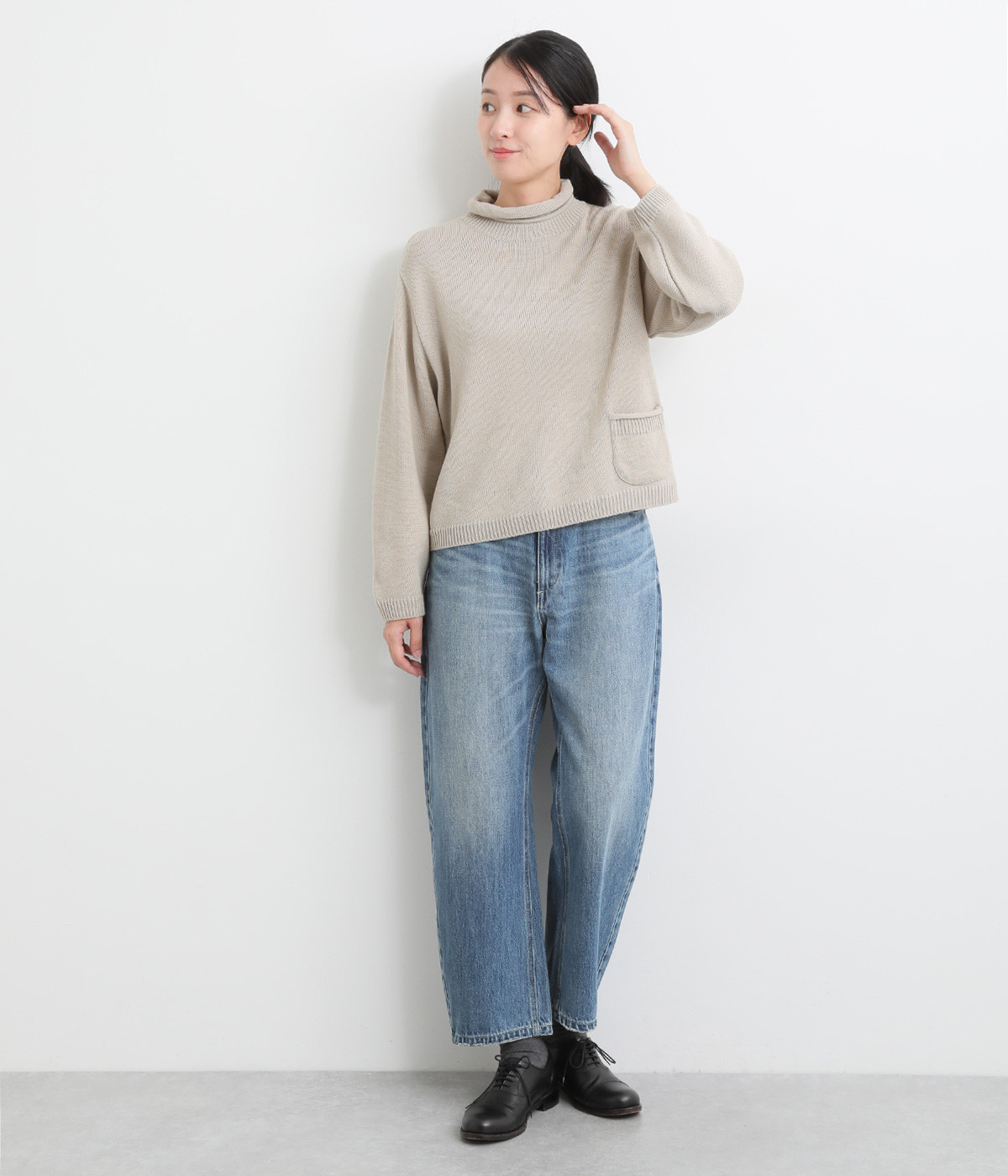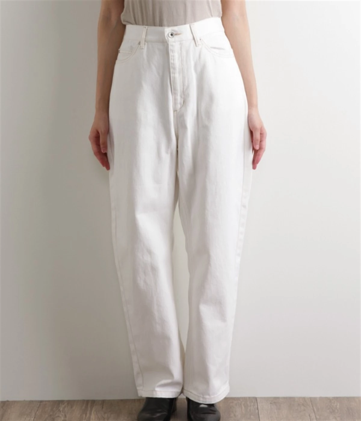 柔らかい着心地のデニムを使用した、オールシーズン着用していただけるパンツです。腰回りはゆったりとリラックス感のある着心地で、裾を軽くロールアップして穿くのもおすすめです。ウエストの後ろのみゴム仕様。両サイド、バックにポケット付き。