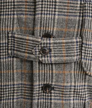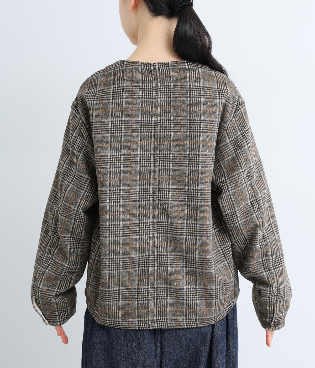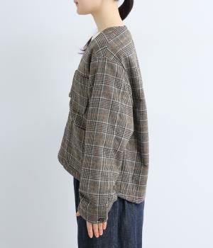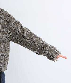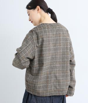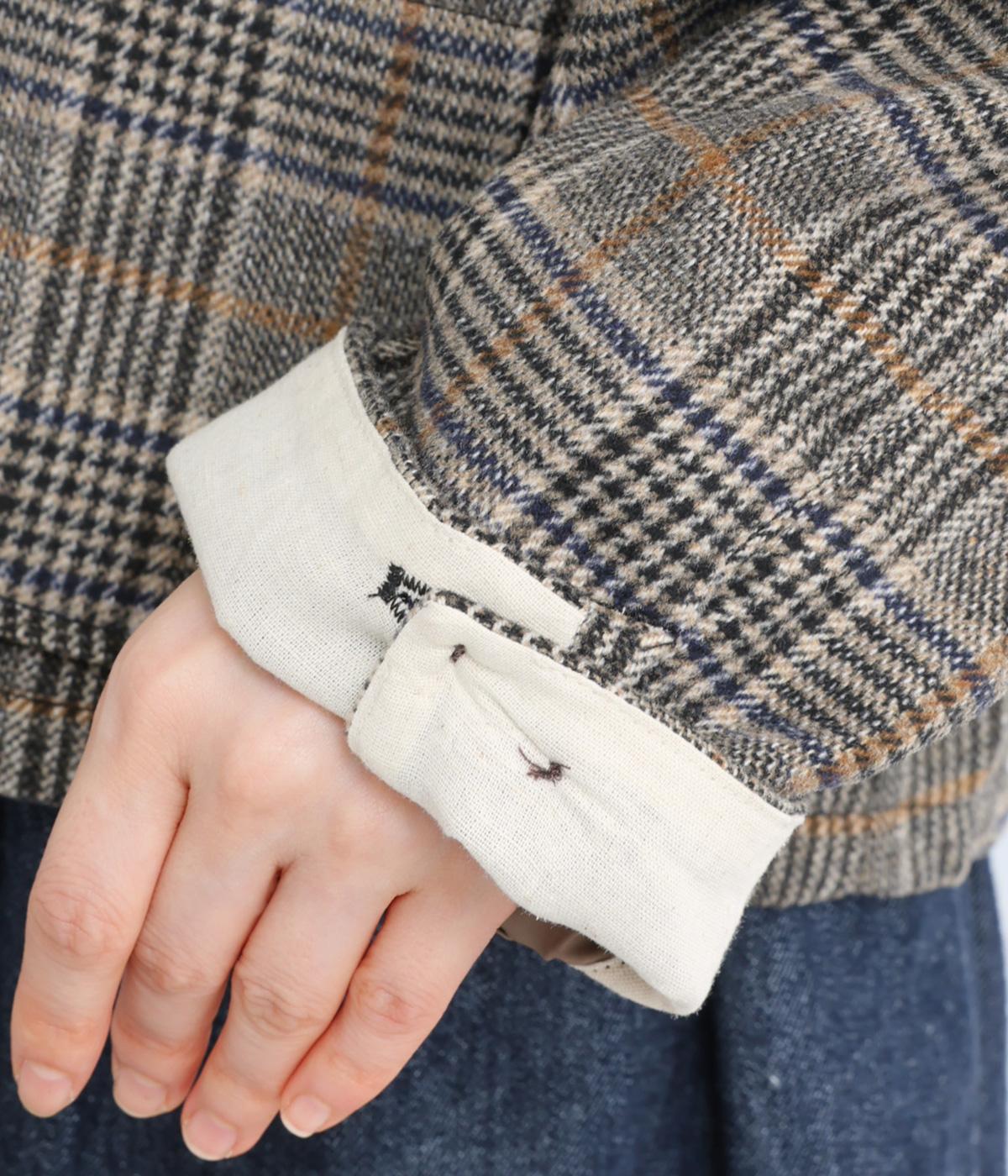 やわらかな風合いとあたたかみのある起毛感が特徴のチェック柄生地を使用しています。身頃と袖口裏には通気性のよい綿麻生地を、袖裏には滑りのよいポリエステル生地をつけました。