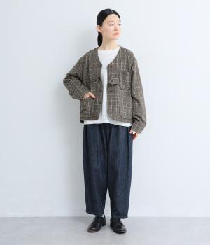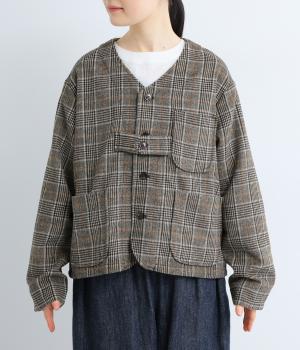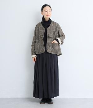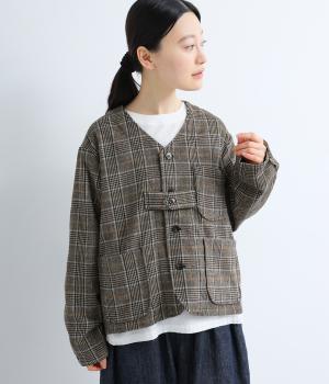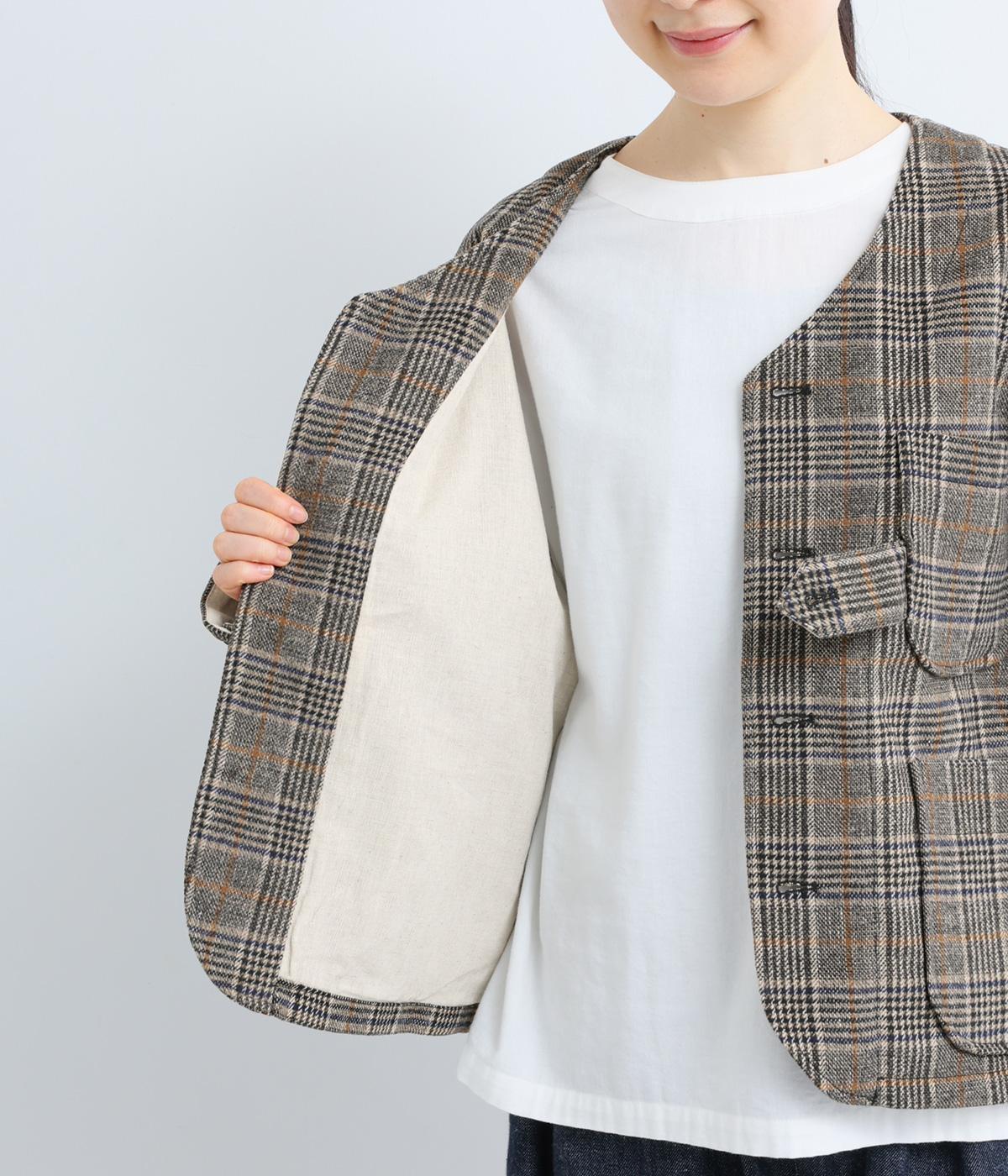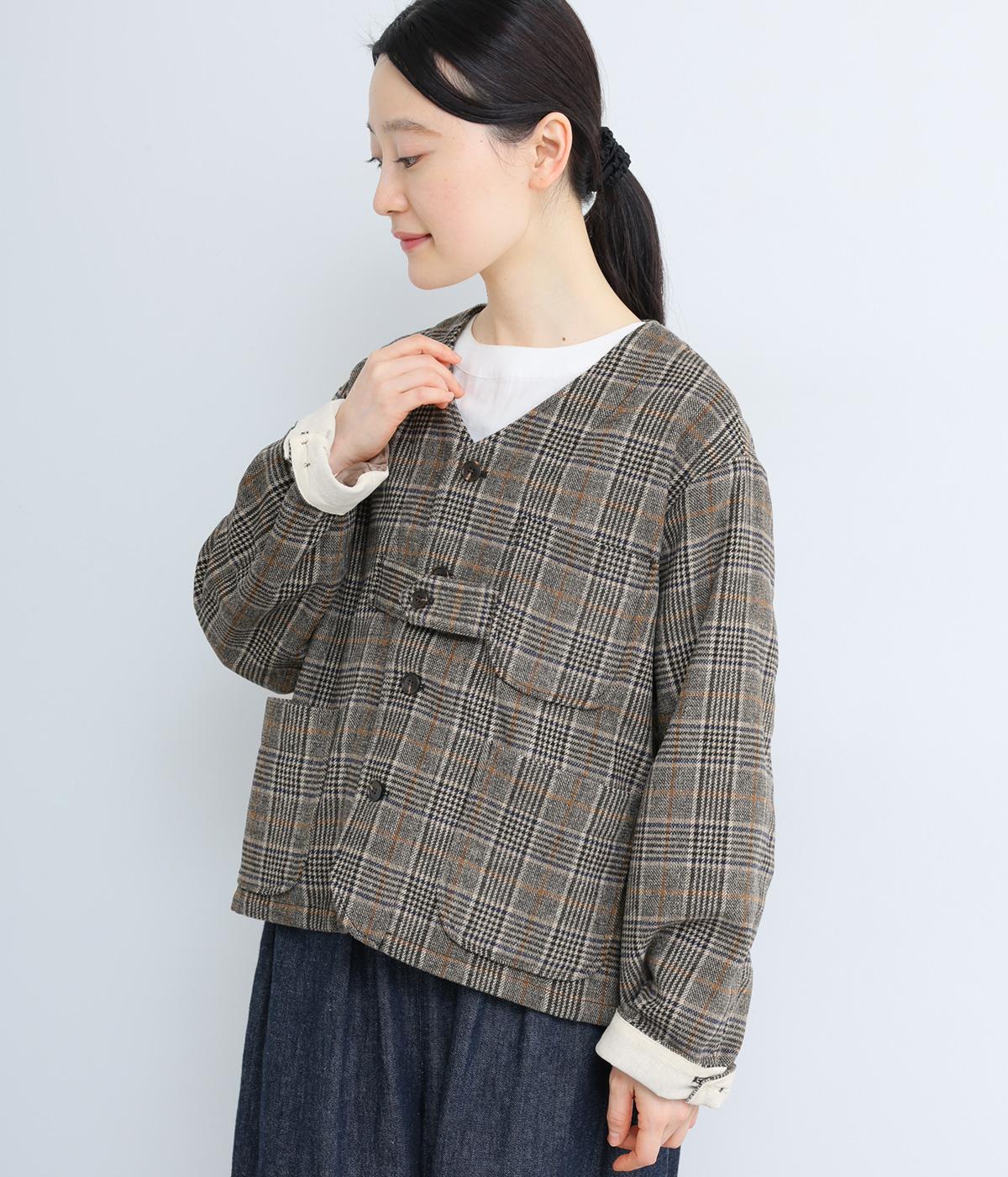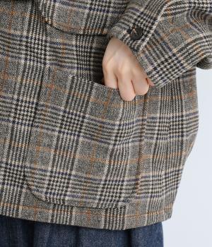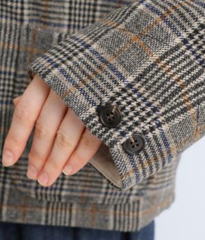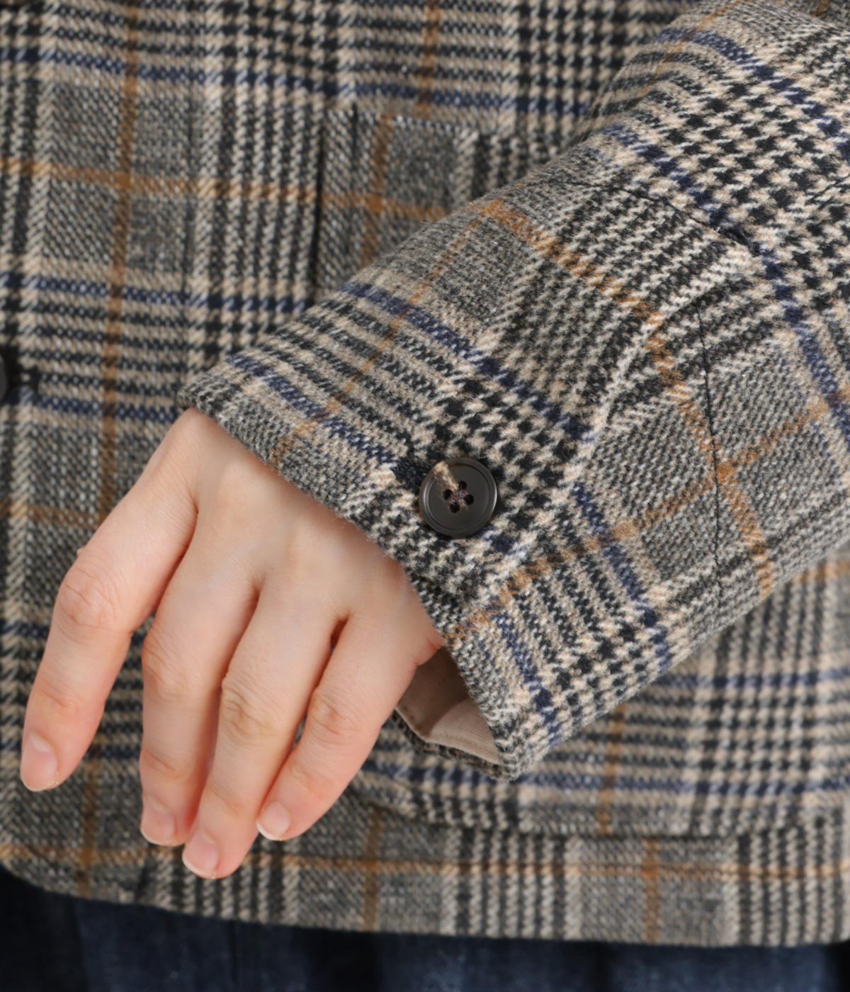 大きめポケットなど実用性を重視したディテールに、クラシカルなチェック柄を組み合わせて女性らしく仕上げたジャケットです。後ろ裾にダーツを入れて丸みを持たせたシルエットがポイント。裏に綿麻生地をつけた袖口は折り返しても素敵です。