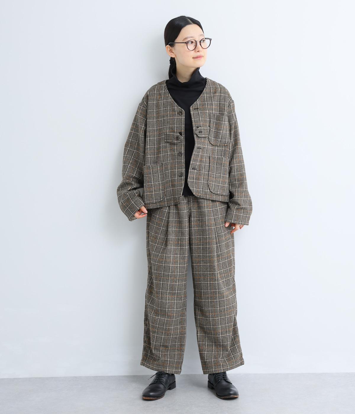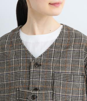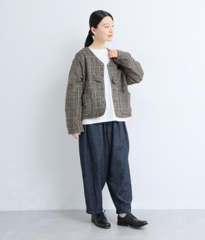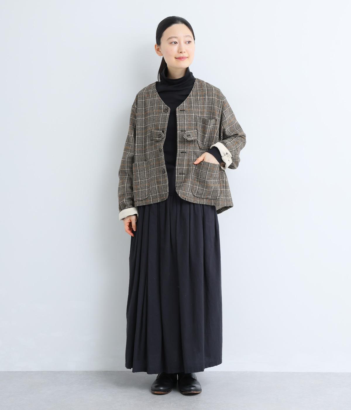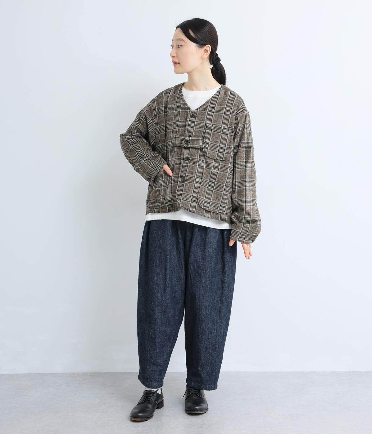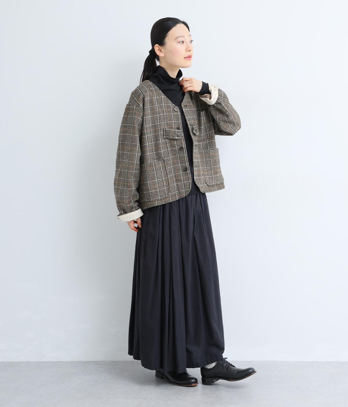 大きめポケットなど実用性を重視したディテールに、クラシカルなチェック柄を組み合わせて女性らしく仕上げたジャケットです。後ろ裾にダーツを入れて丸みを持たせたシルエットがポイント。裏に綿麻生地をつけた袖口は折り返しても素敵です。