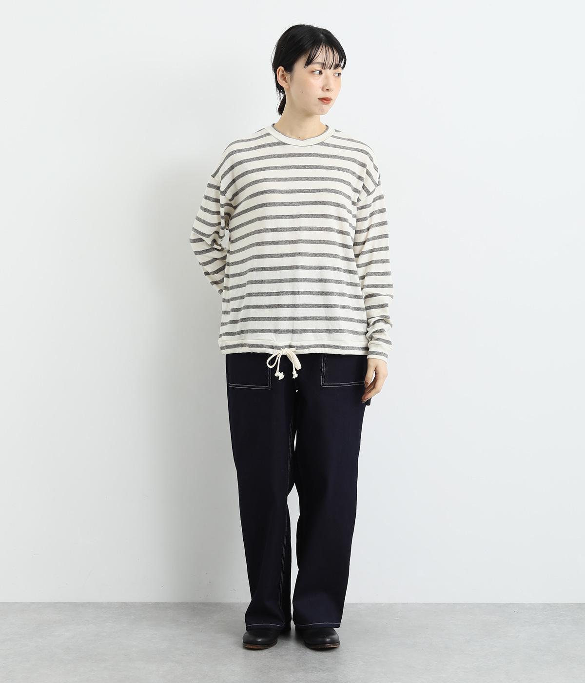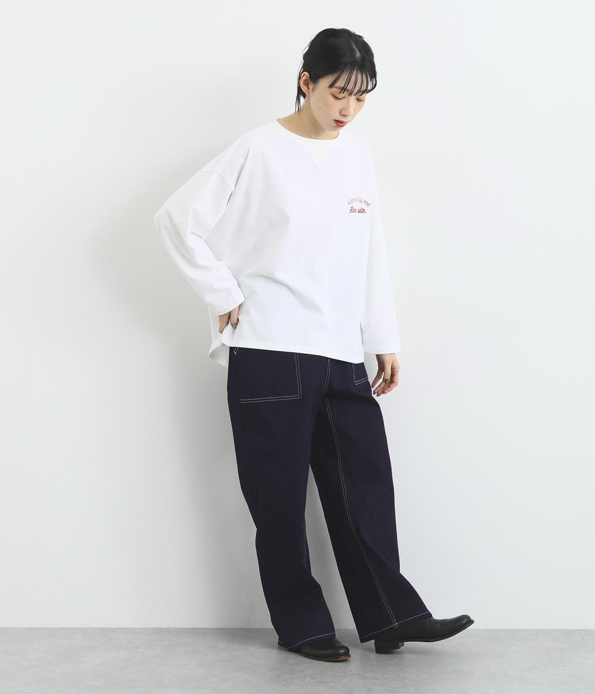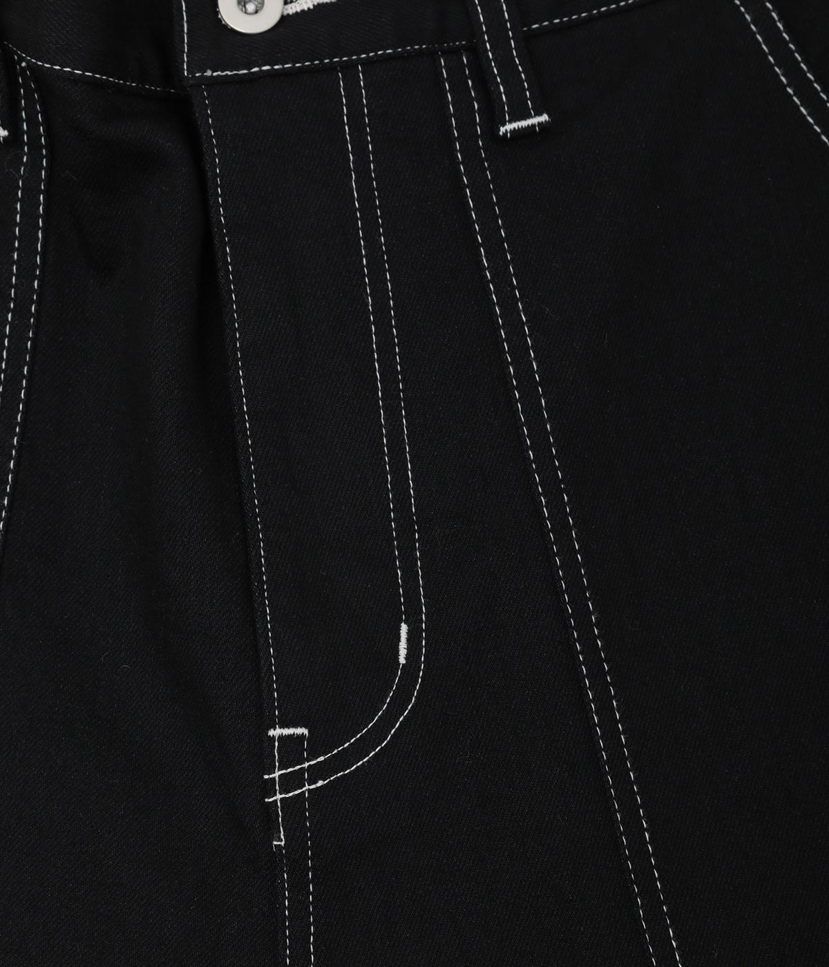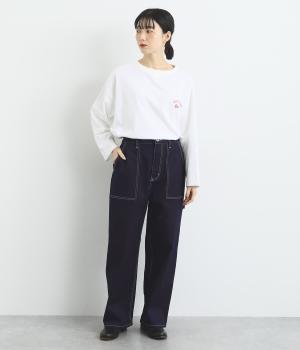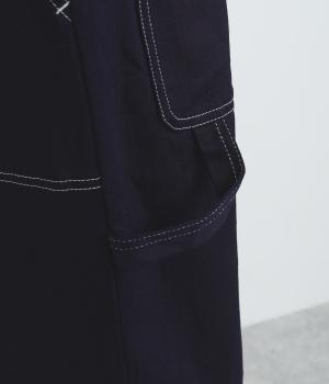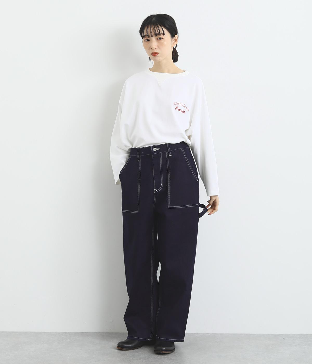 大きなポケットやハンマーループがワーク感を漂わせるペインターパンツ。適度にゆとりを持たせた、脚のラインをきれいに見せるストレートシルエットです。ホワイトのステッチがカジュアルなアクセントに。後ろウエストはゴム仕様、前はボタンとファスナー仕様ですっきりと仕上げました。