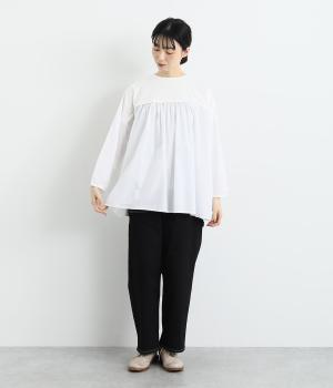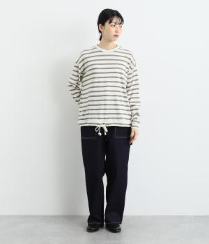 ポリウレタンをブレンドしてややストレッチ性を持たせたコットンツイル生地。カジュアルながらもラフに見えない、しっかりとした厚みとハリのある風合いが魅力です。