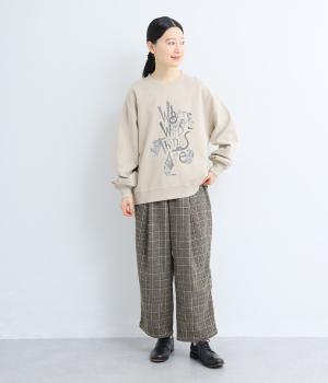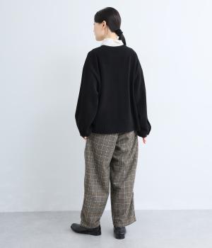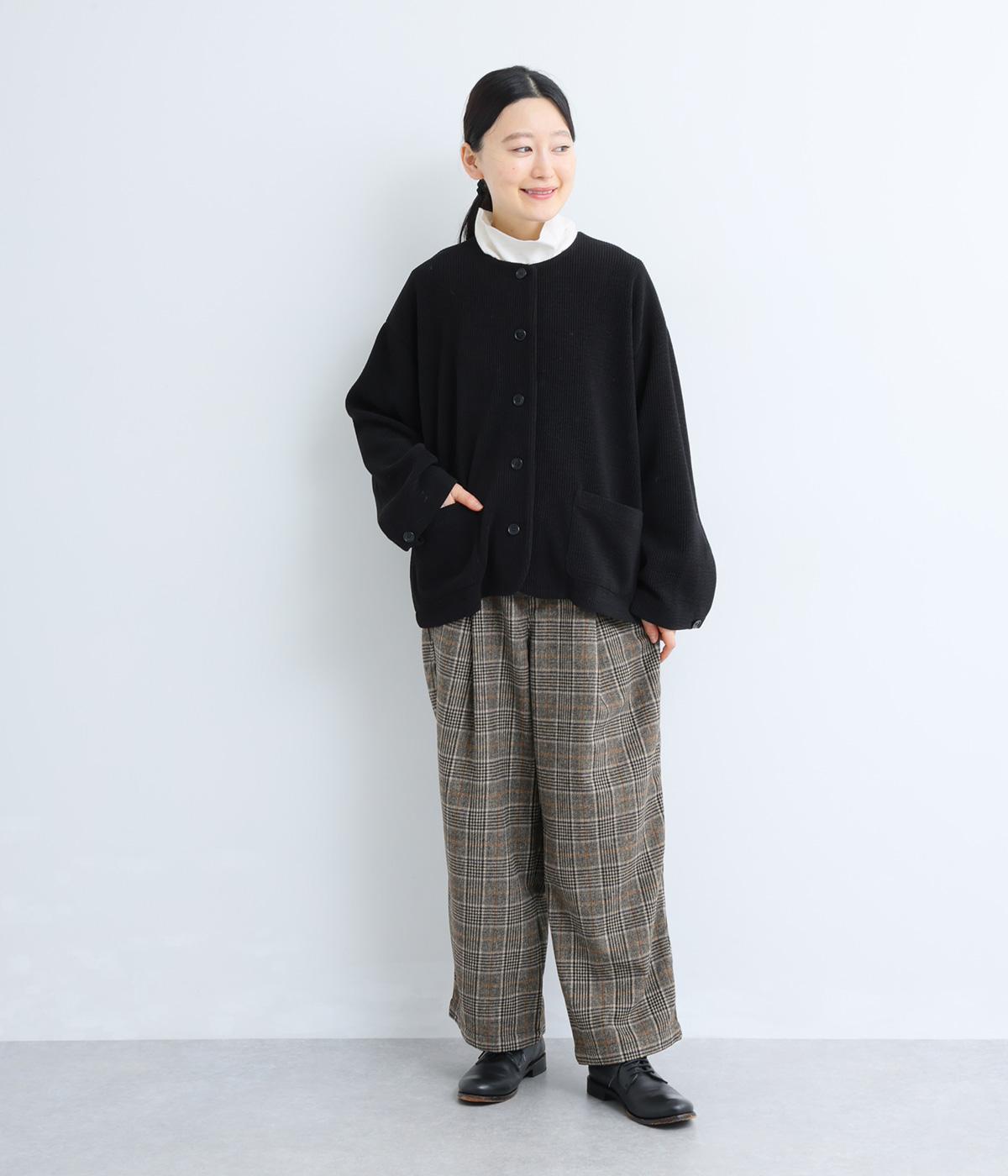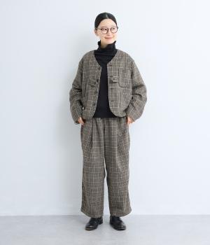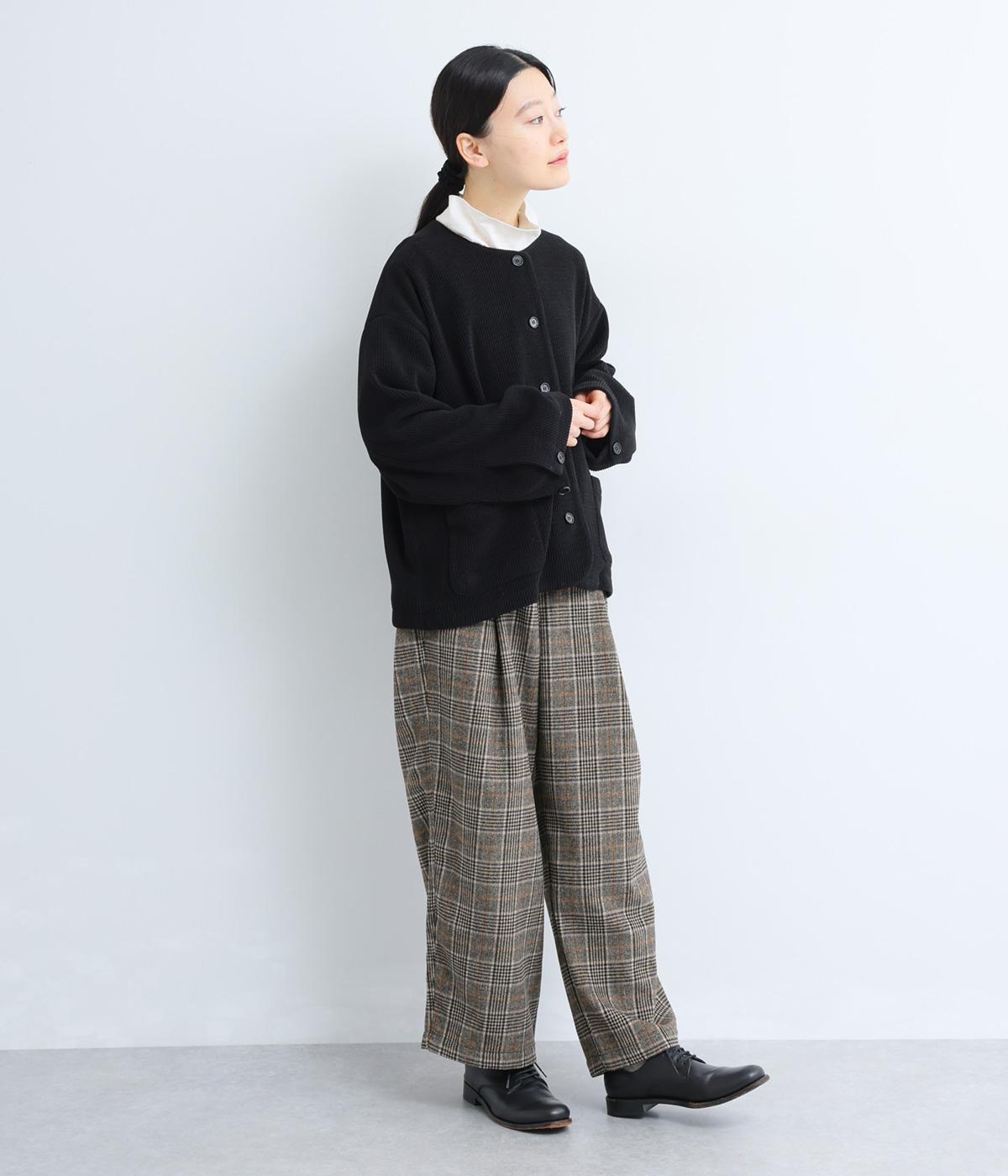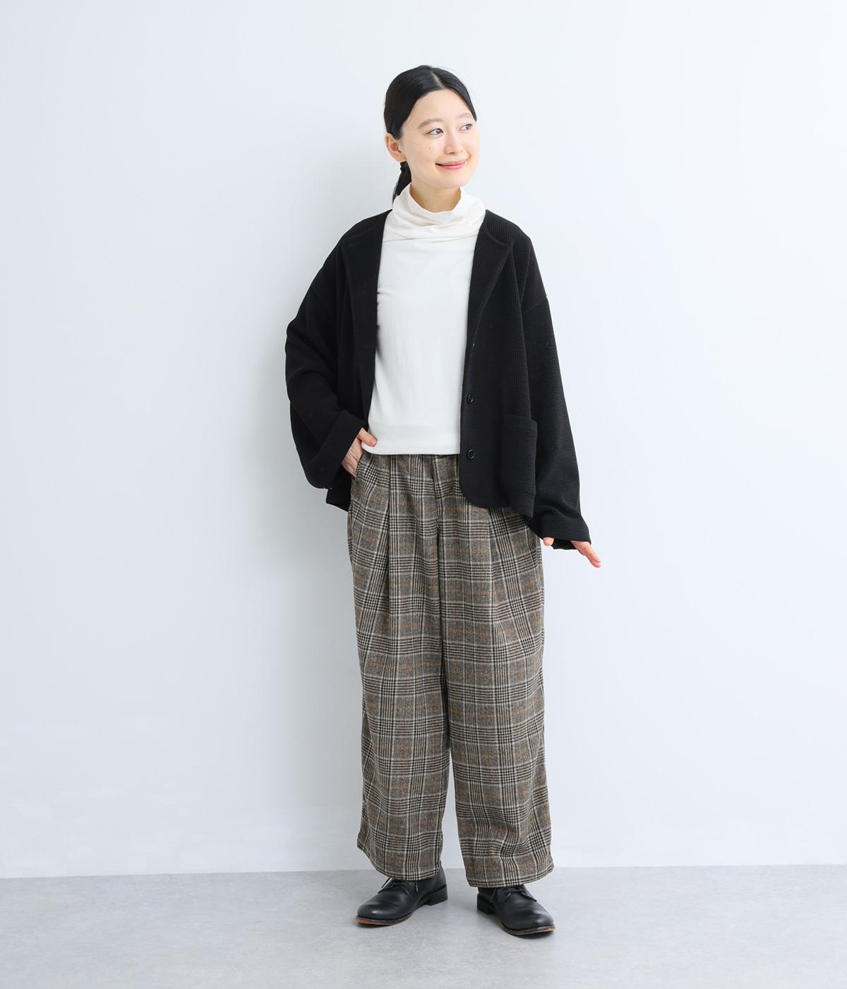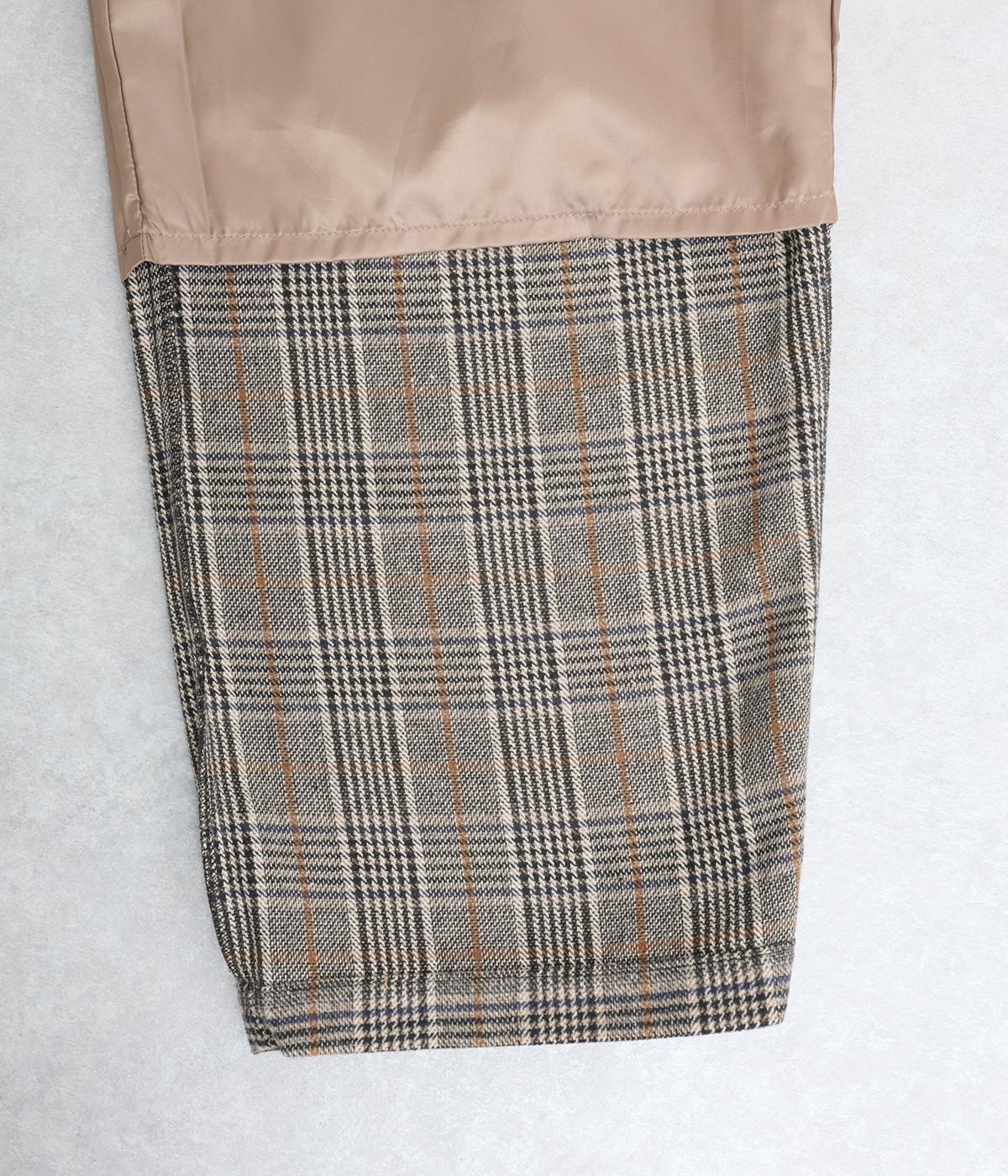 やわらかな風合いとあたたかみのある起毛感が特徴のチェック柄生地を使用しています。ひざ位置までの裏地をつけて、はき心地のよさと防寒性をアップさせました。