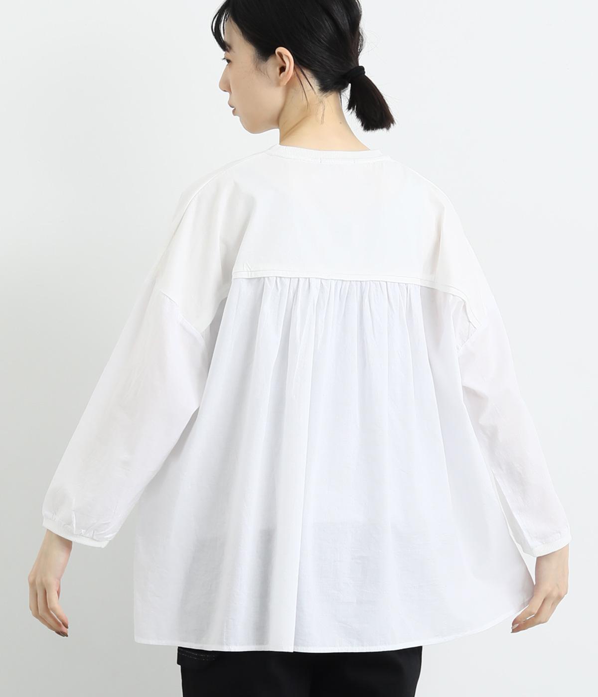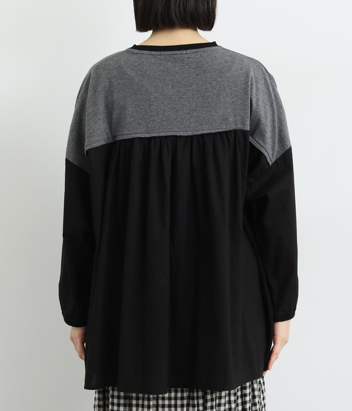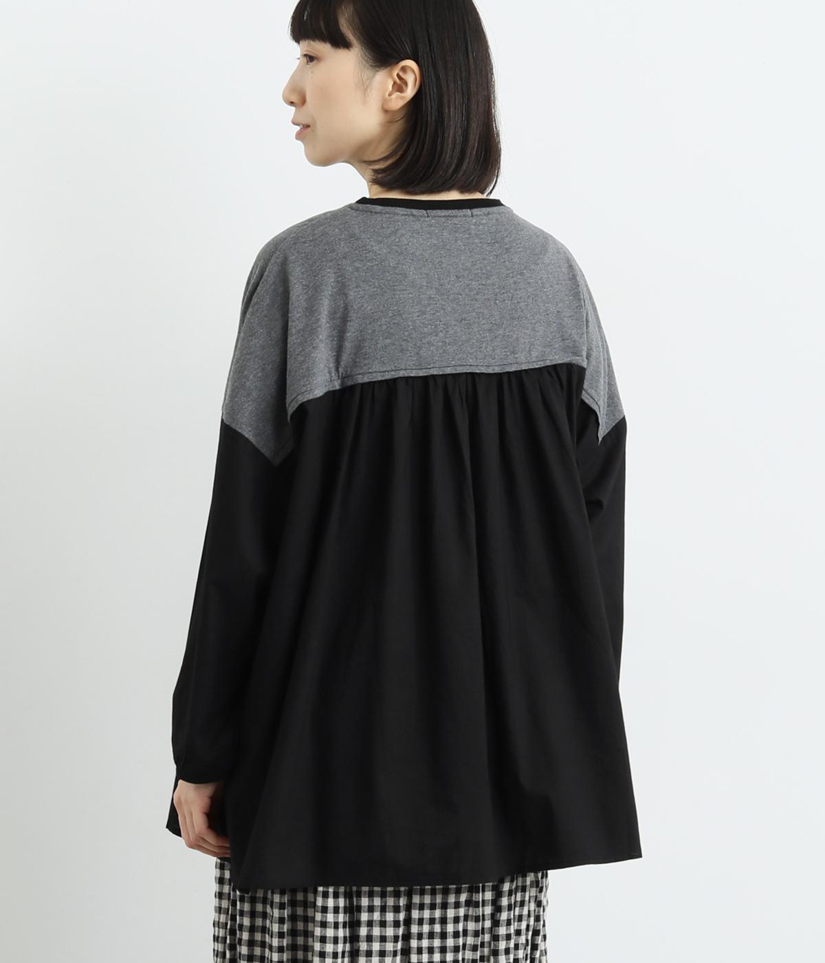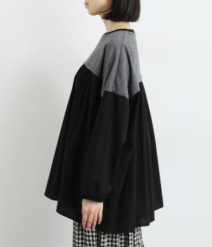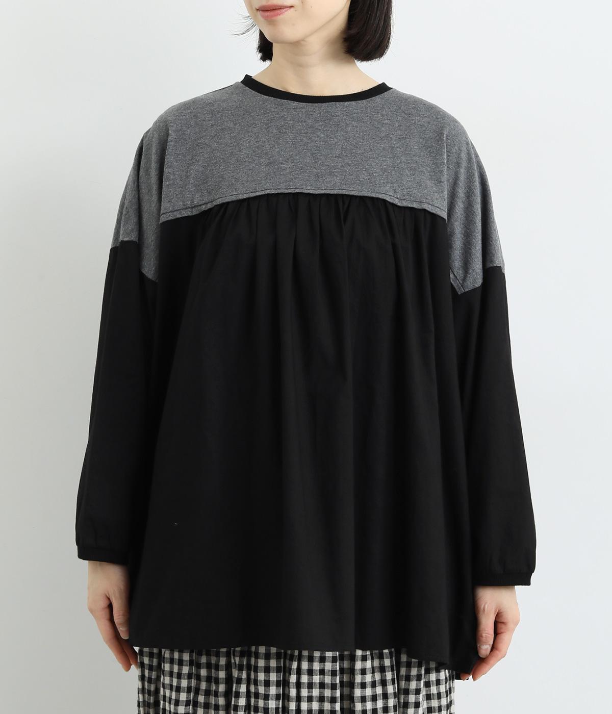 胸から下の異素材使いが目を引くプルオーバー。切り替えラインのギャザーがフェミニンなムードを添え、ふんわりとした軽やかな着こなしが叶います。高い位置の切り替えが視線をアップさせ、長めの着丈をすっきりと見せる効果も。カジュアルにも上品にも着こなせる活用度の高い一着です。