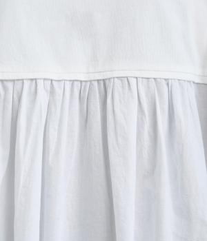 しっとりと柔らかく肌に心地よくなじむ薄手のコットン天竺生地。胸から下にはさらりとしたソフトな質感のローン生地を組み合わせ、表情豊かに仕上げました。